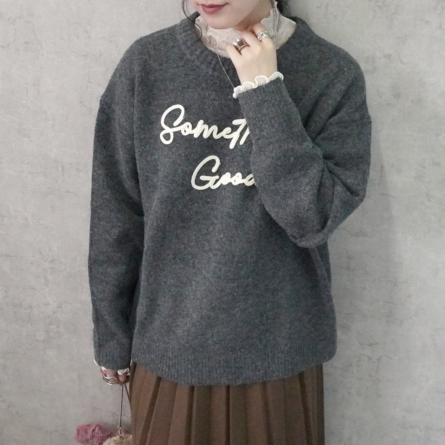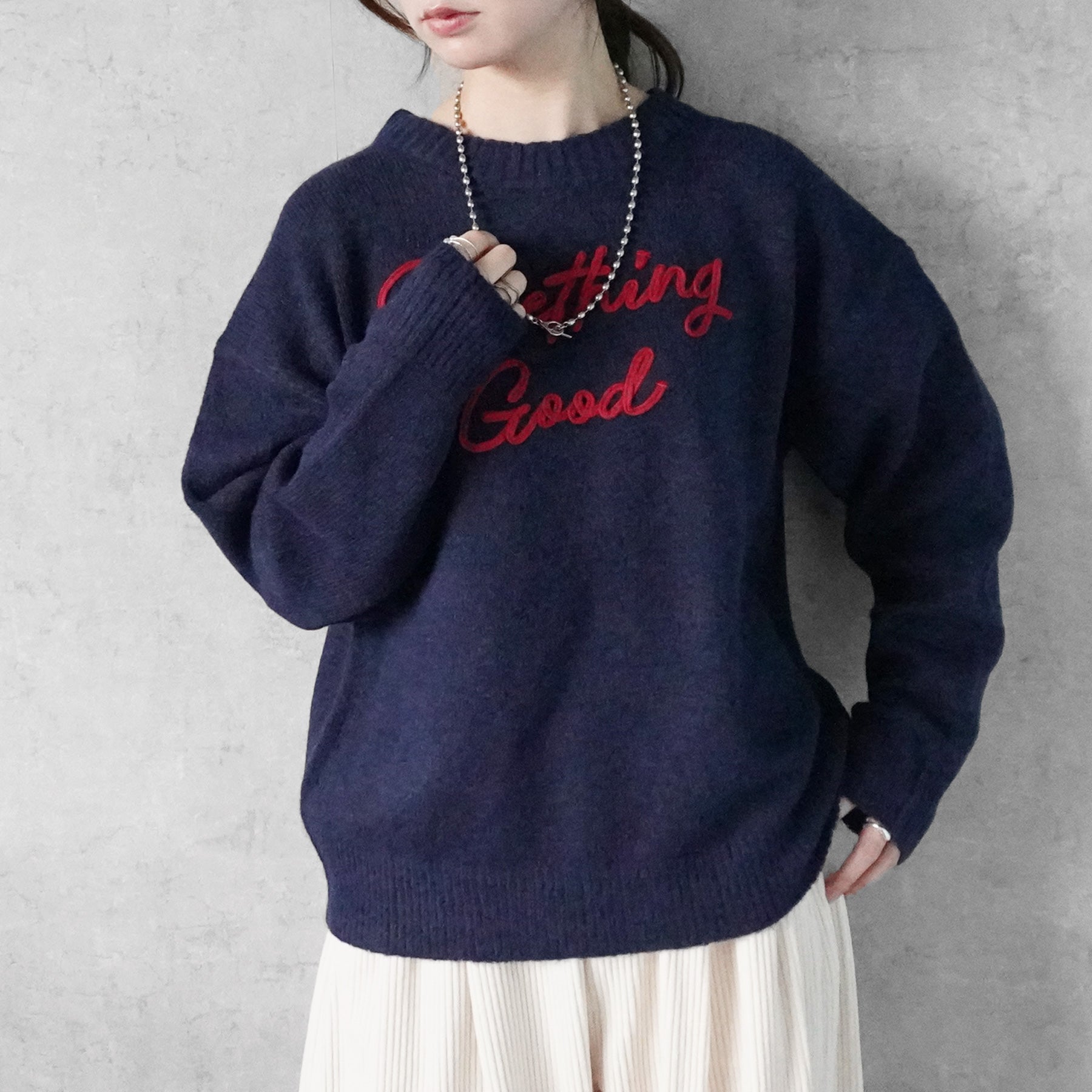 なめらかコード刺繡ロゴニットプルオーバー