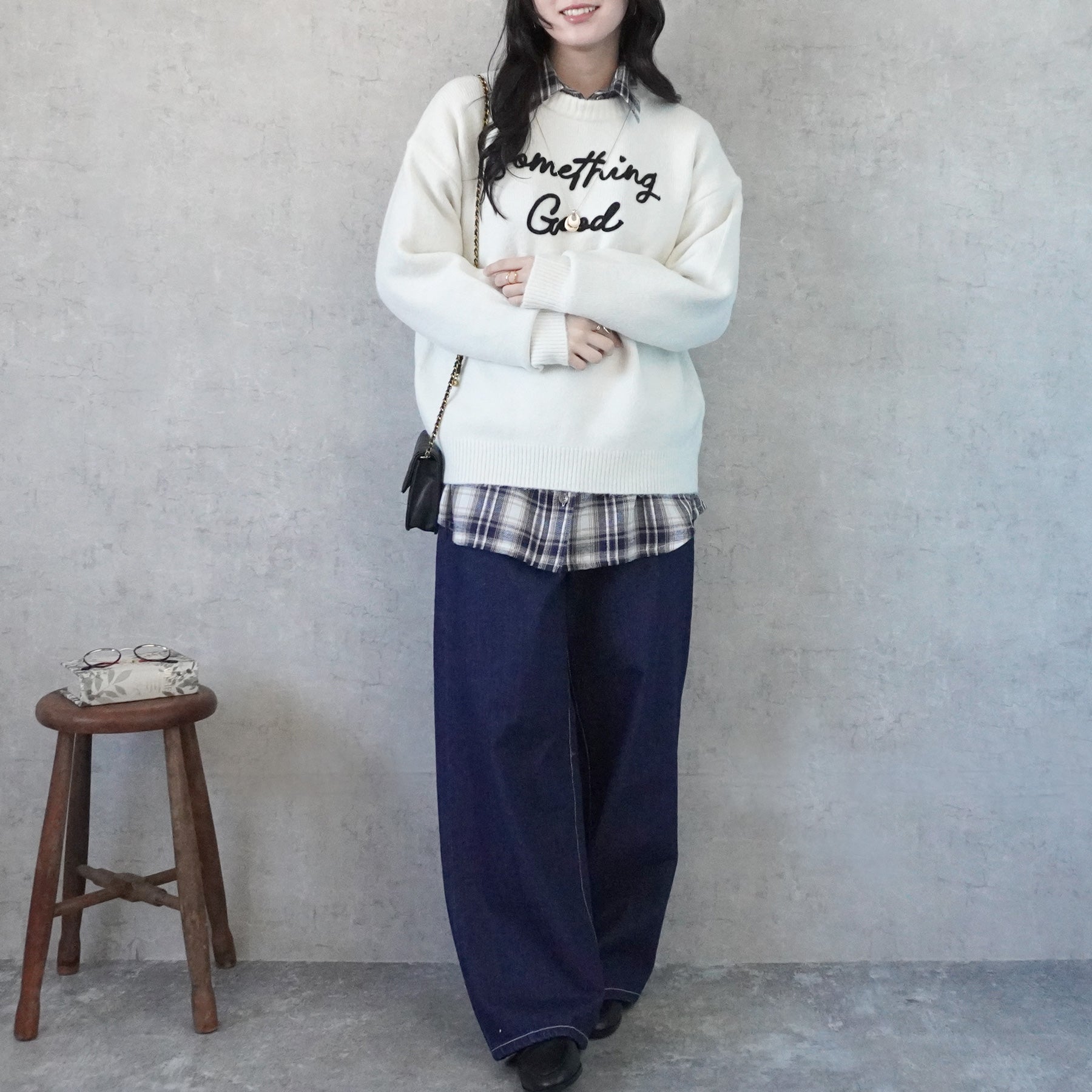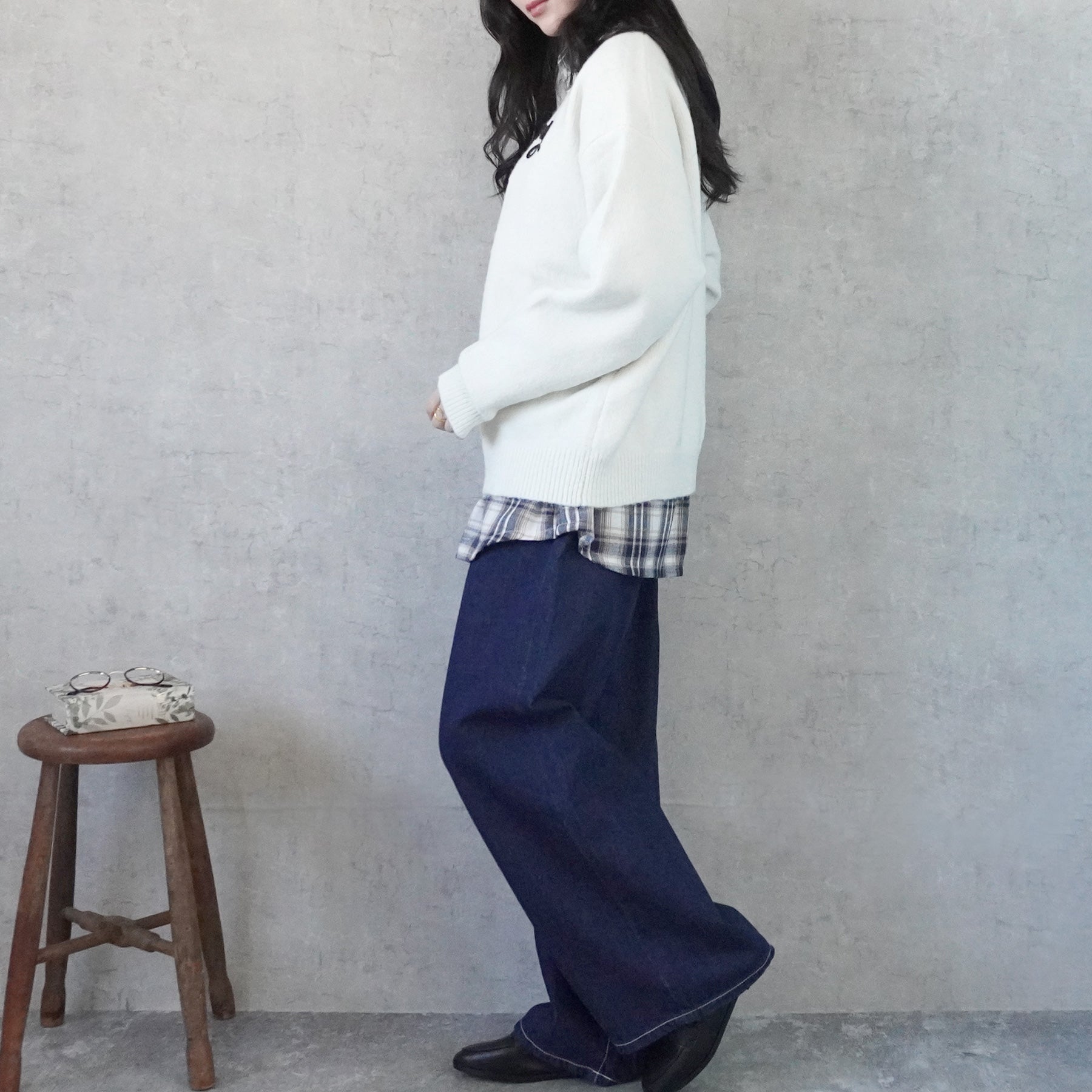 程よくゆとりのあるシルエット+ヒップにかかるくらいの長さがある丈感で身体のラインを拾いすぎずリラックスした着心地です。