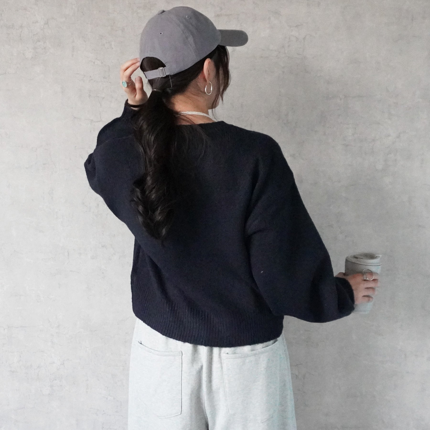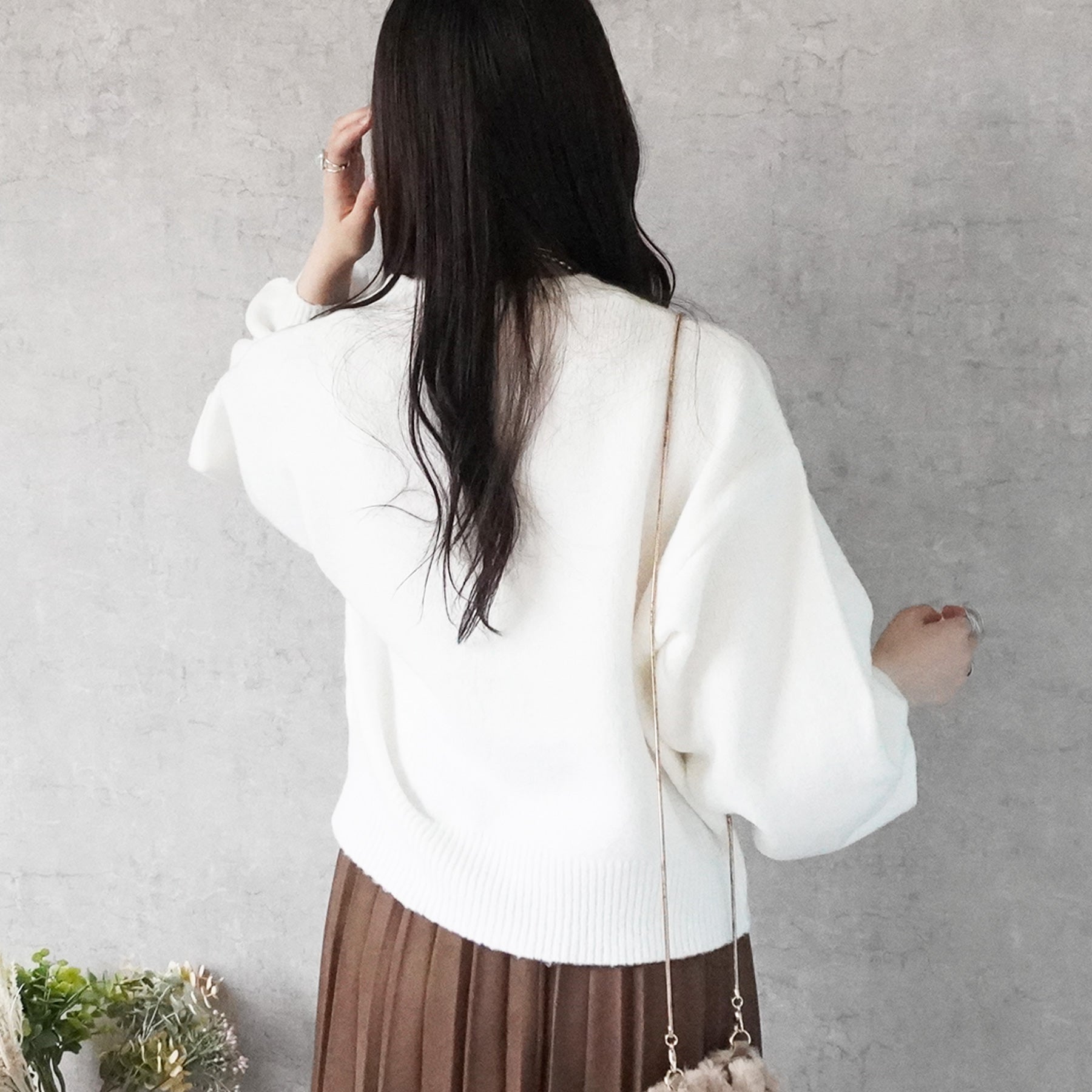 秋口から冬まで長く着用でき、1枚でも映える万能ニットです。
