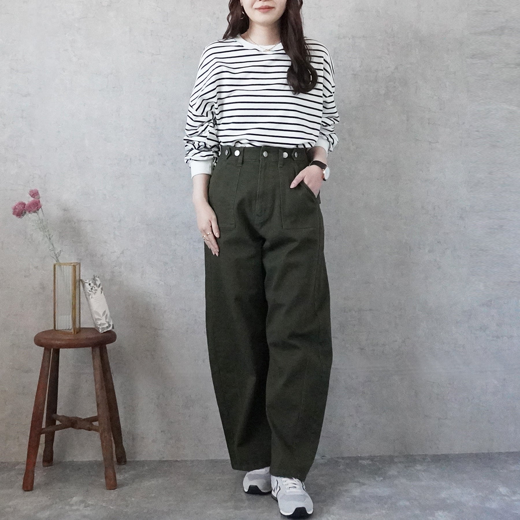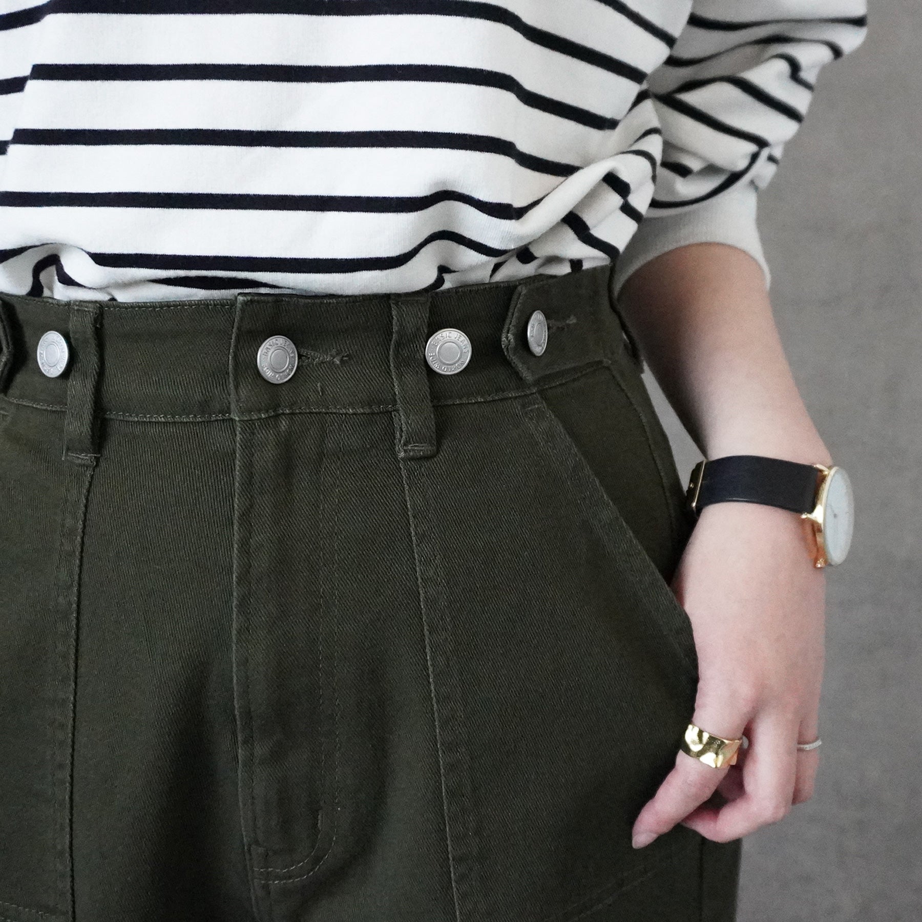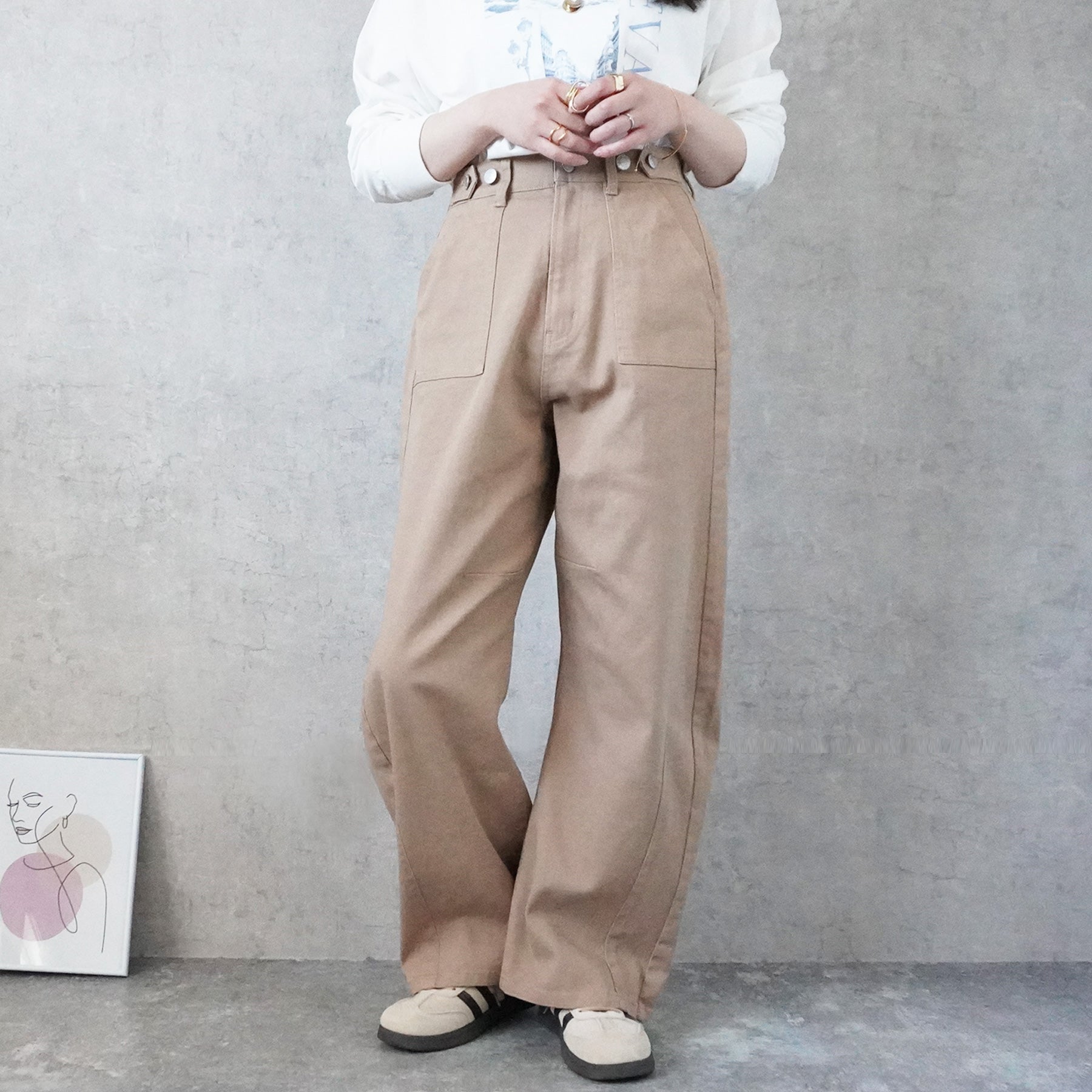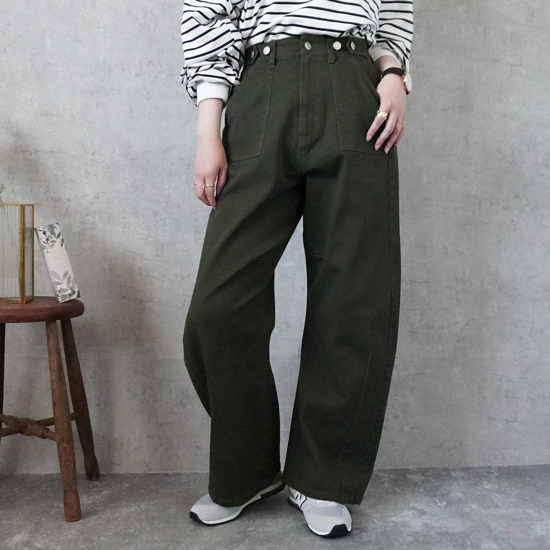 ■仕様:前開きファスナー(ボタン×1)、脇ポケット×2、後ろポケット×2、ウエスト総ゴム仕様、ウエスト調整ボタンあり