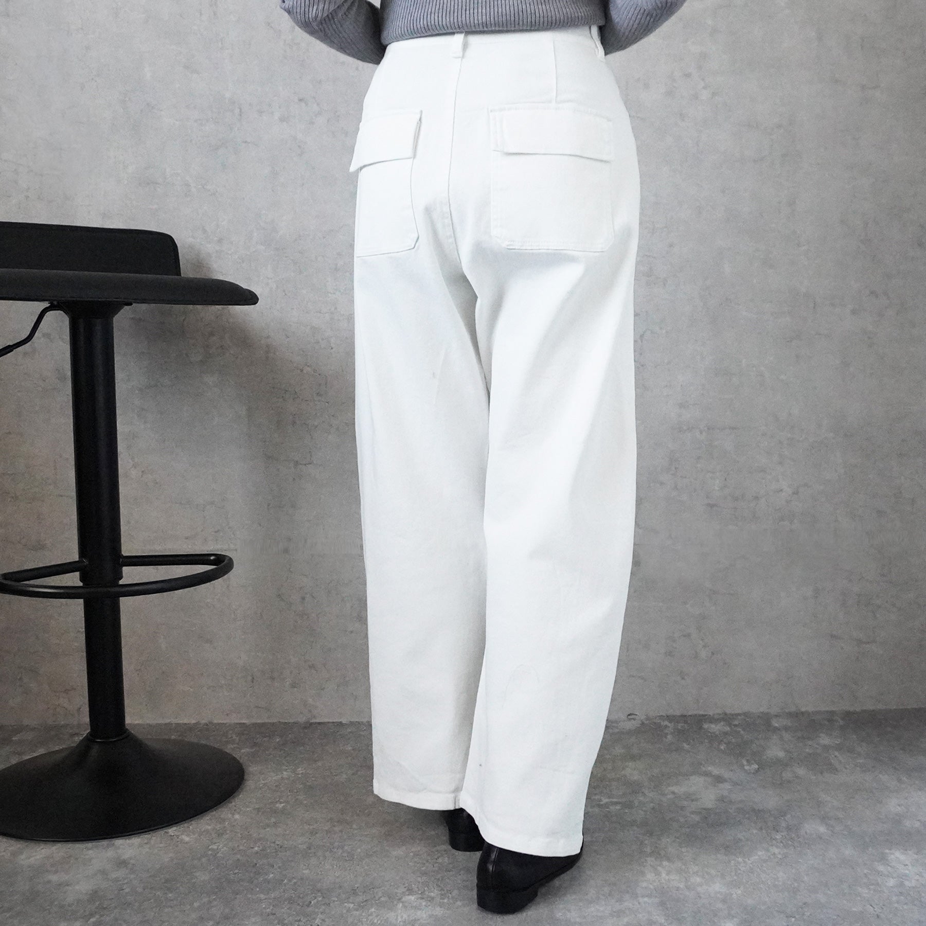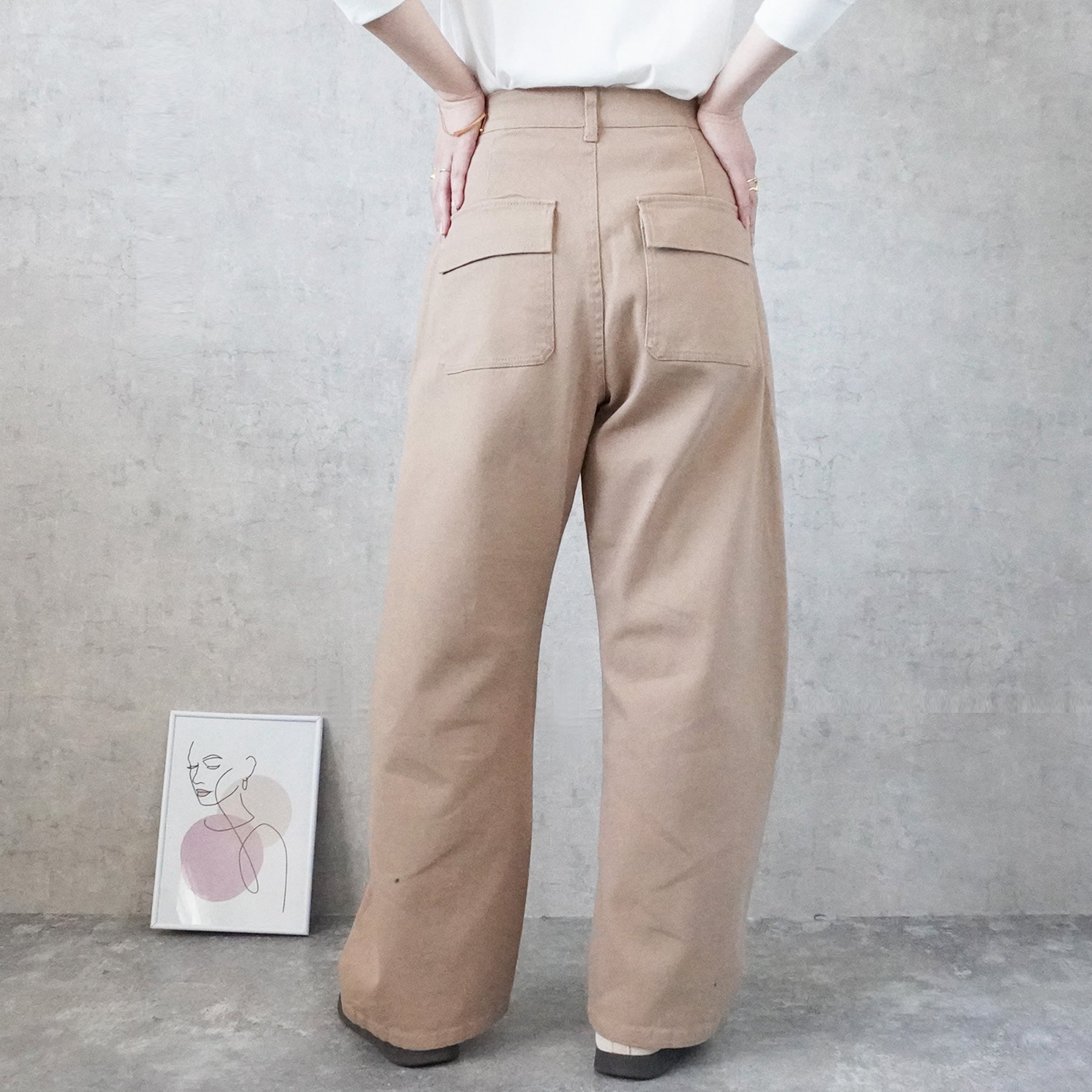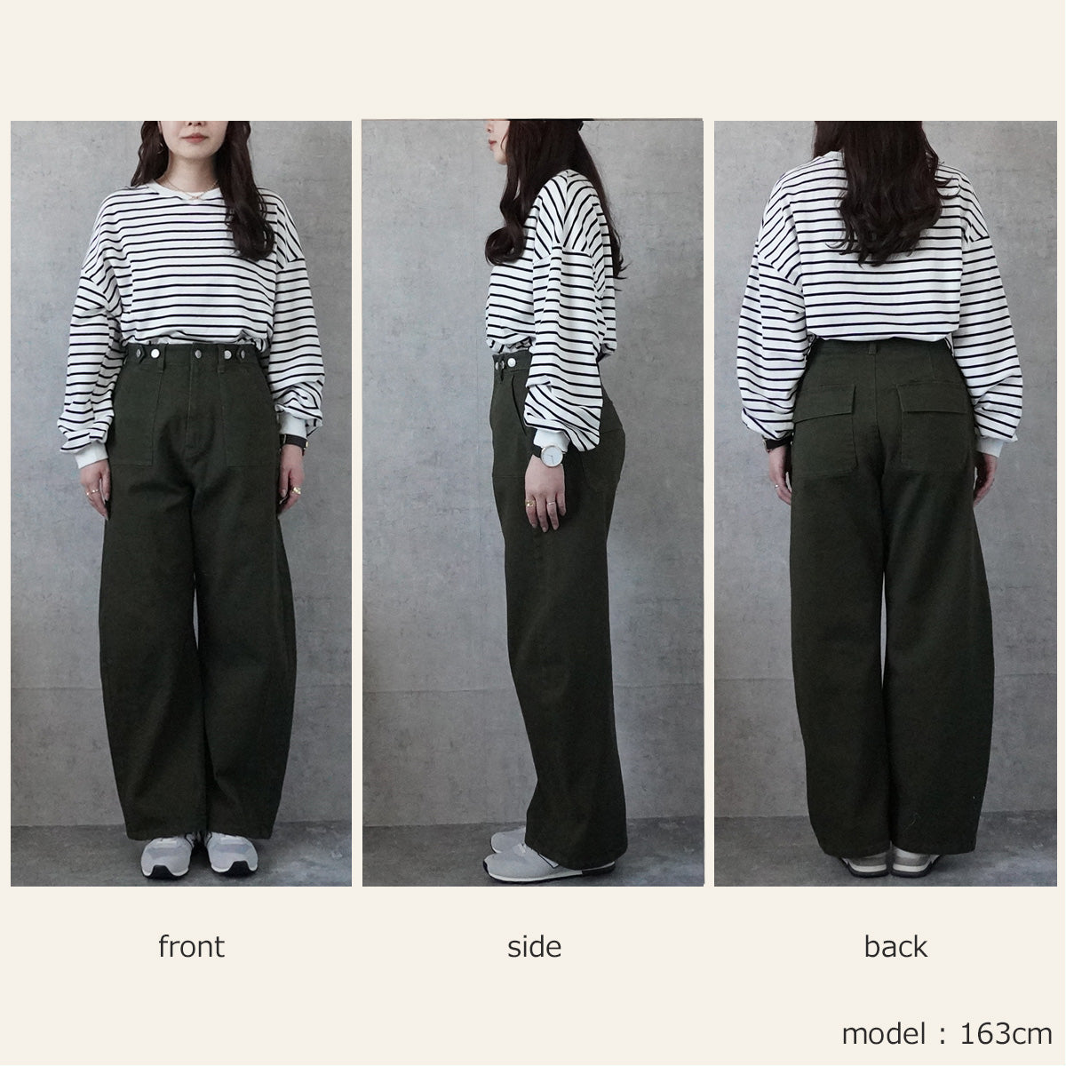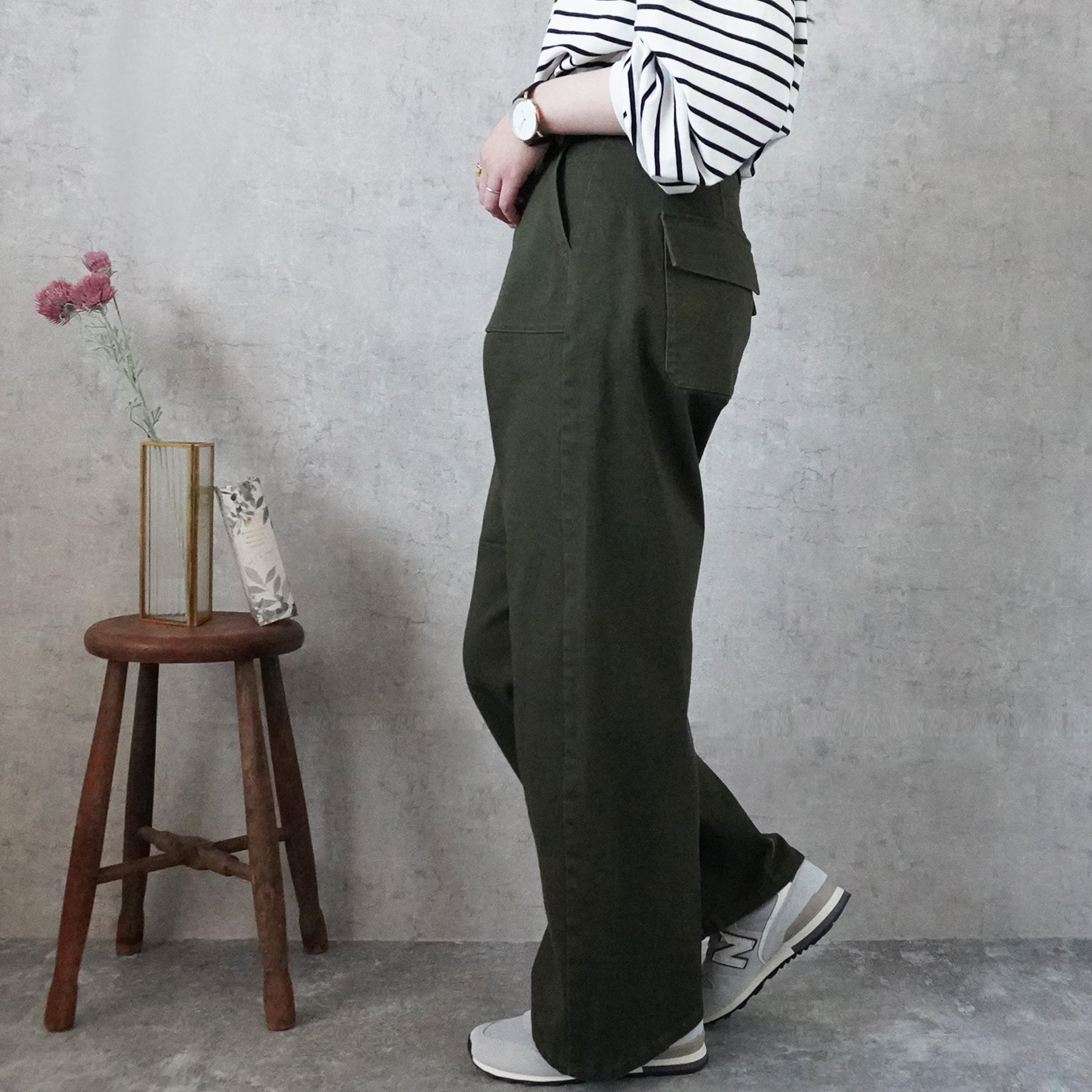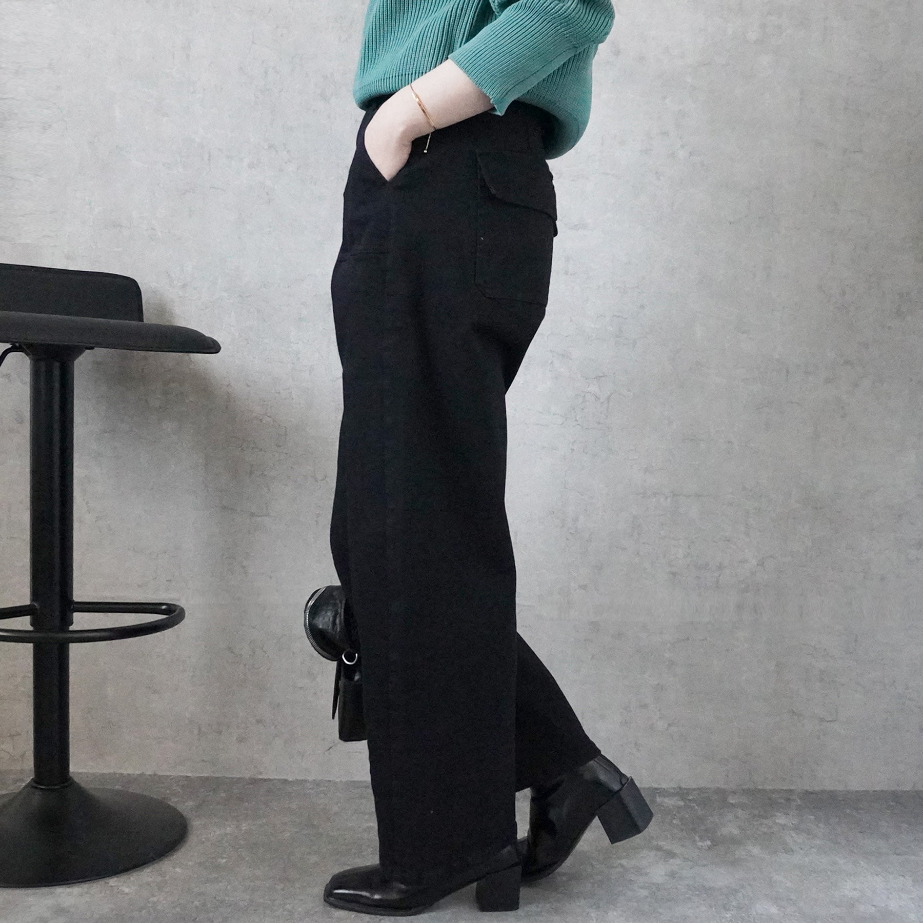 ■仕様:前開きファスナー(ボタン×1)、脇ポケット×2、後ろポケット×2、ウエスト総ゴム仕様、ウエスト調整ボタンあり