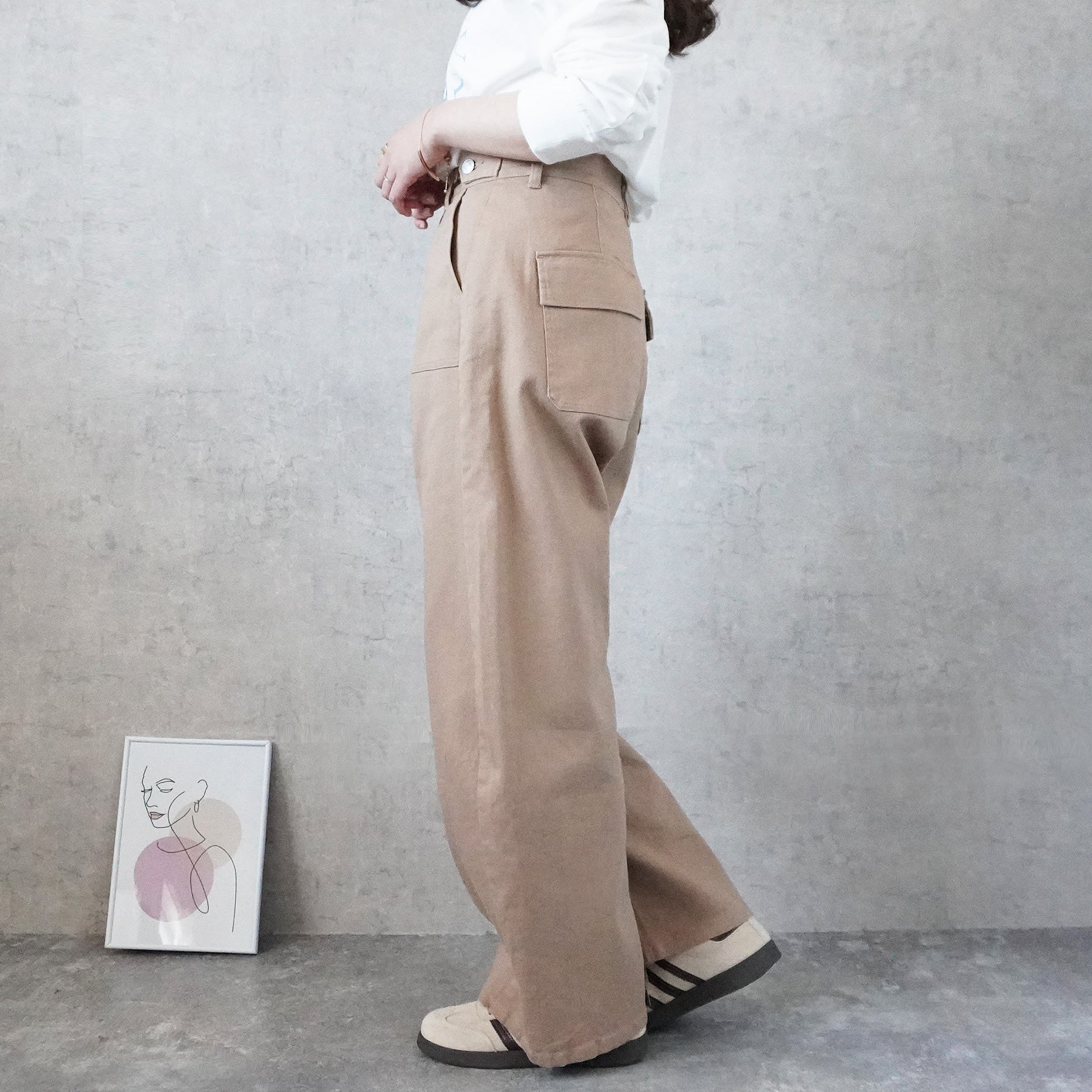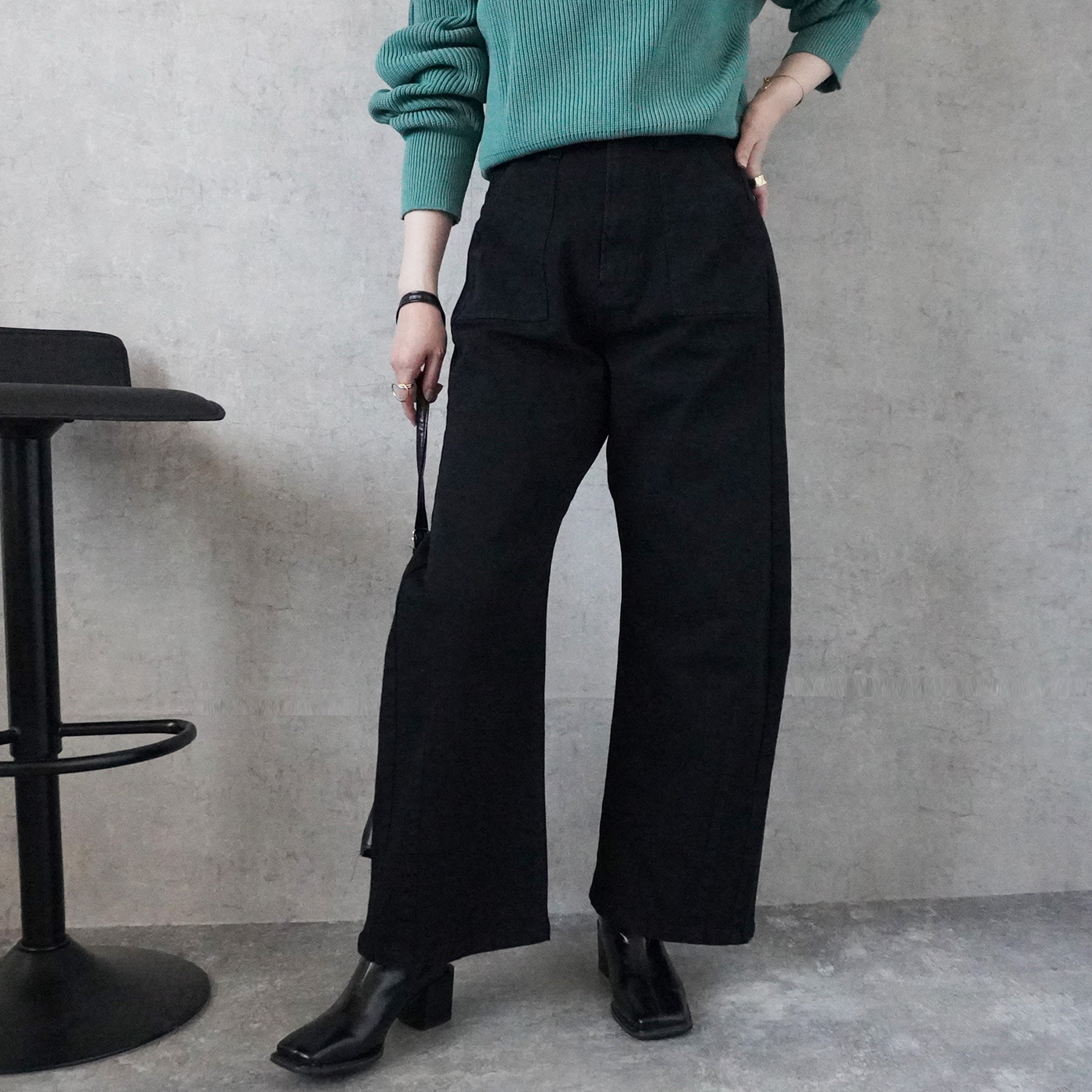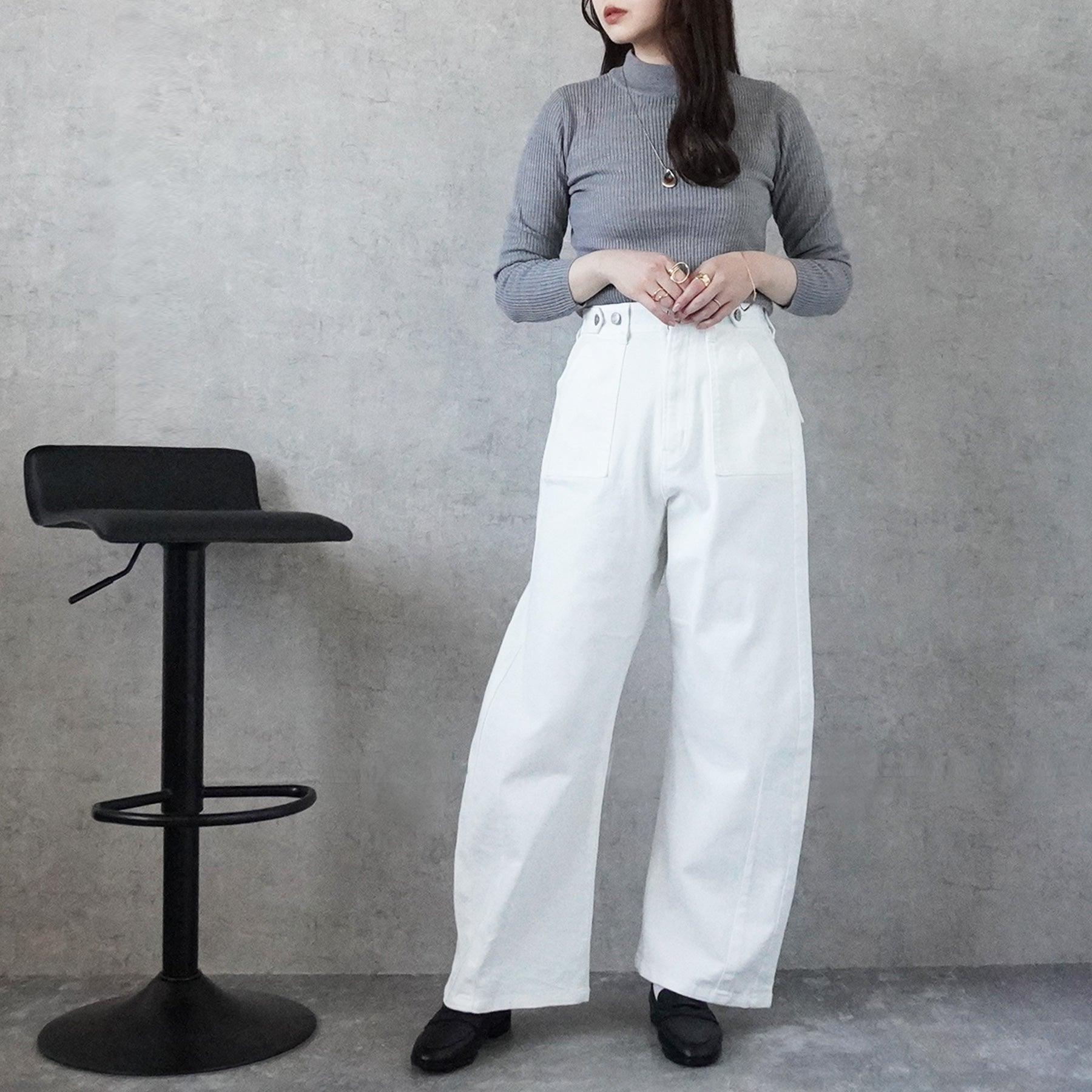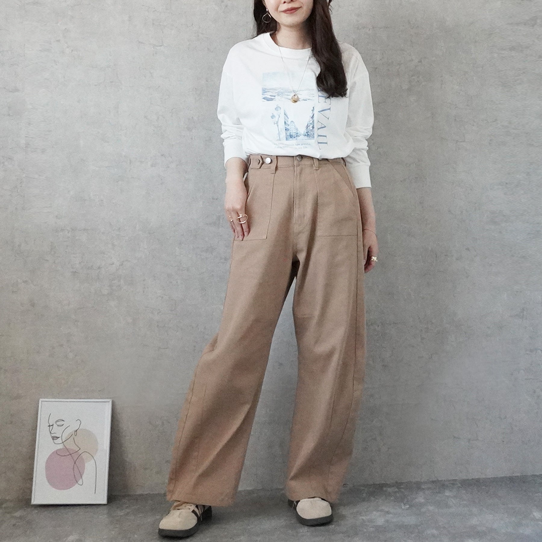 ■仕様:前開きファスナー(ボタン×1)、脇ポケット×2、後ろポケット×2、ウエスト総ゴム仕様、ウエスト調整ボタンあり