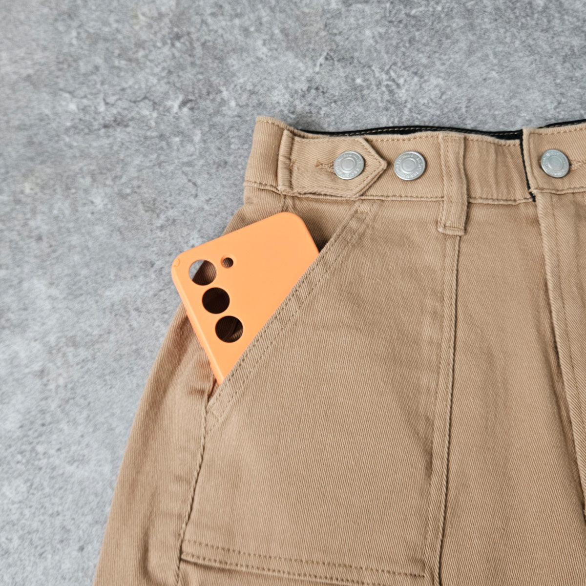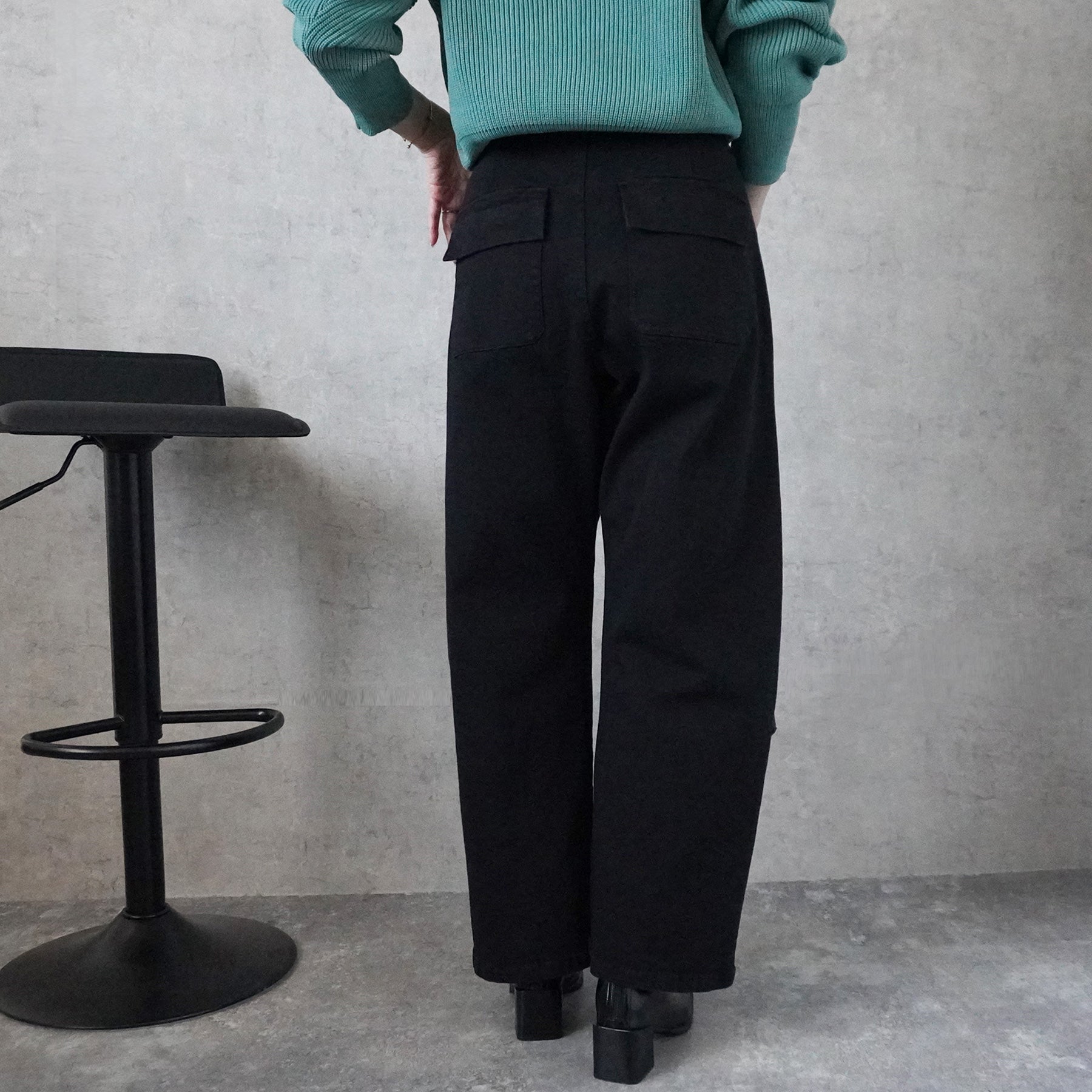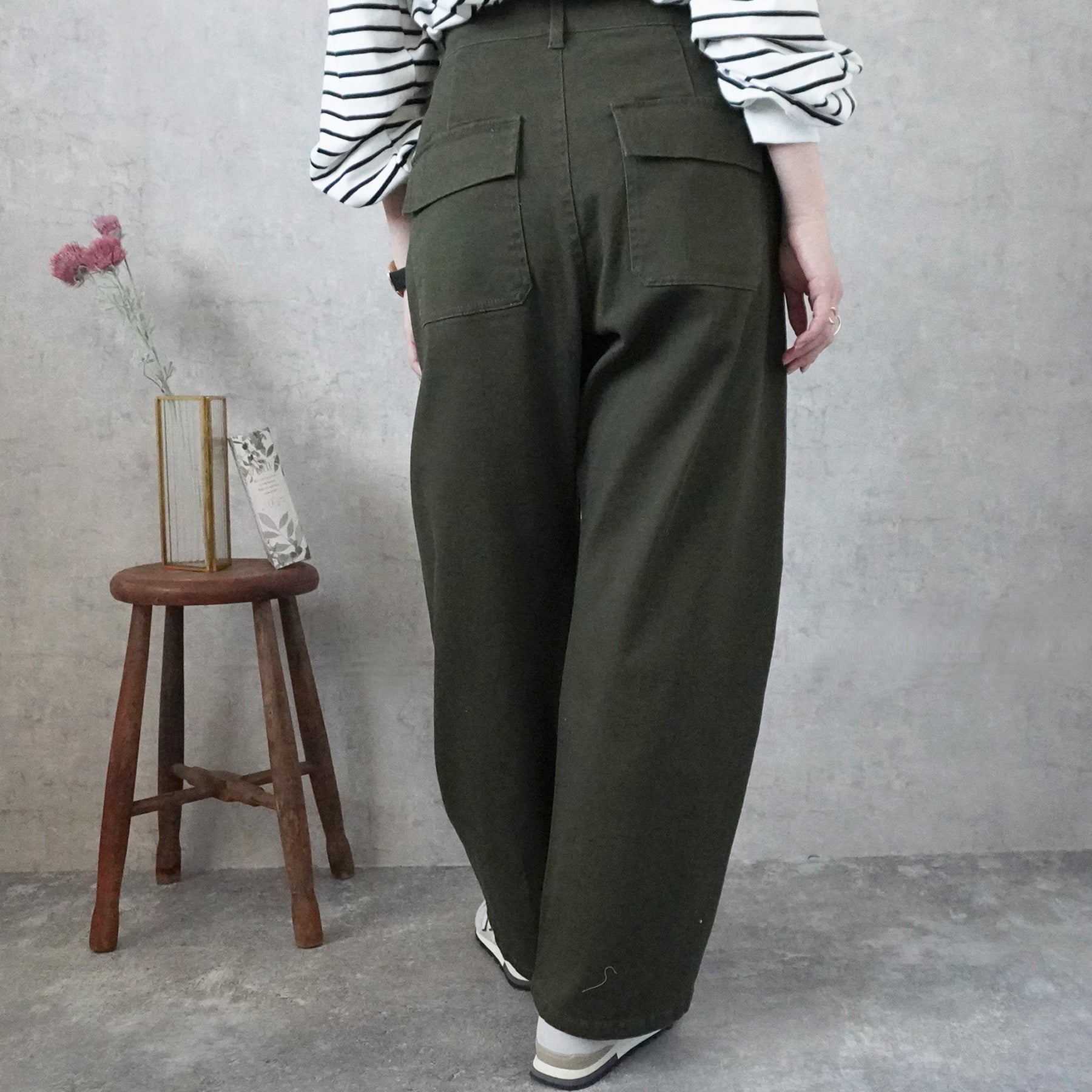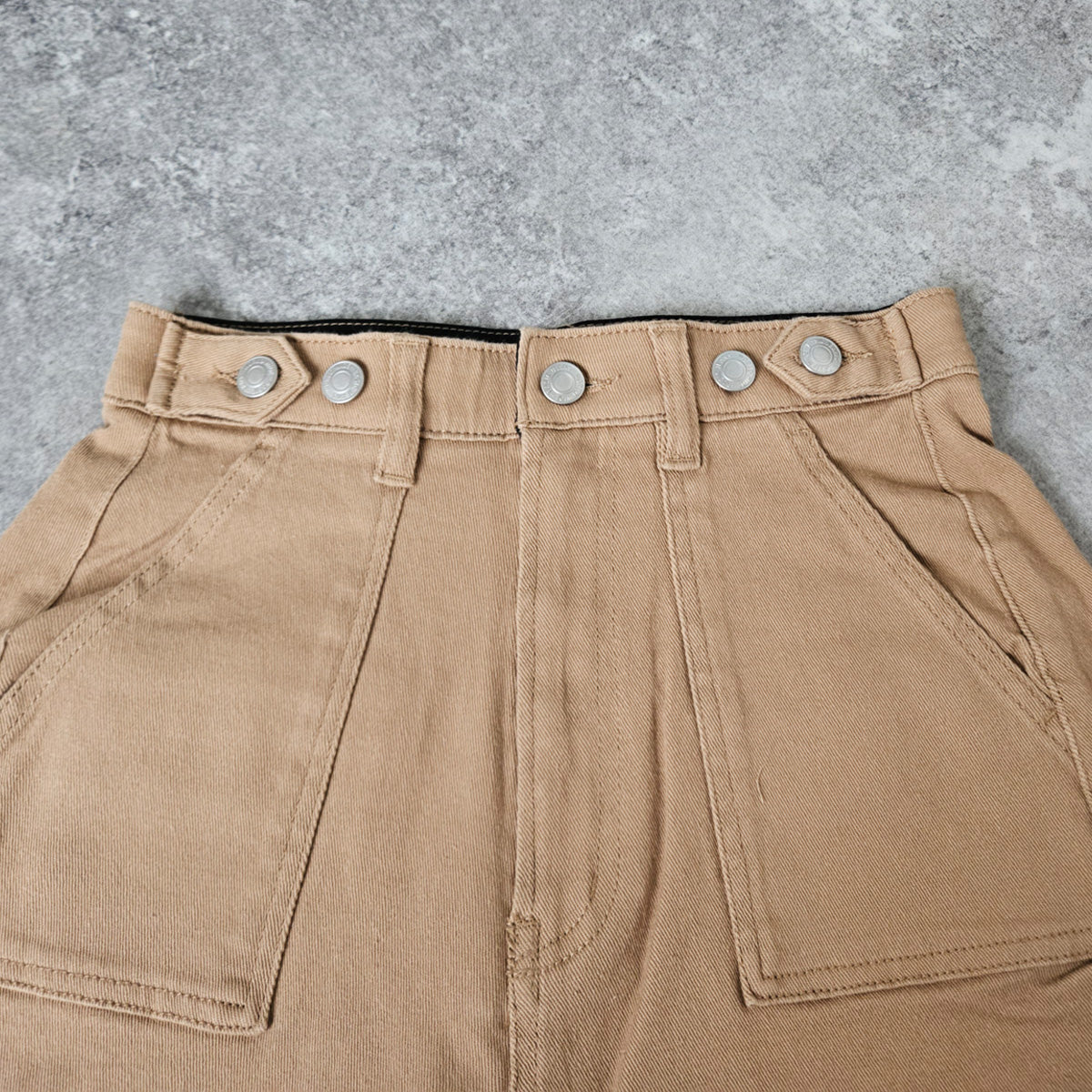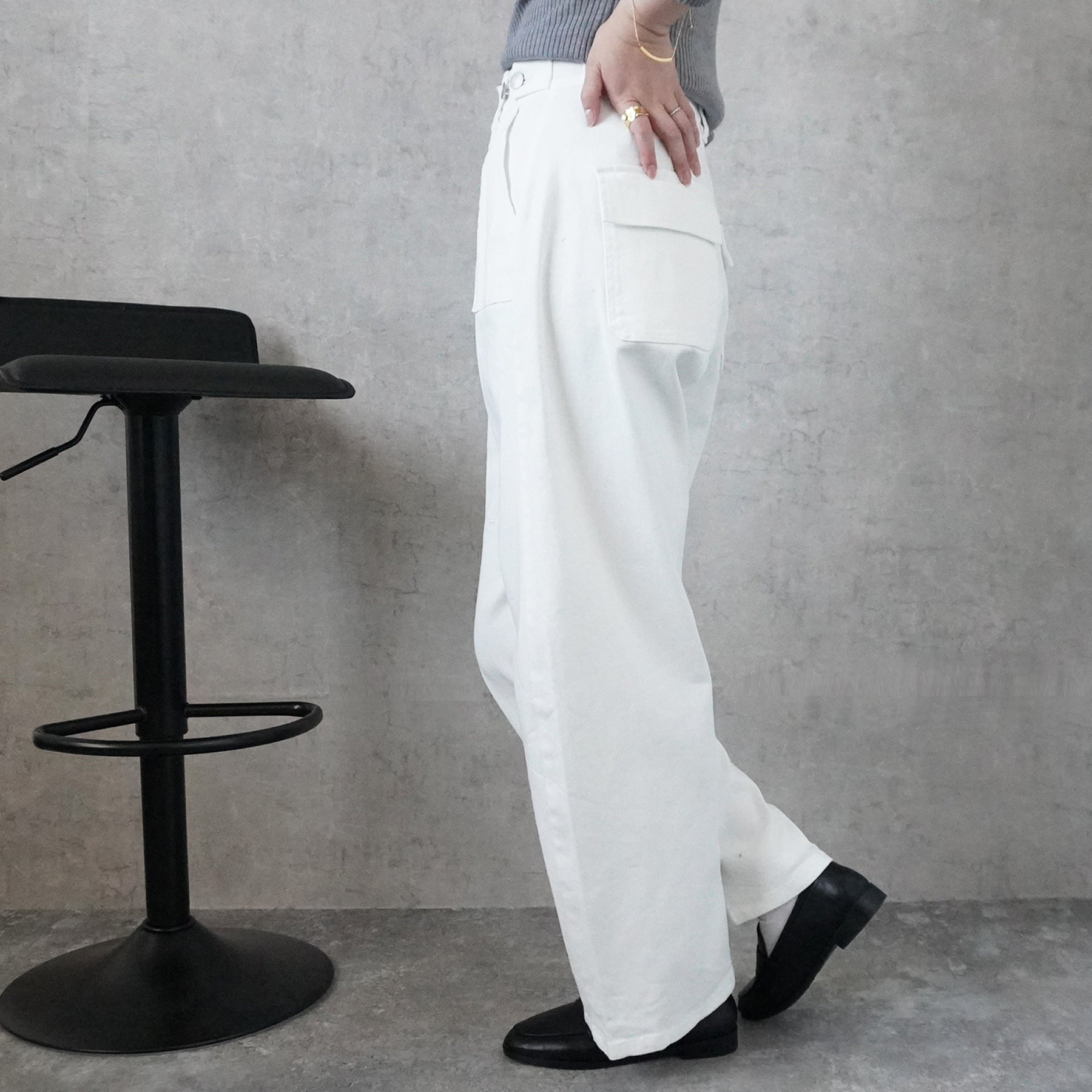 ■仕様:前開きファスナー(ボタン×1)、脇ポケット×2、後ろポケット×2、ウエスト総ゴム仕様、ウエスト調整ボタンあり