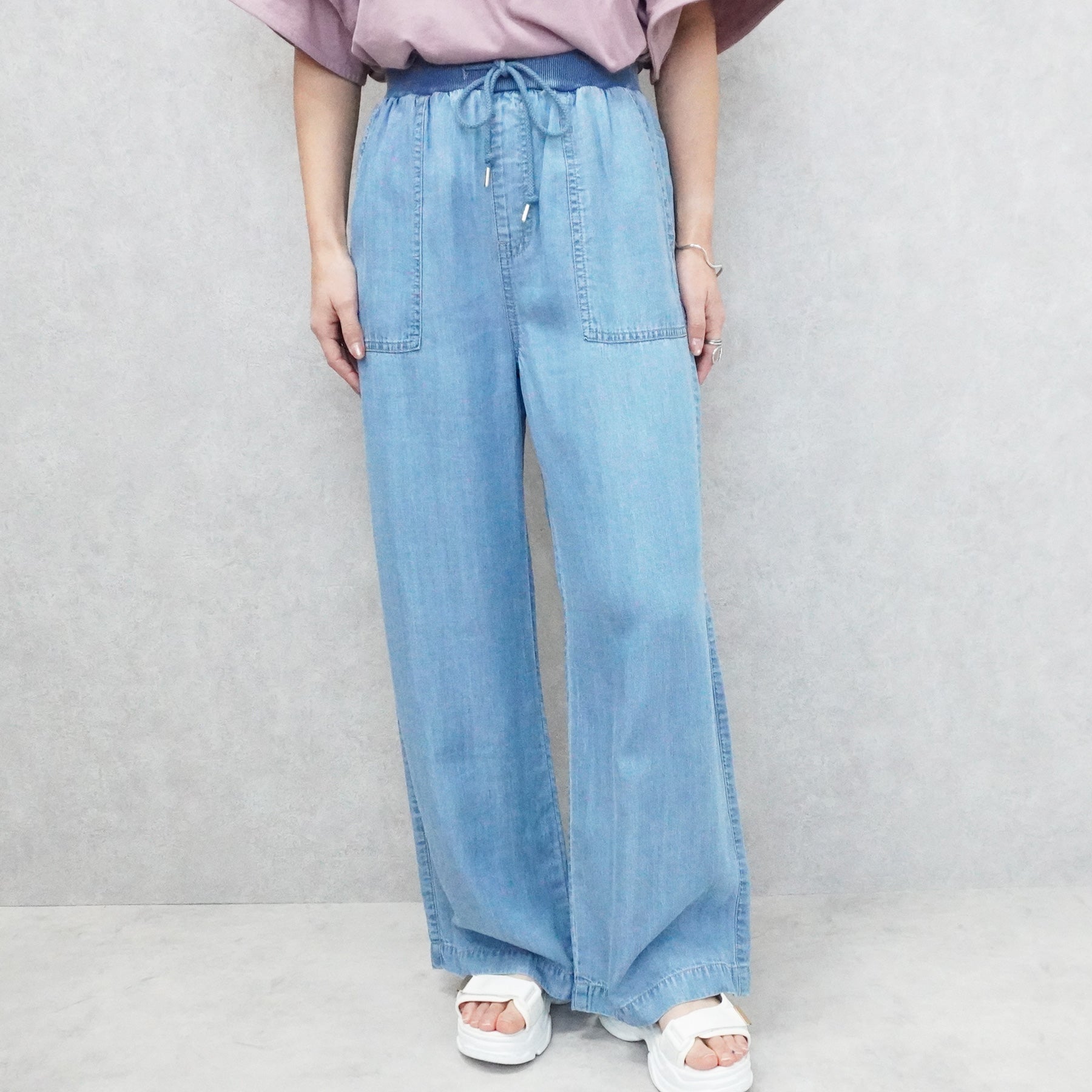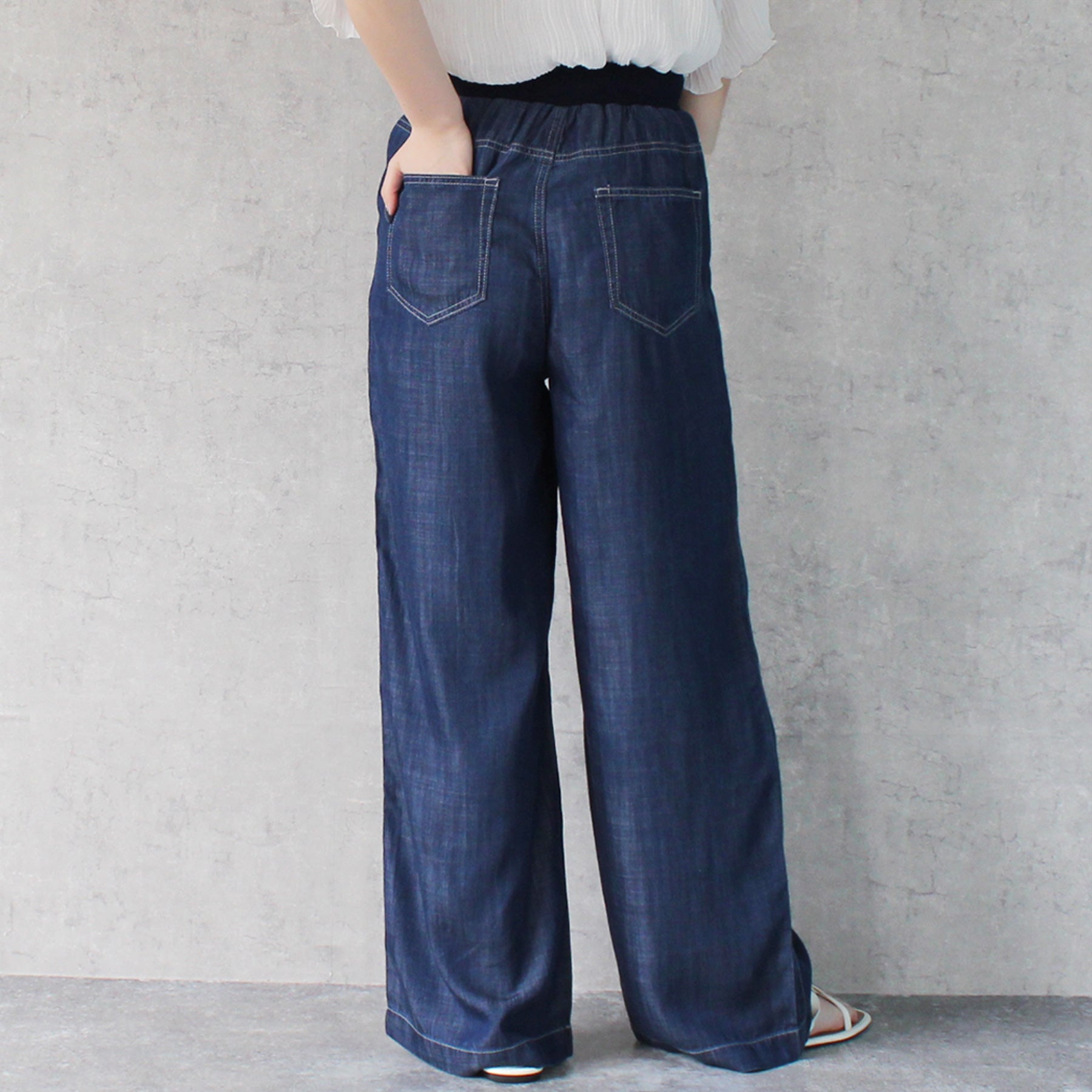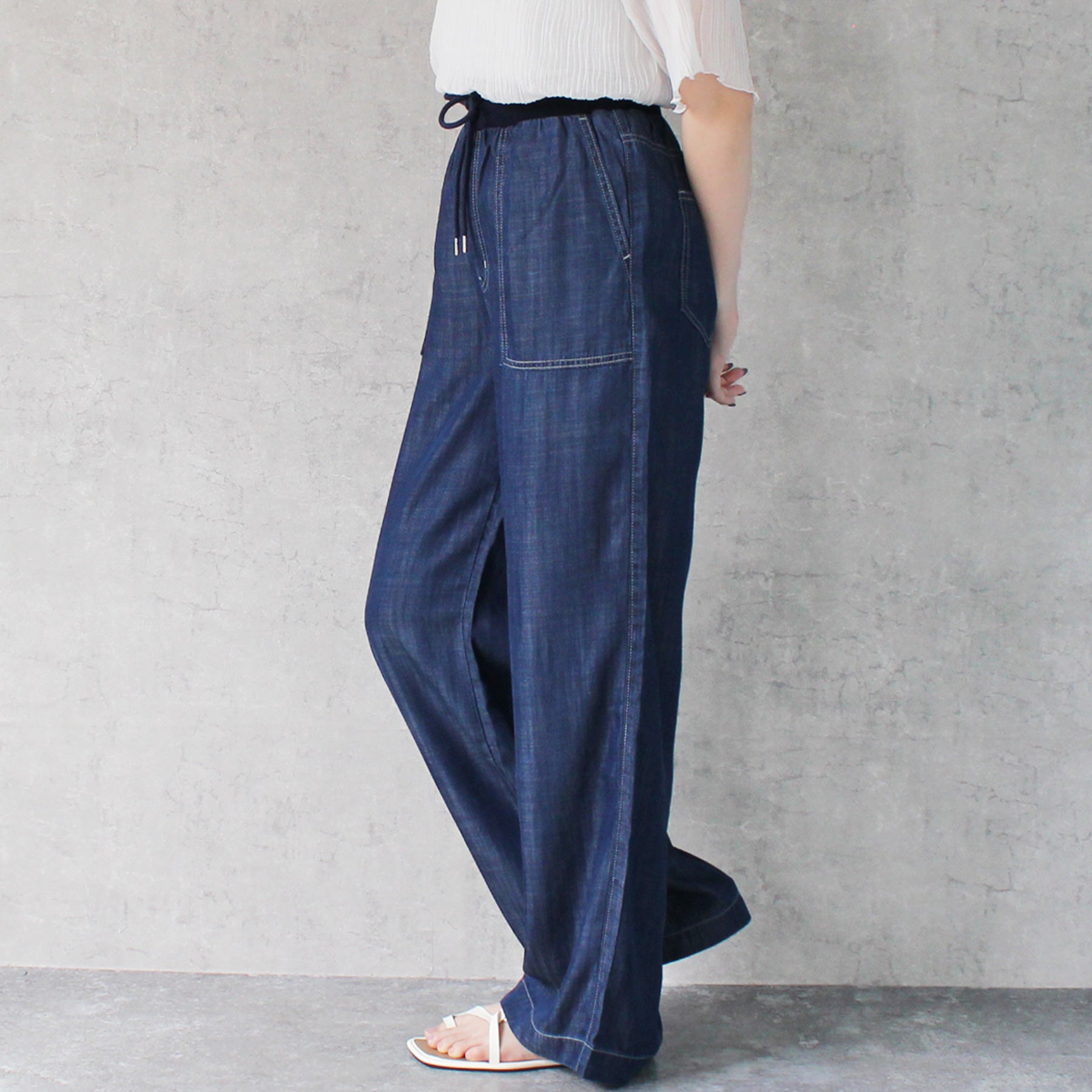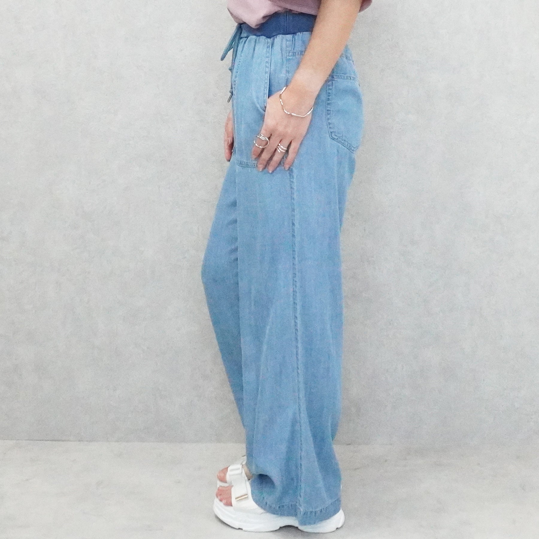 ■仕様:ウエスト調整紐有り、ウエスト総ゴム仕様(リブ)、脇ポケット×2、後ろポケット×2