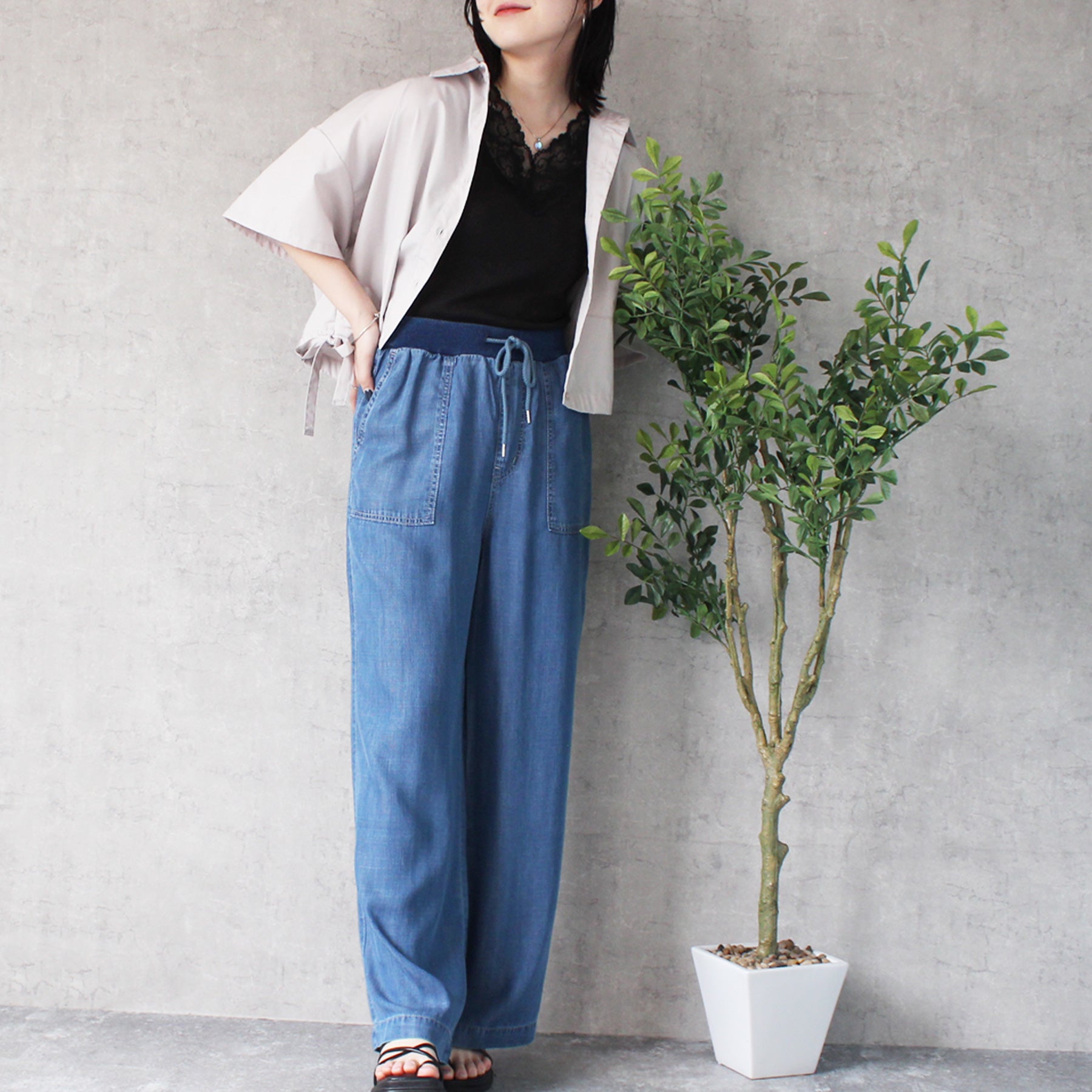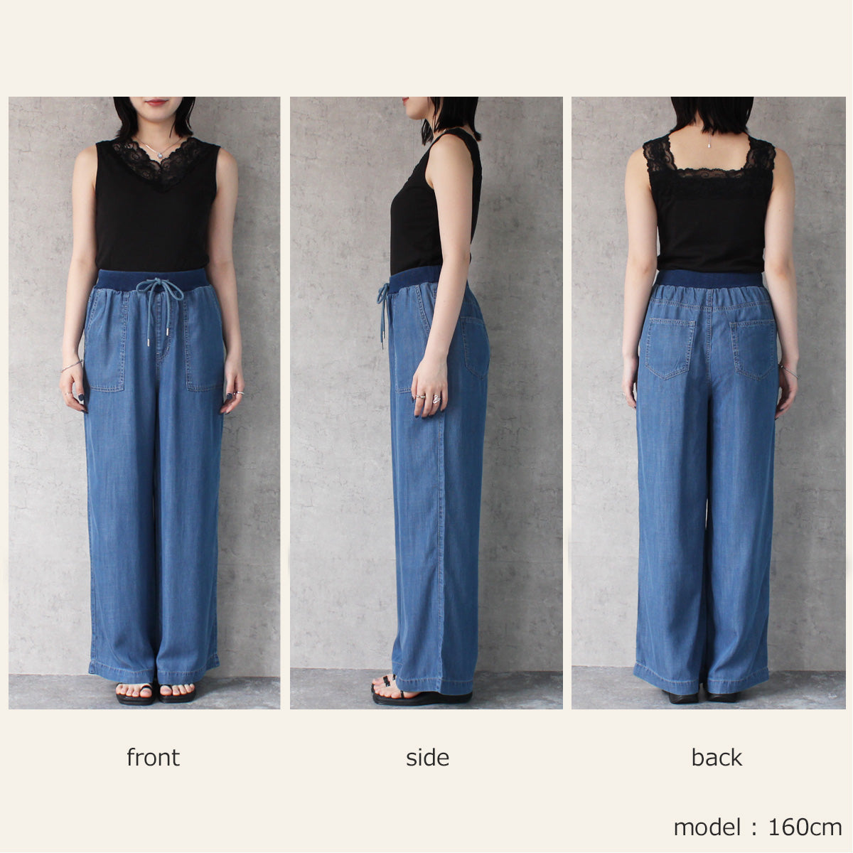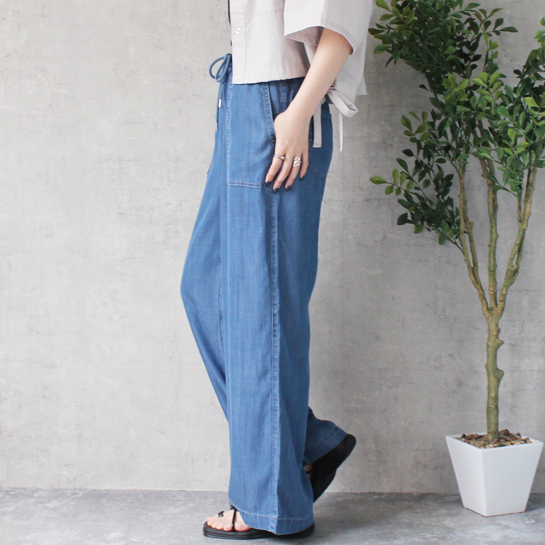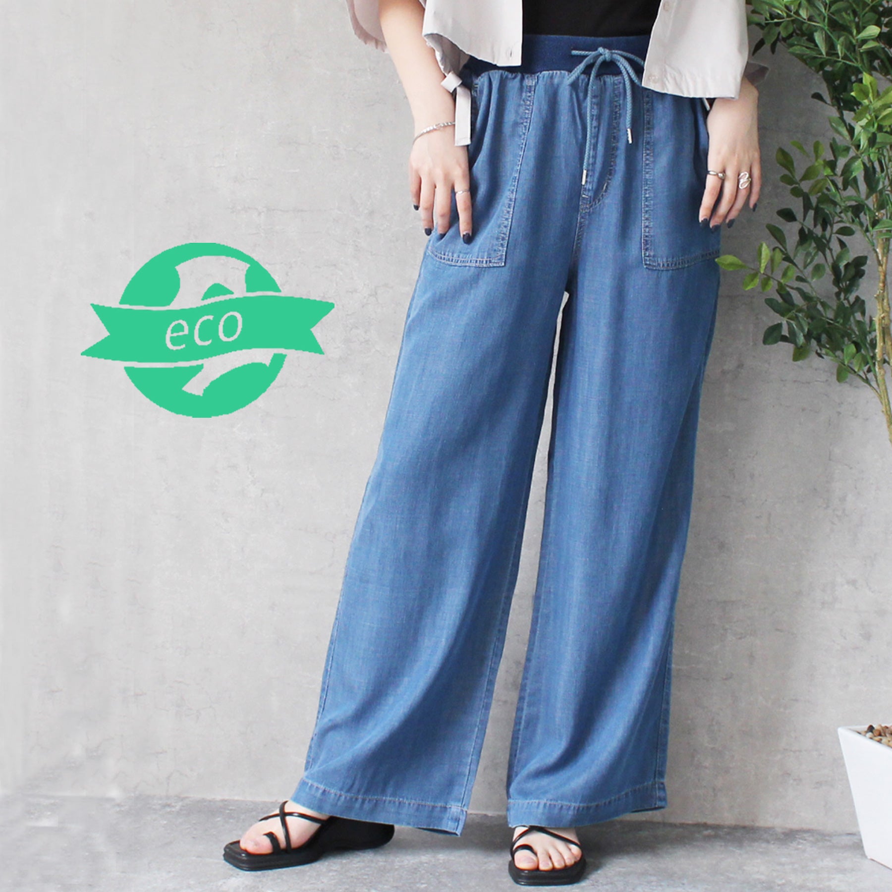 ■仕様:ウエスト調整紐有り、ウエスト総ゴム仕様(リブ)、脇ポケット×2、後ろポケット×2