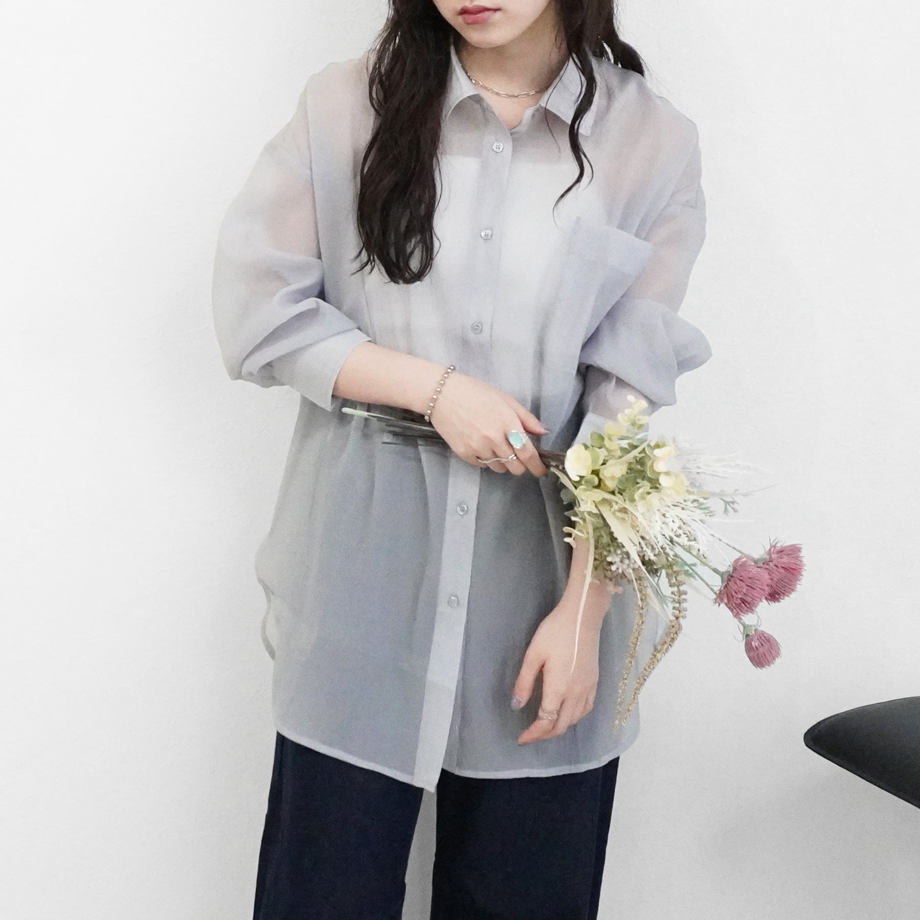 ■仕様:前開きボタン×7、胸ポケット、袖口ボタン×2、スリットあり