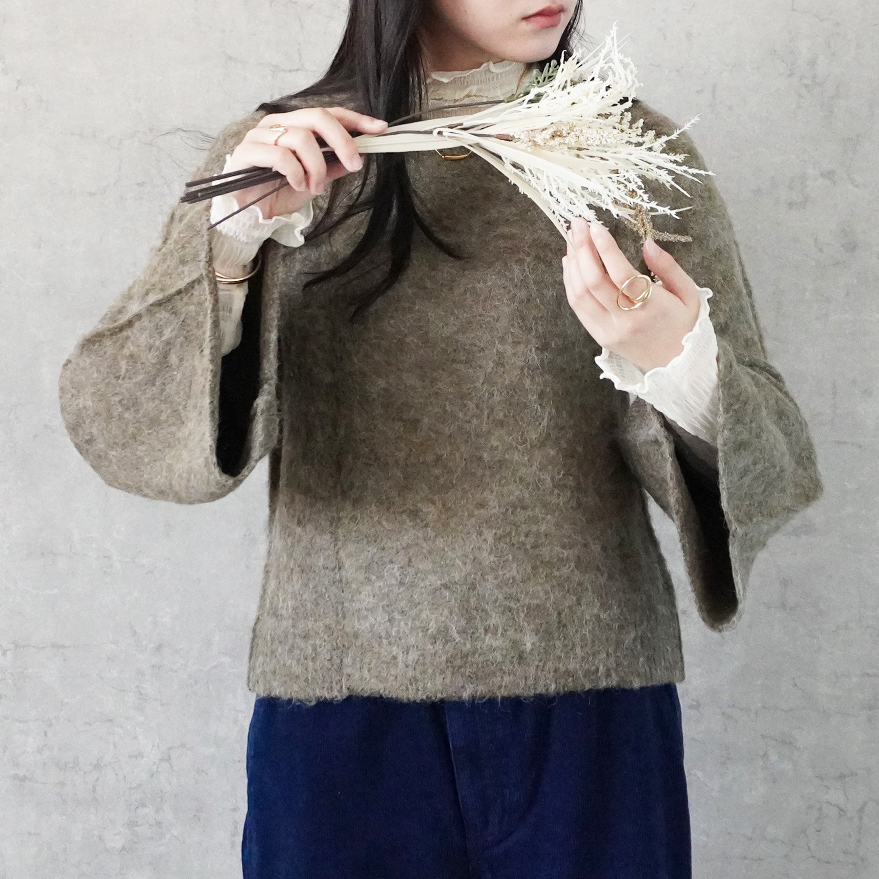 シャギーフレアスリーブニット