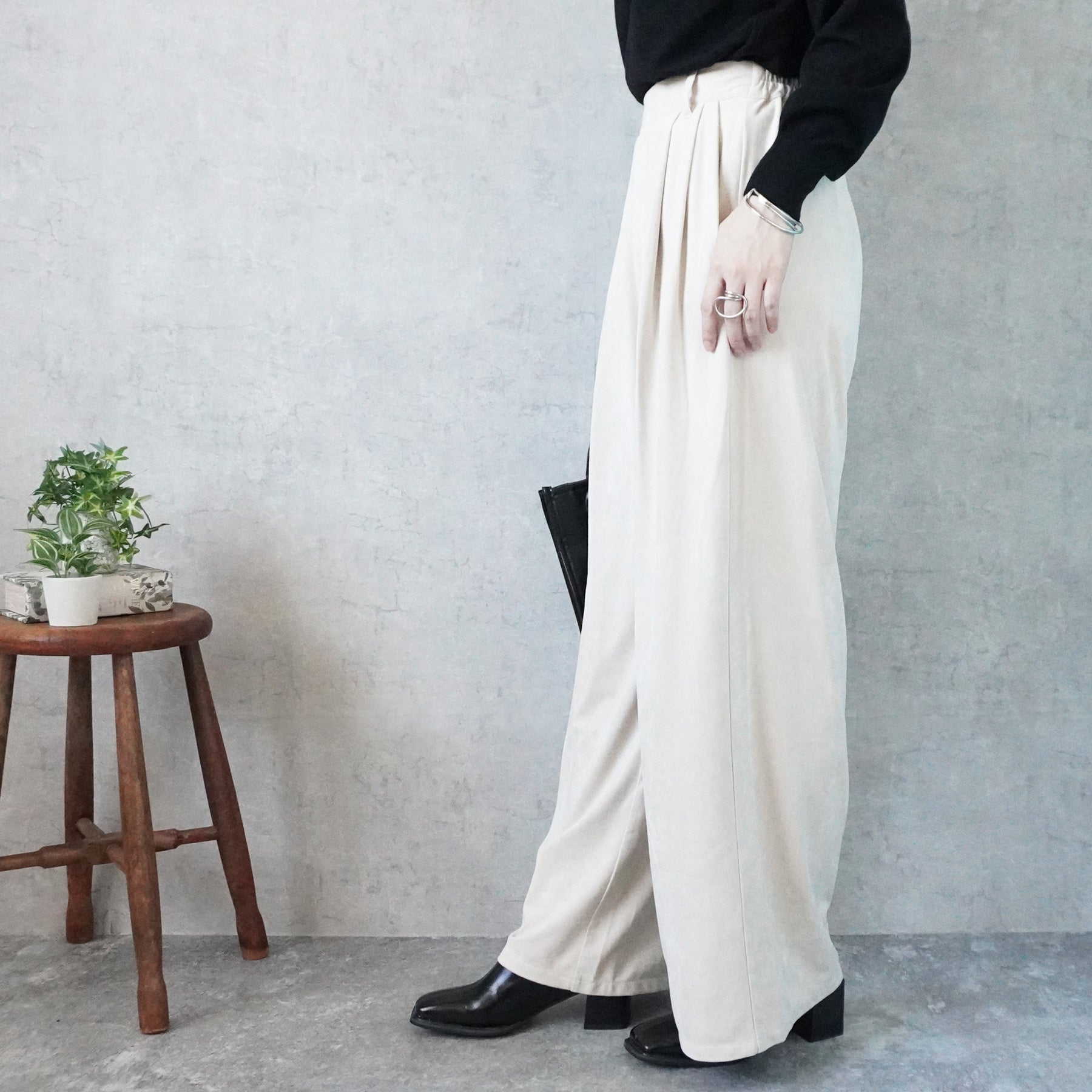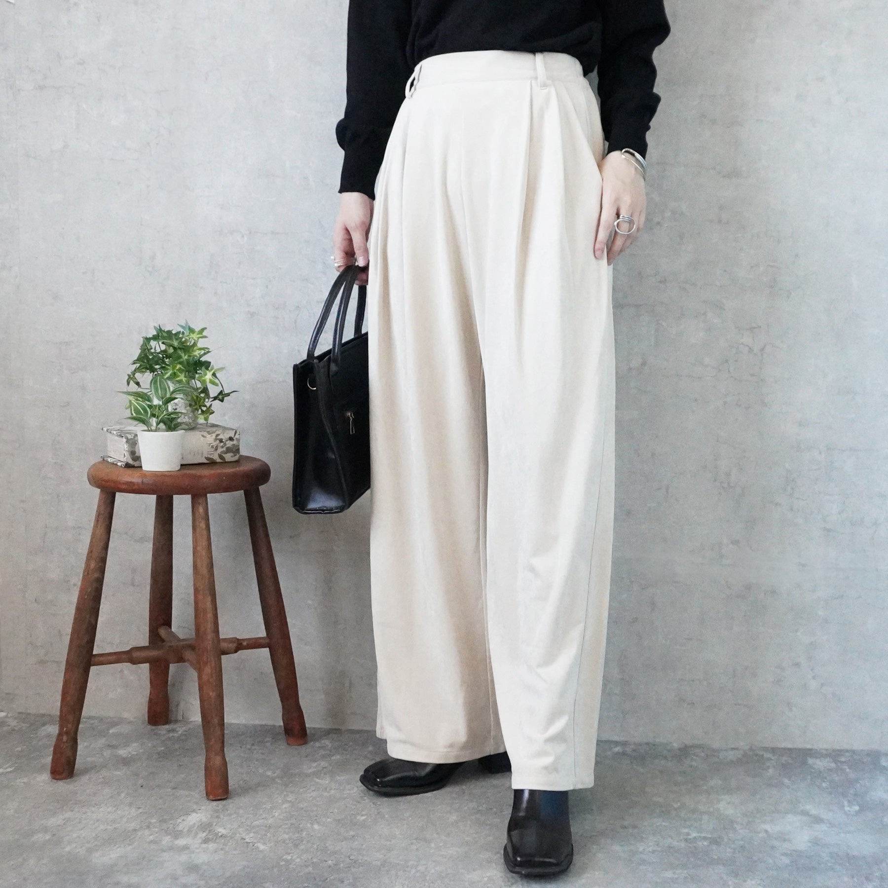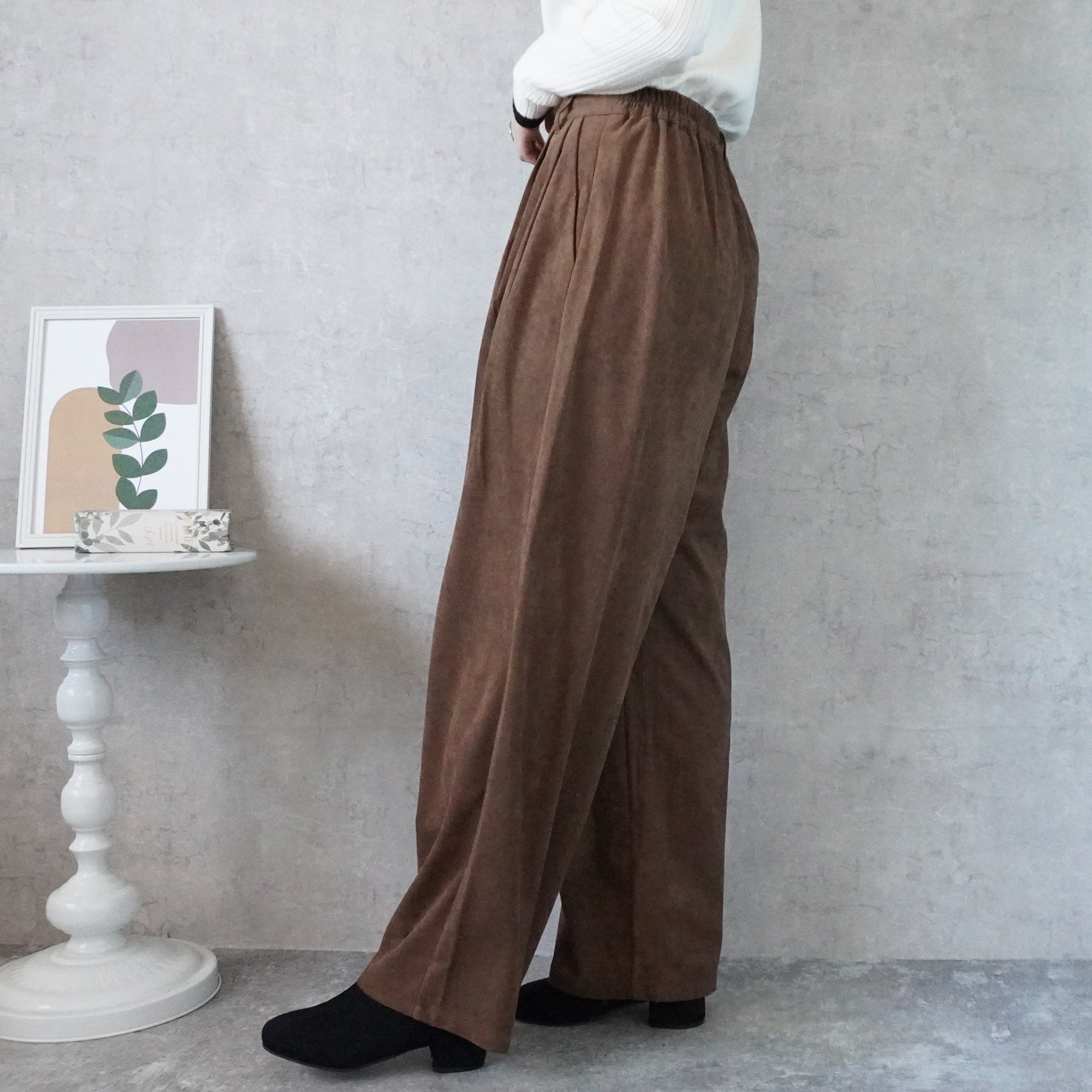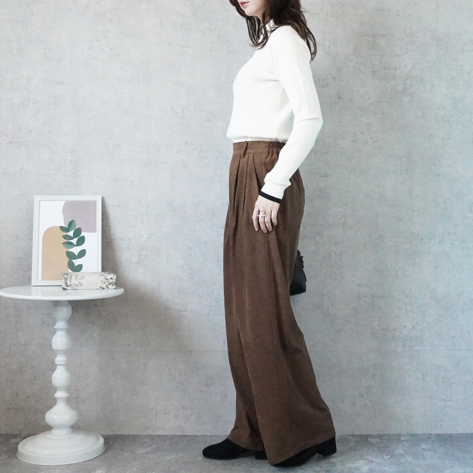 スエードタックワイドパンツ