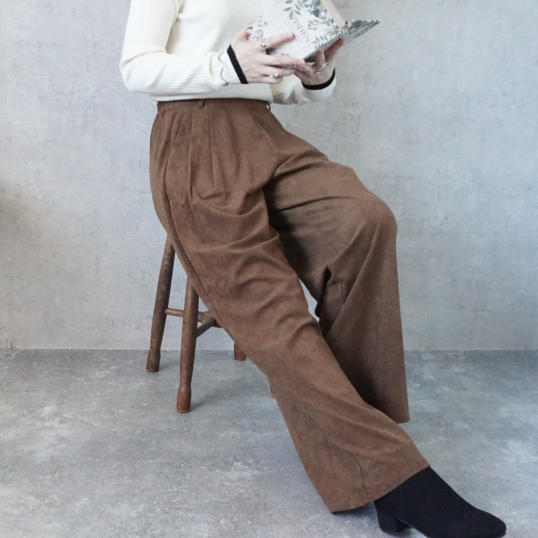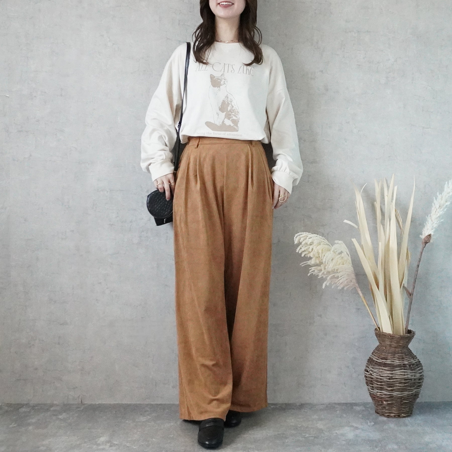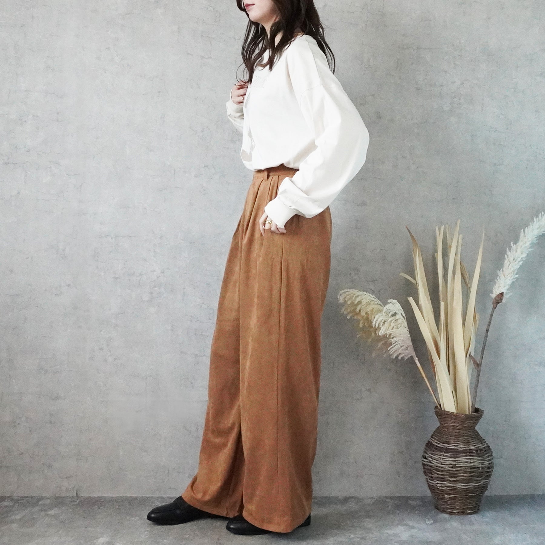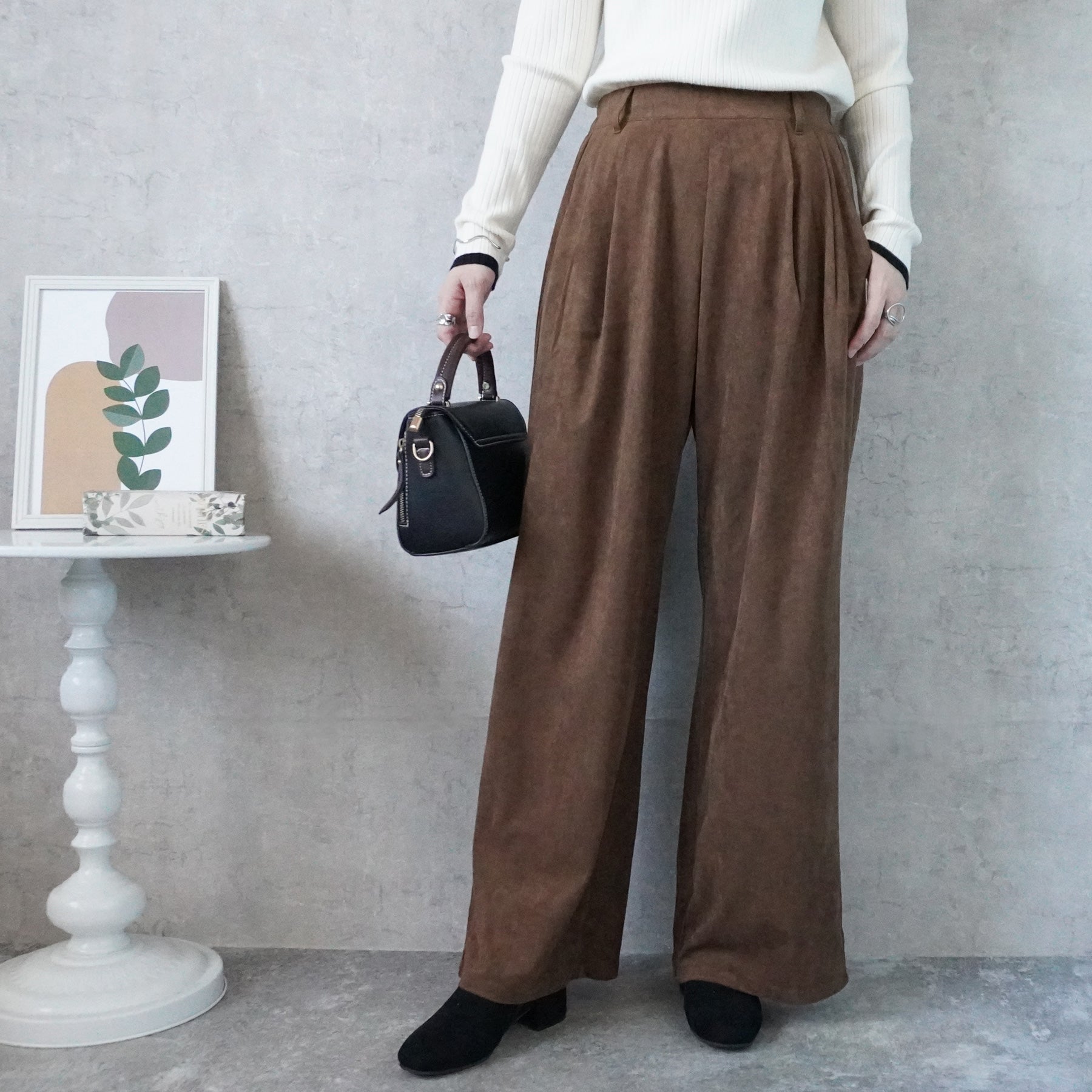 スエードタックワイドパンツ