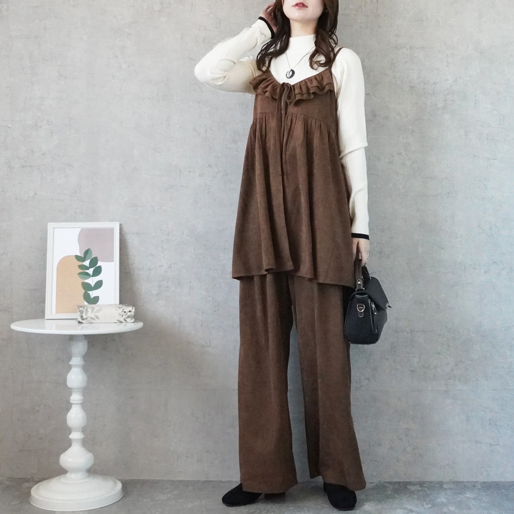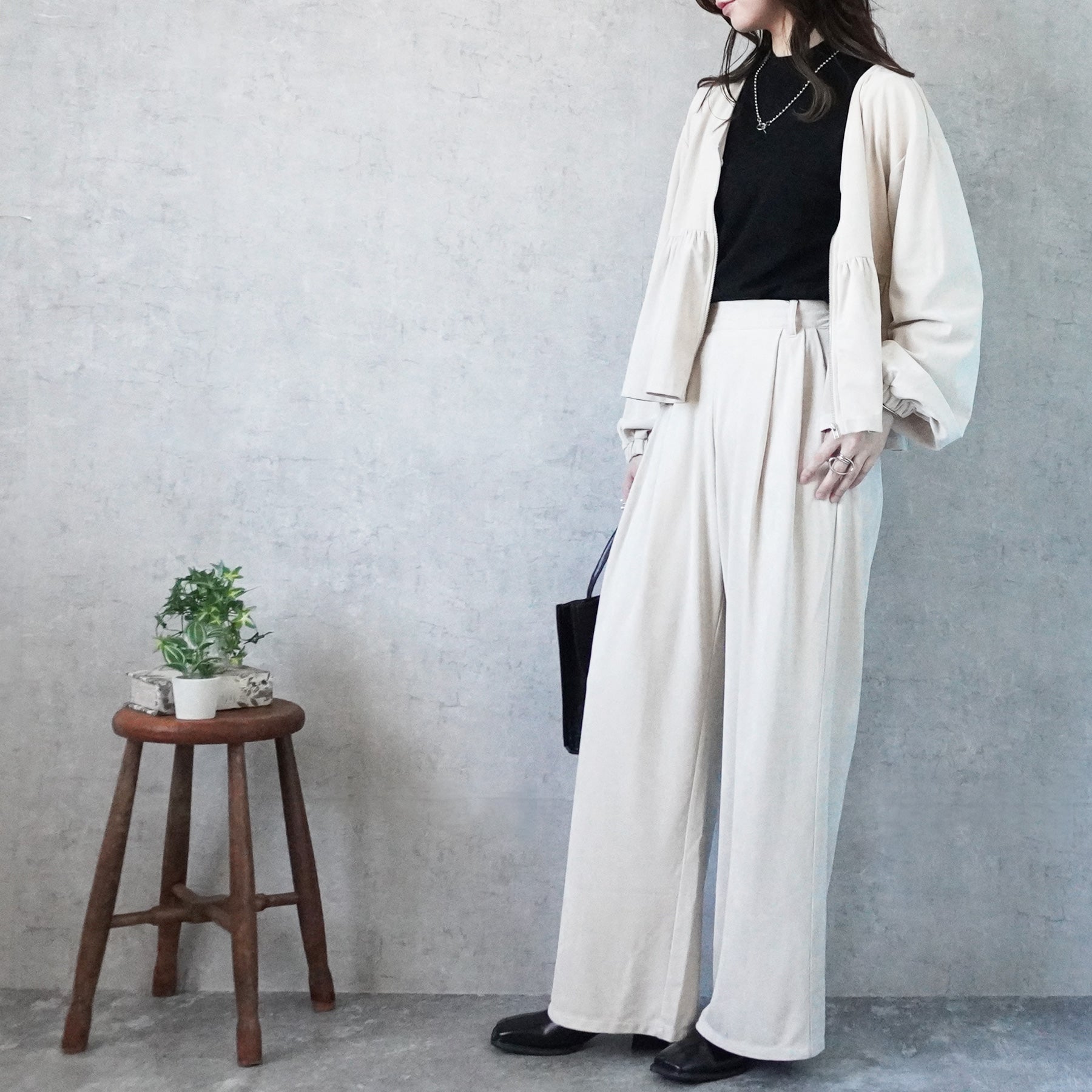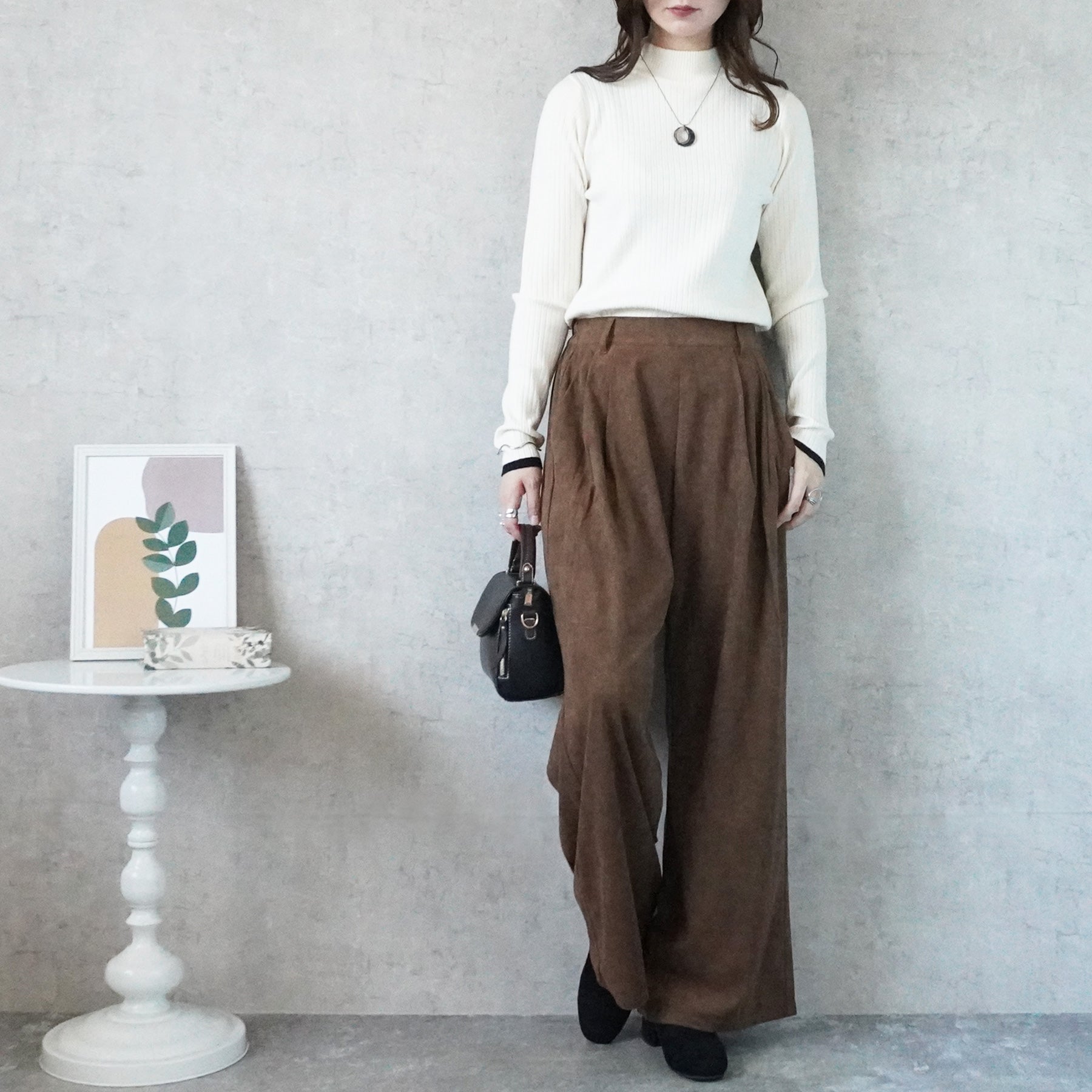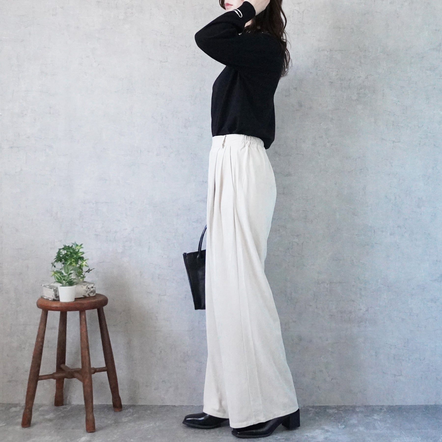 スエードタックワイドパンツ