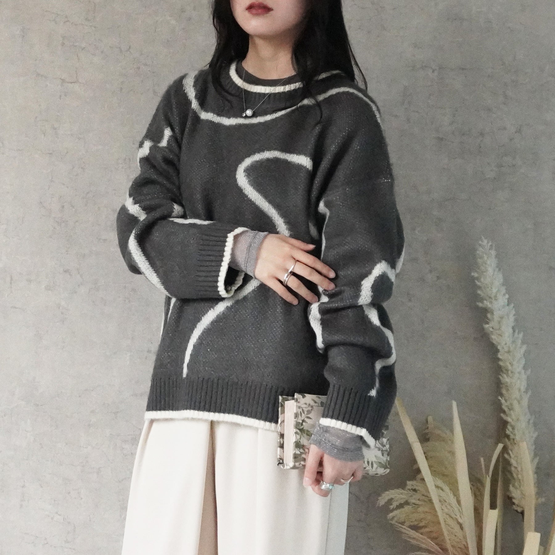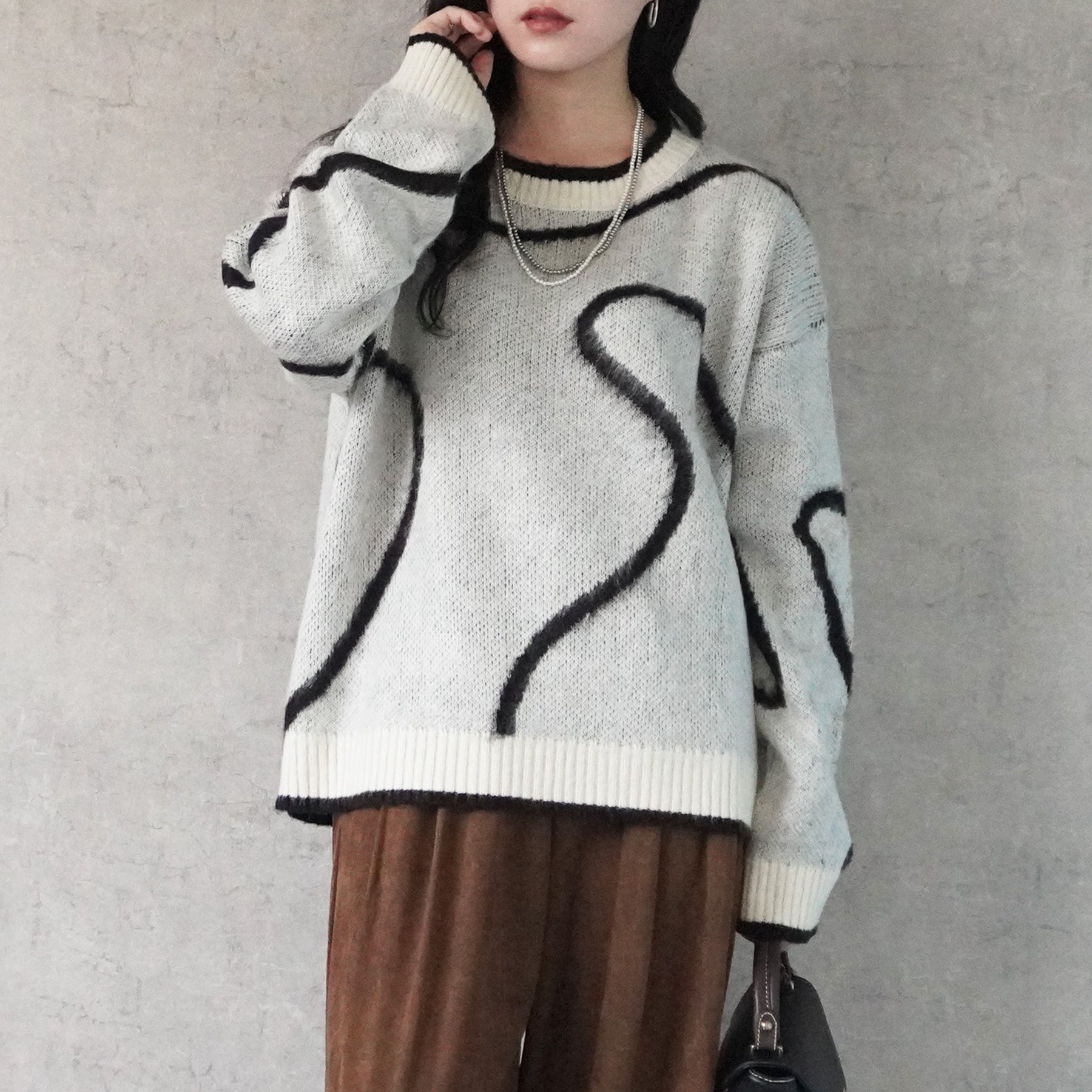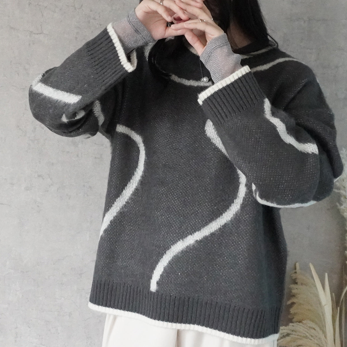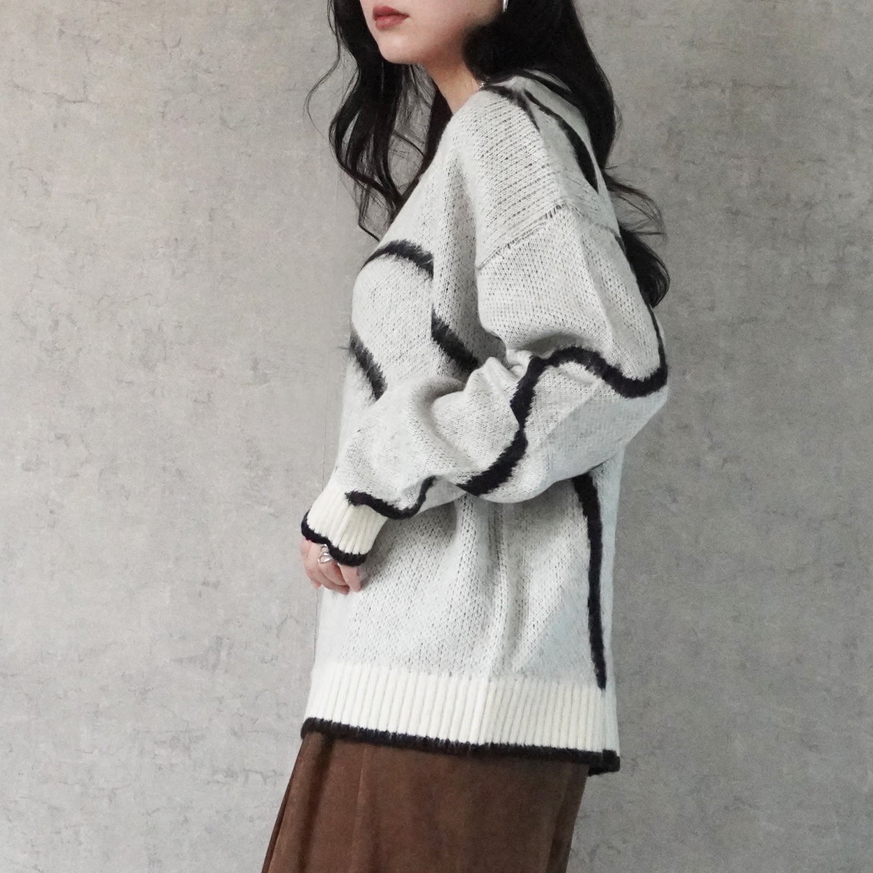 ニュアンスライン配色ニットプルオーバー