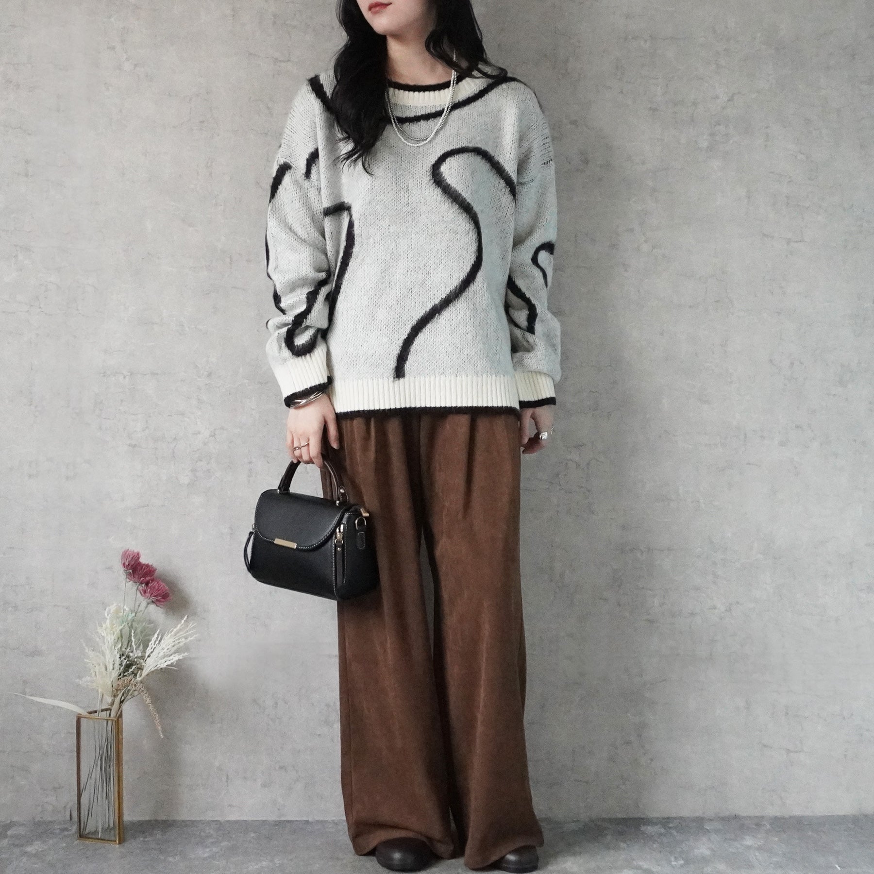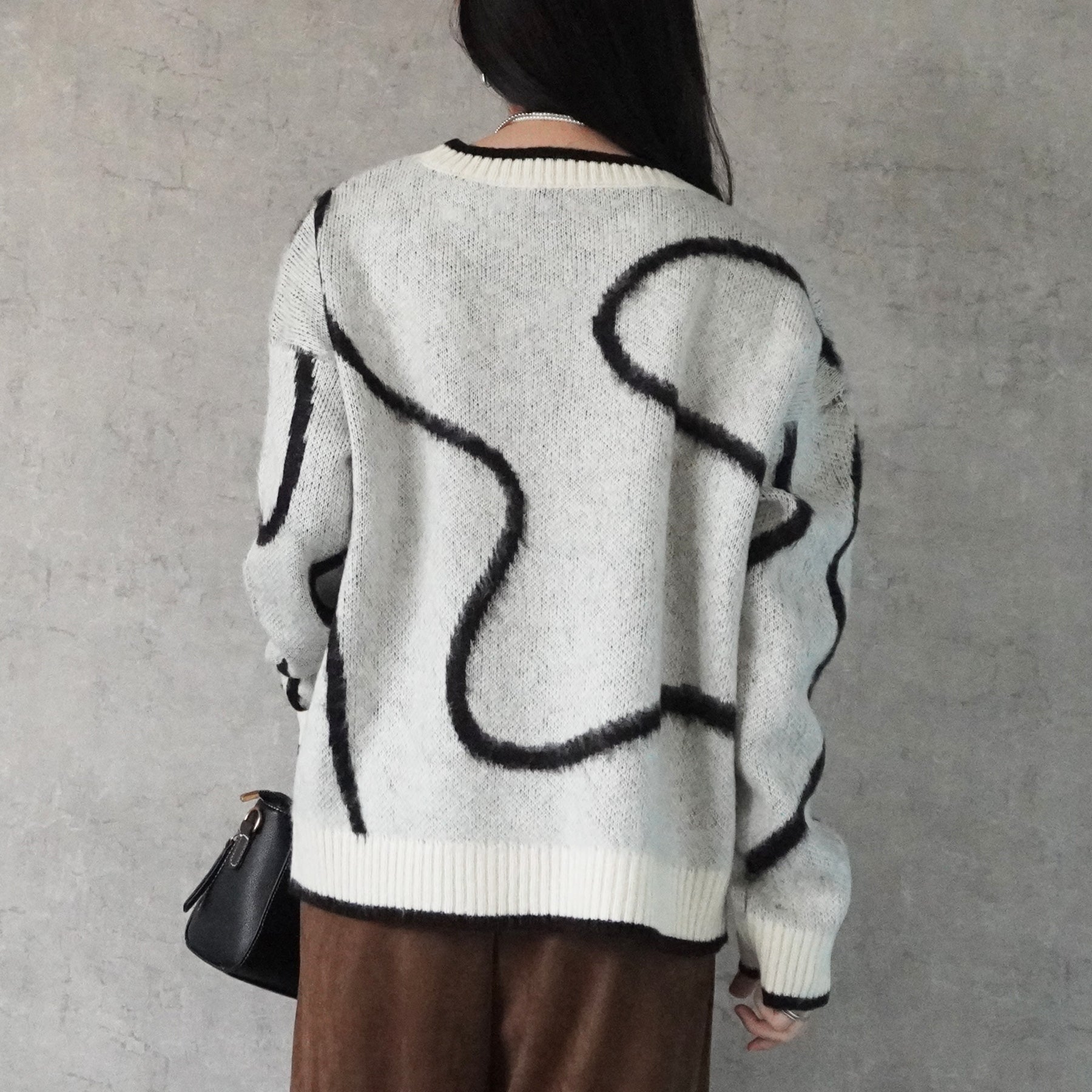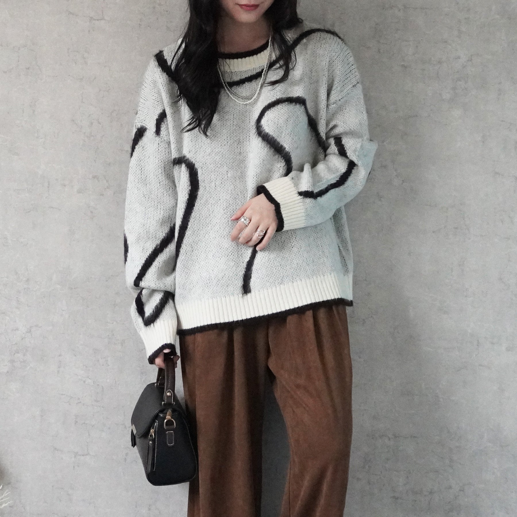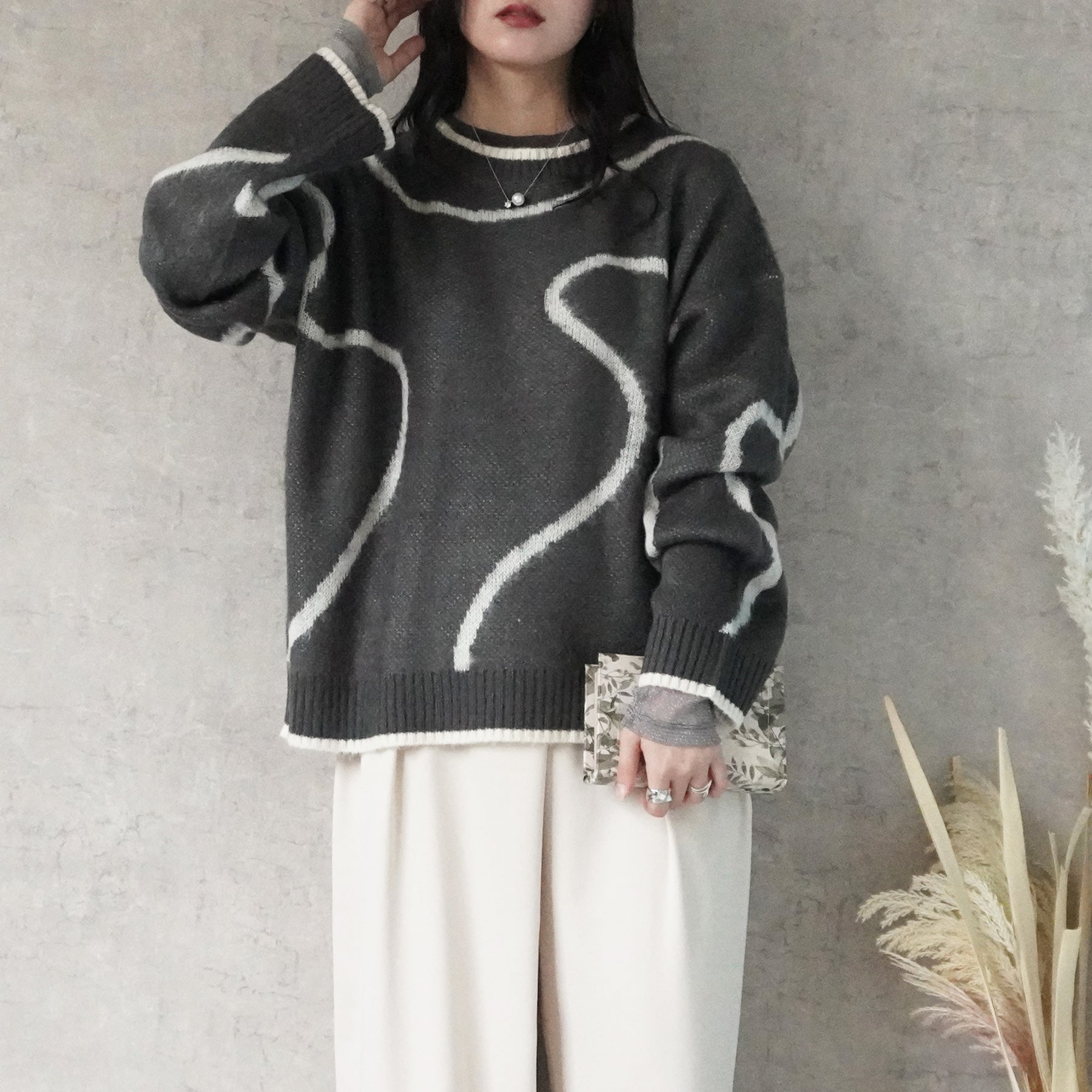 ニュアンスライン配色ニットプルオーバー