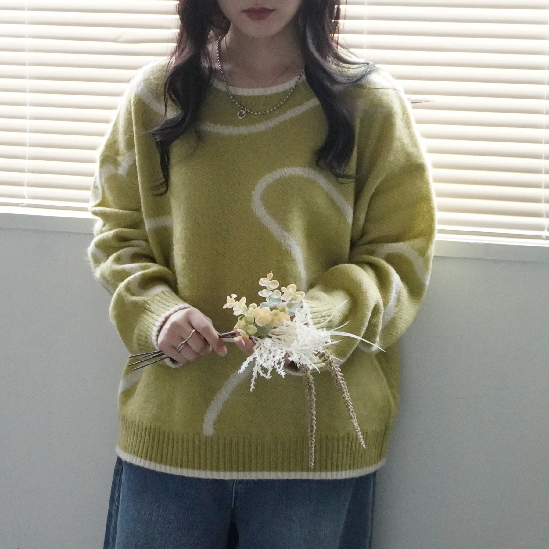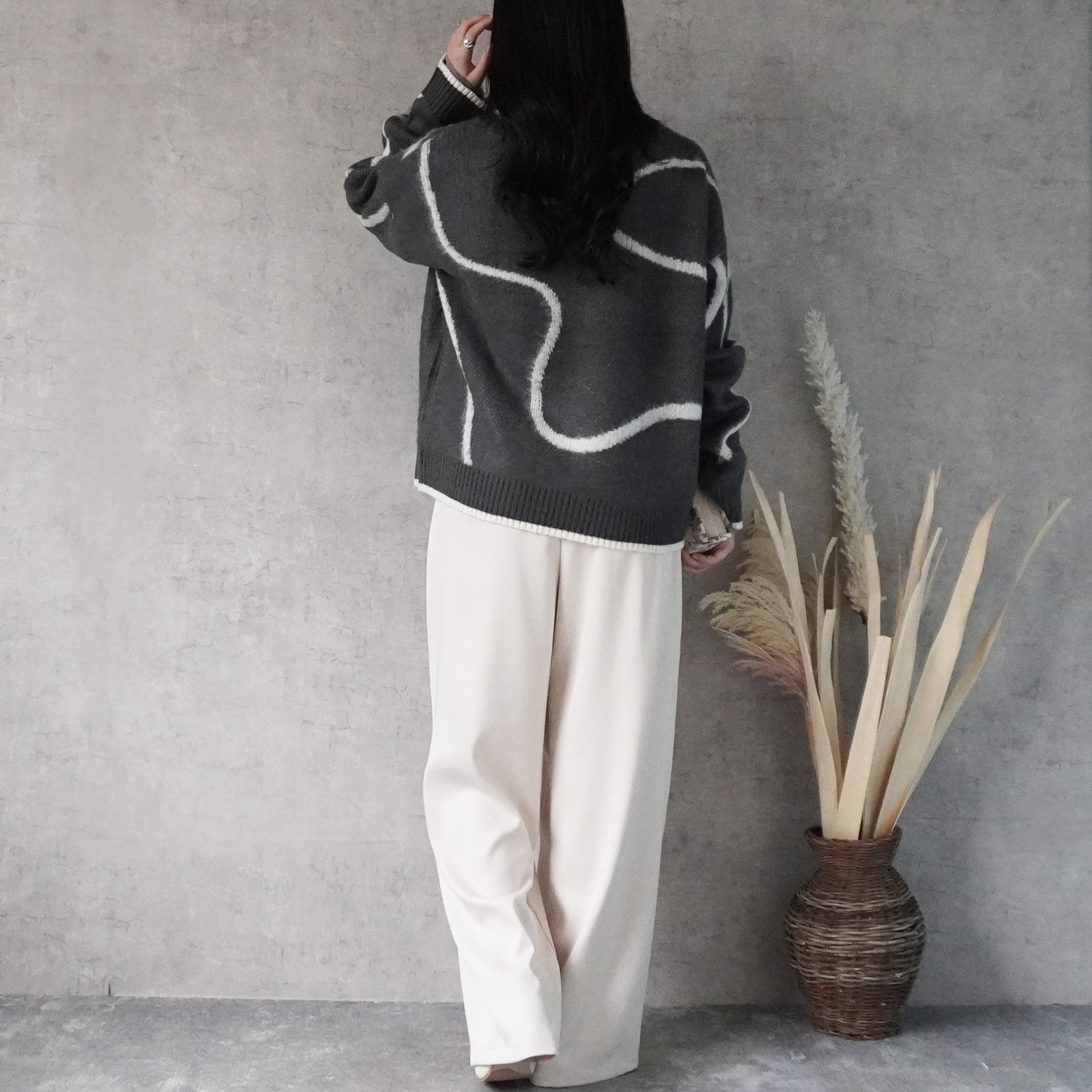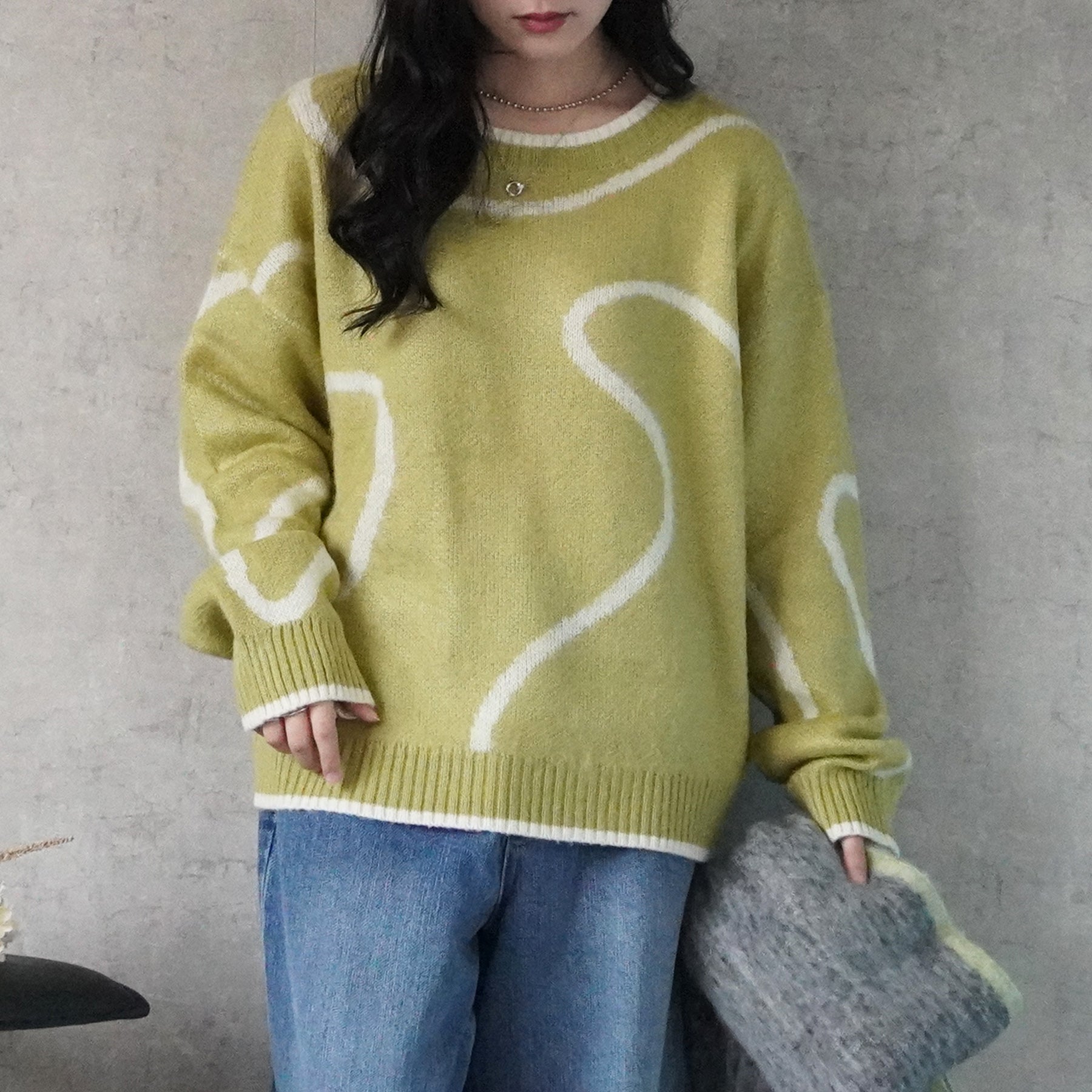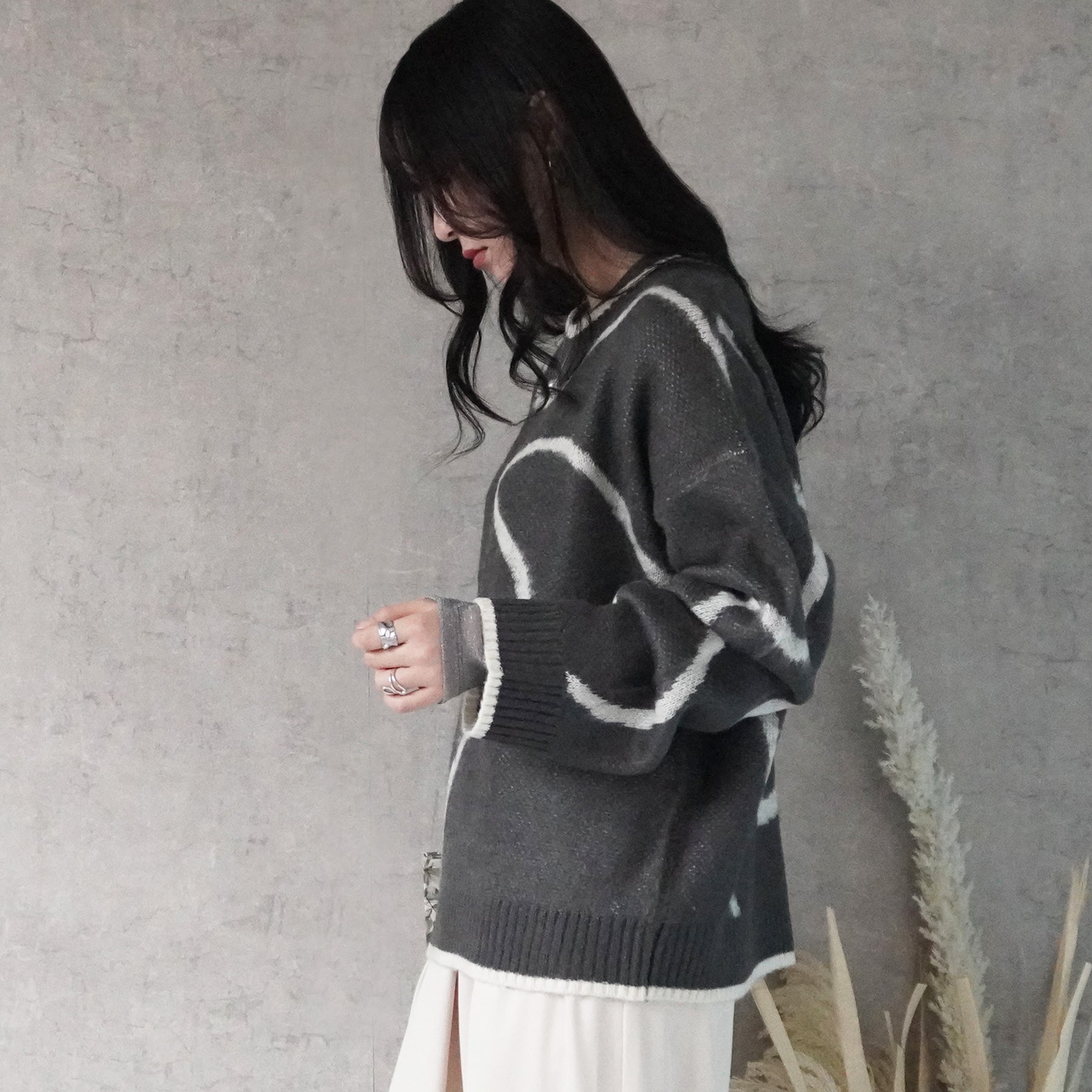 ニュアンスライン配色ニットプルオーバー