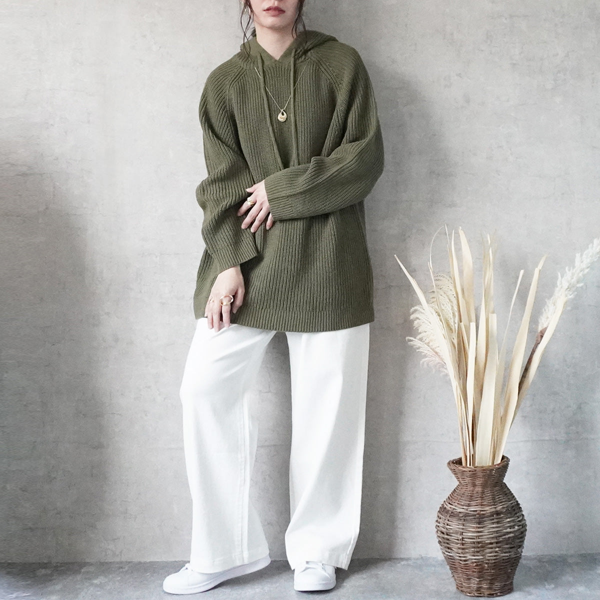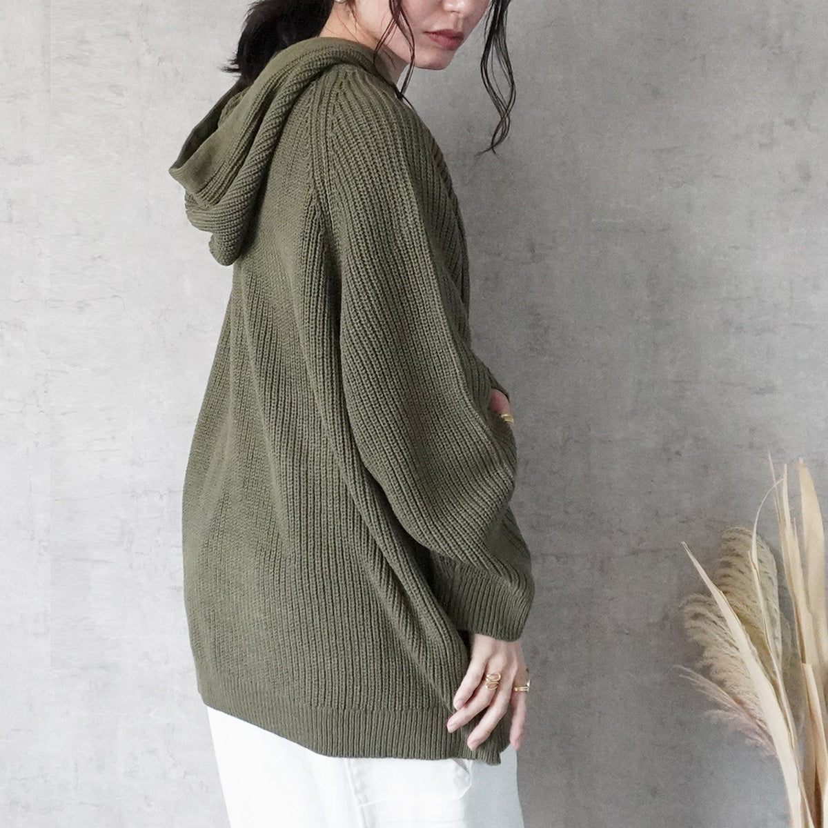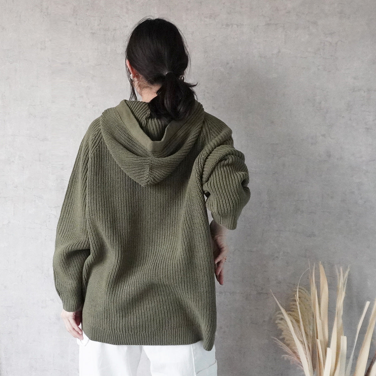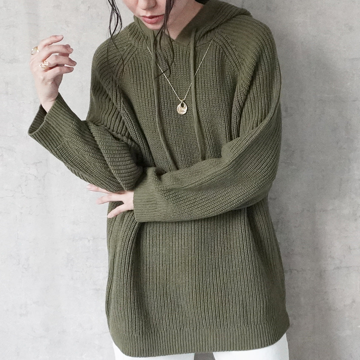 フード付きニットプルオーバー