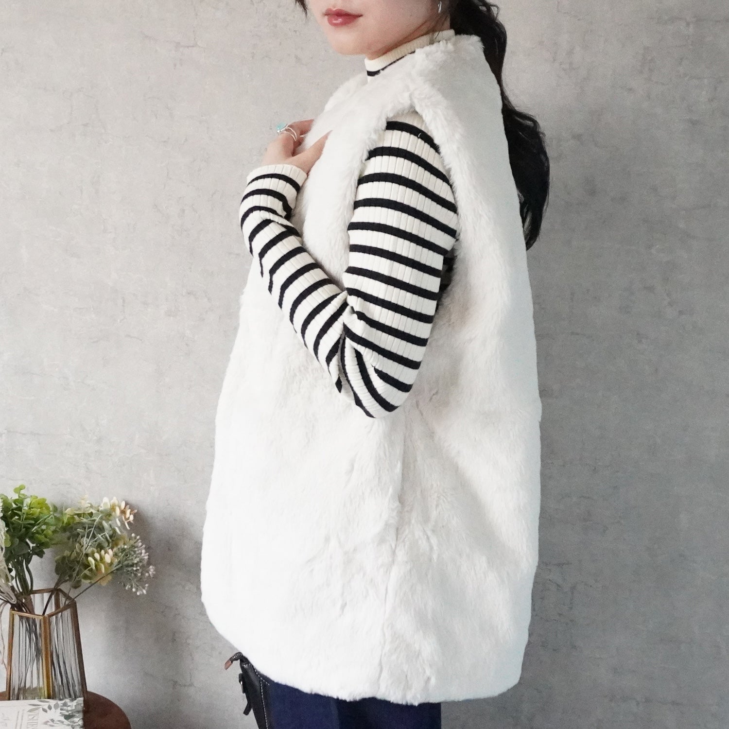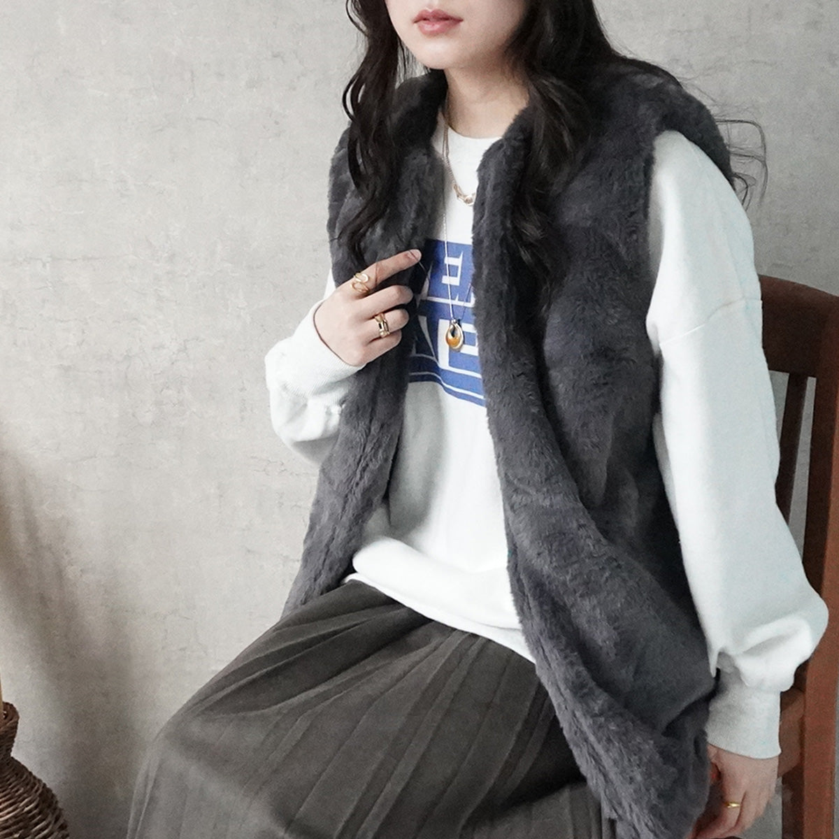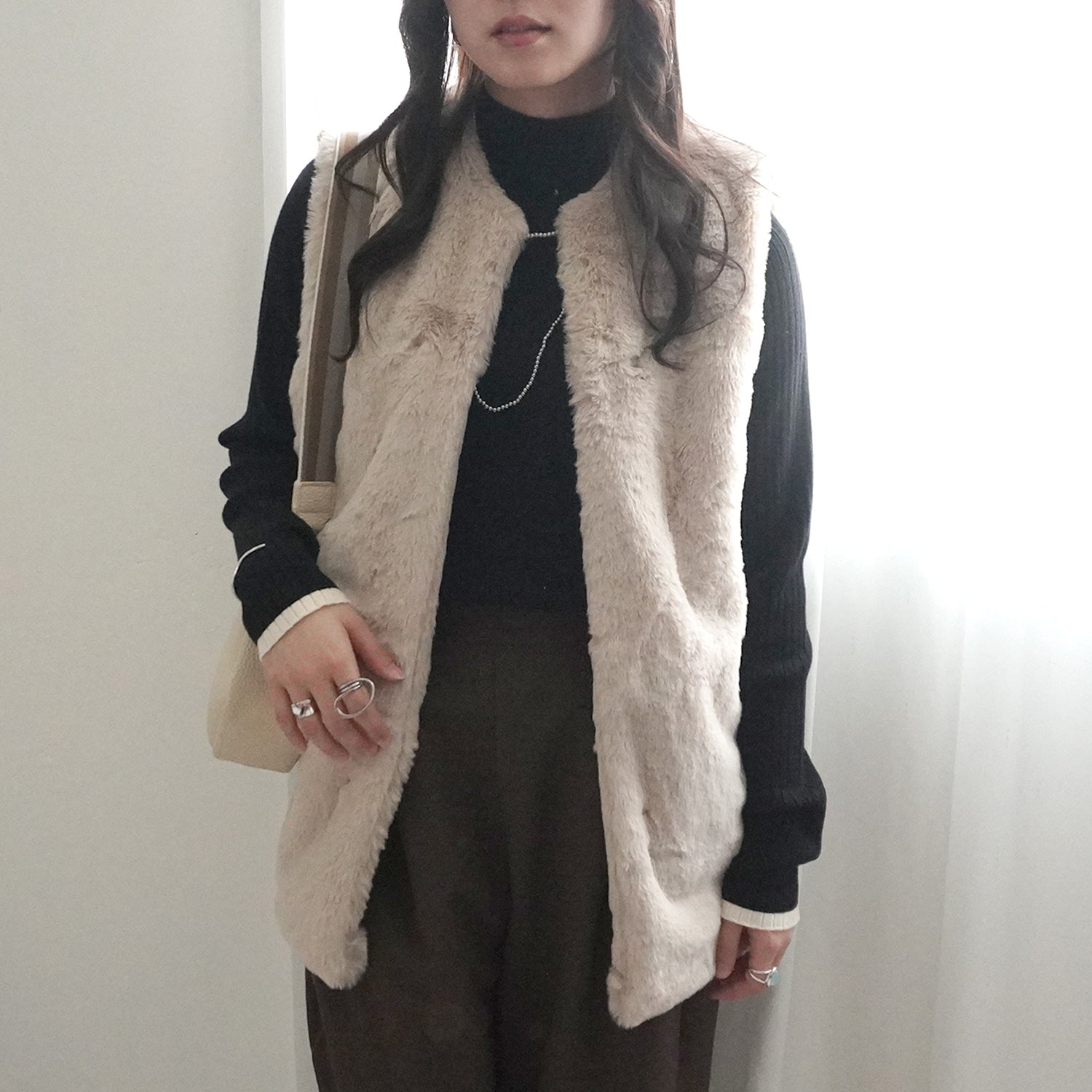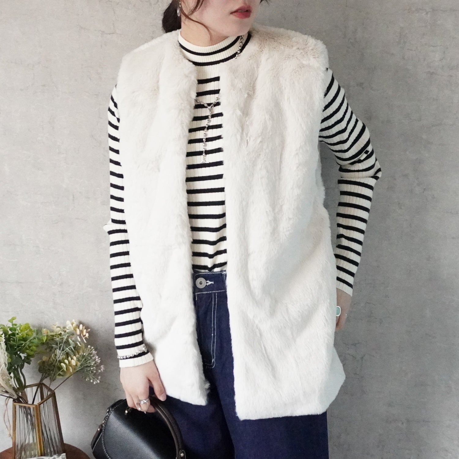 #ファーベスト #ポケット付き #ジレ #マタギベスト #ロングファー #トップス #2025秋冬新作 #ラビット風 #ボアベスト #ファー #ベスト