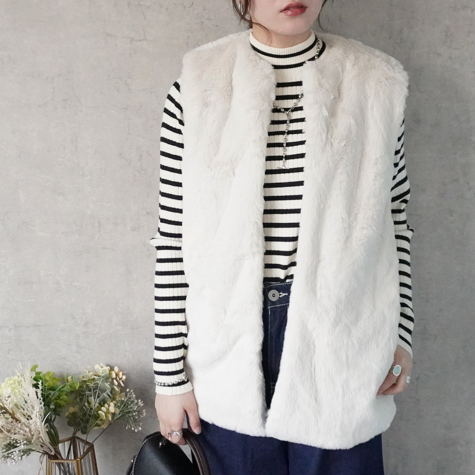 ポケット付きファーベスト