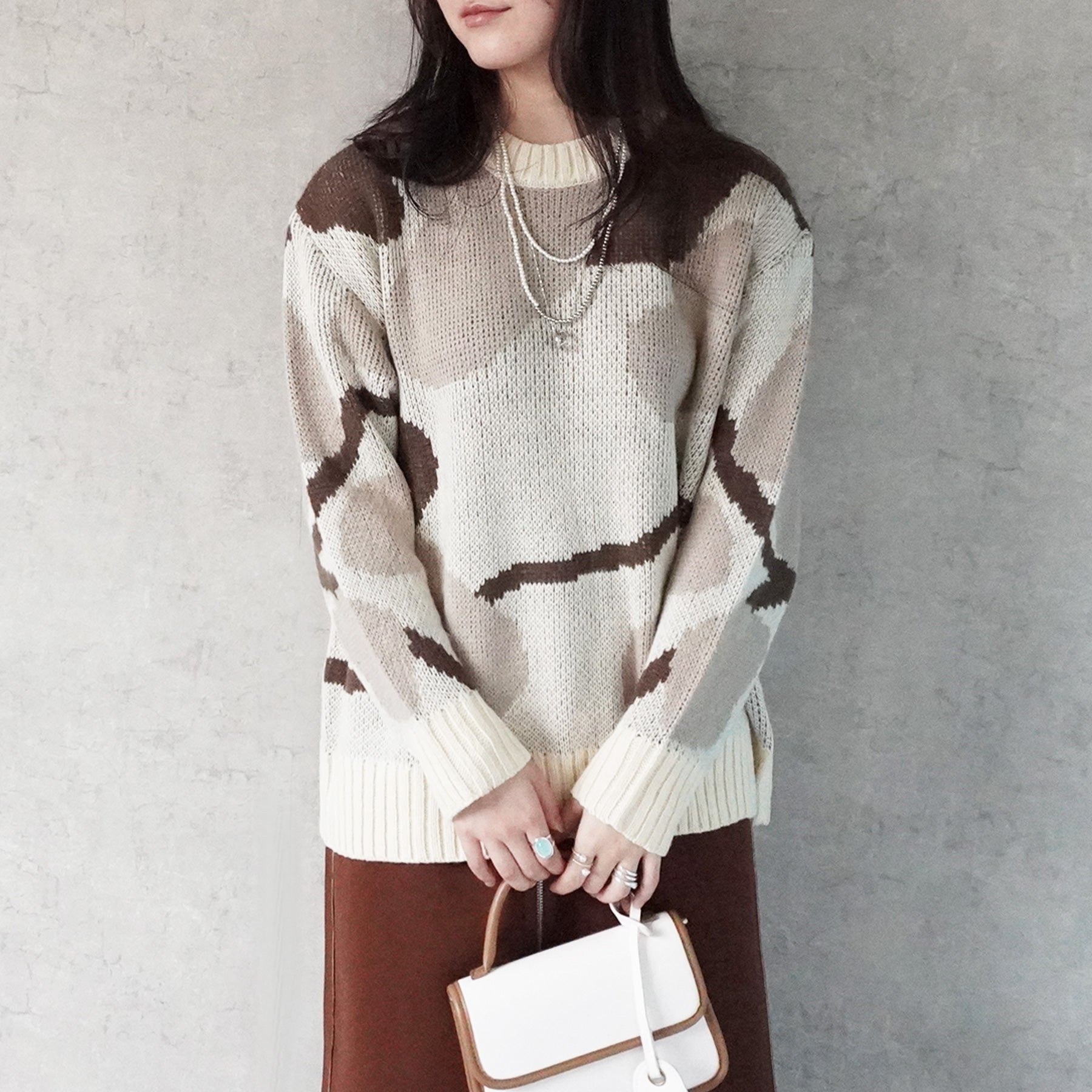 奥行きのある色合いで魅せる、大人のニュアンスニット。