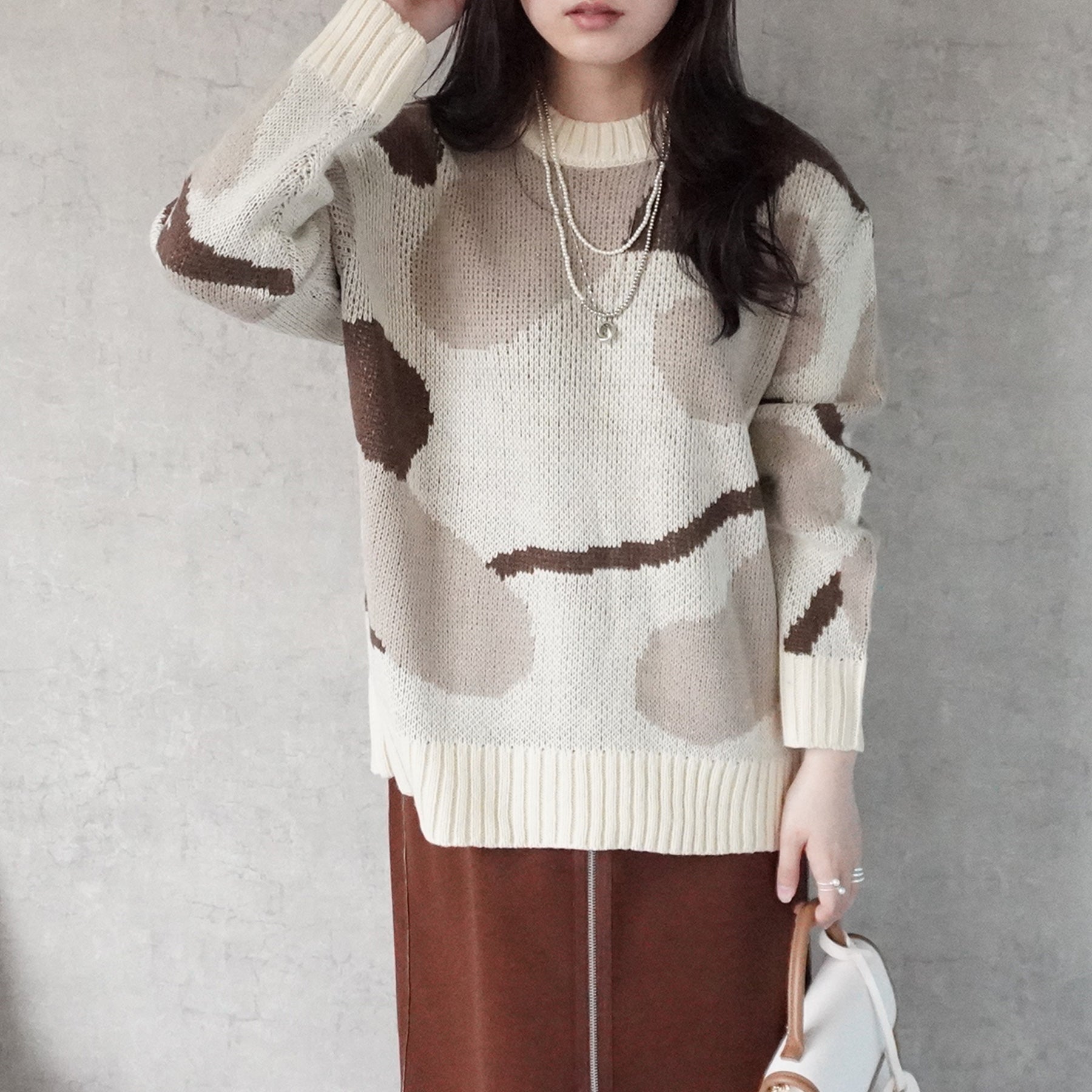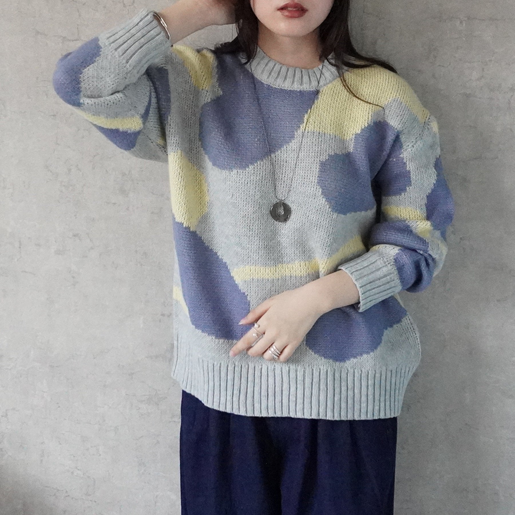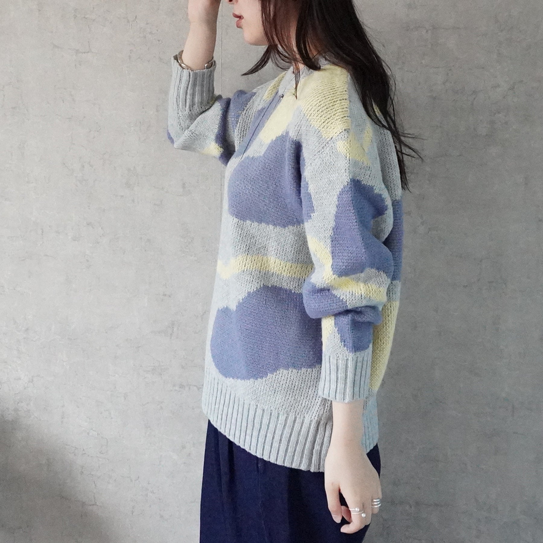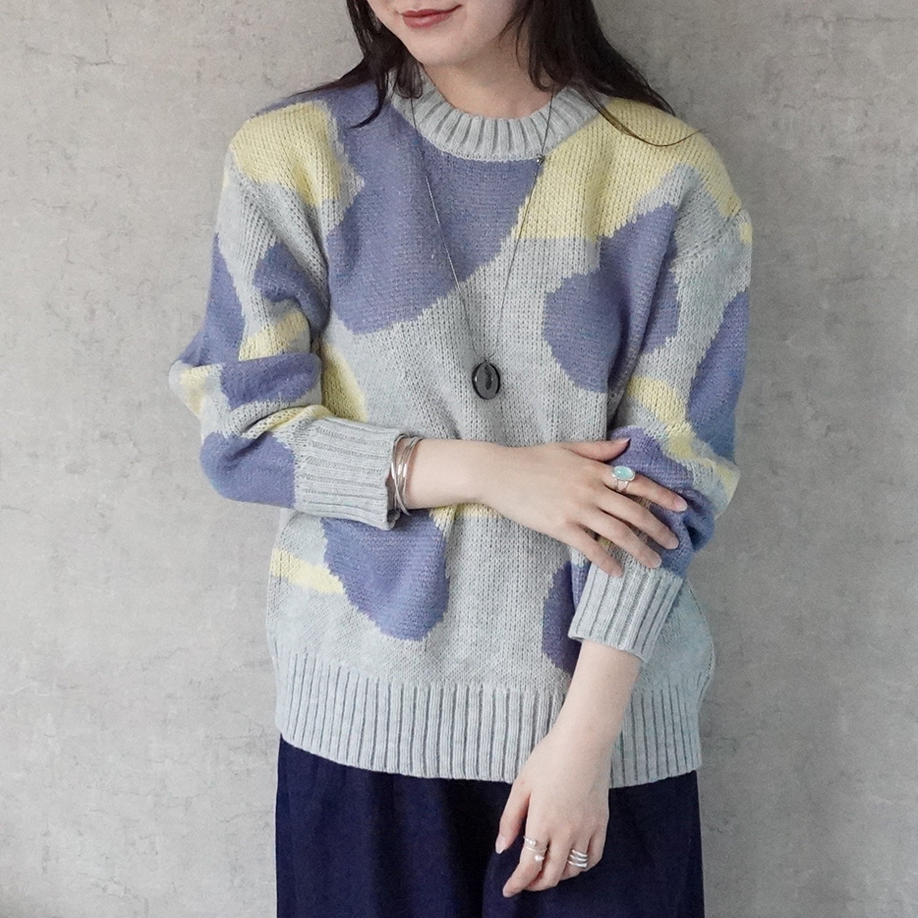 柔らかく混ざり合うマーブルカラーが上品な表情を生み出すニット。