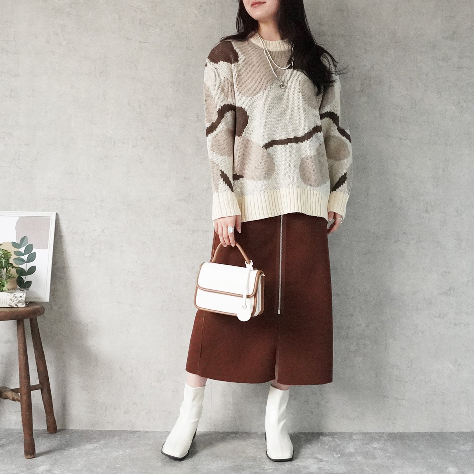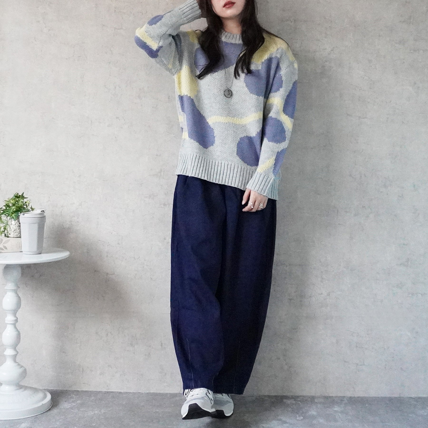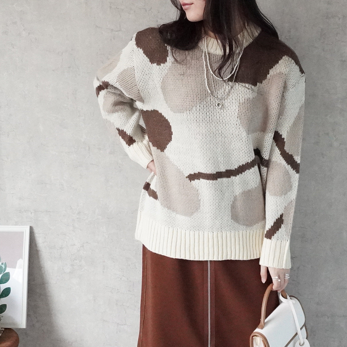 マーブルニュアンスカラーが顔周りを優しく明るく見せてくれて秋冬のコーデも華やかにしてくれる今季一押しの大人カジュアルニットです。