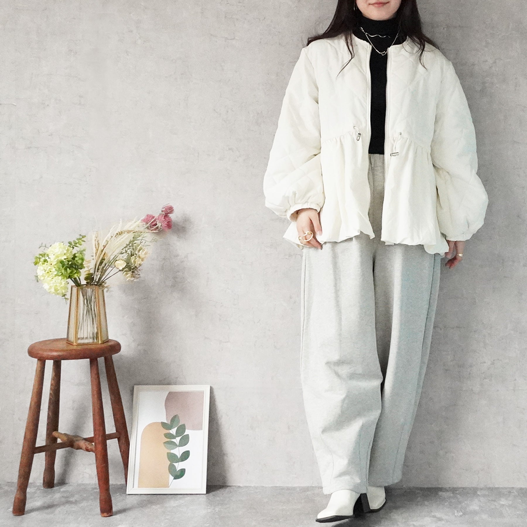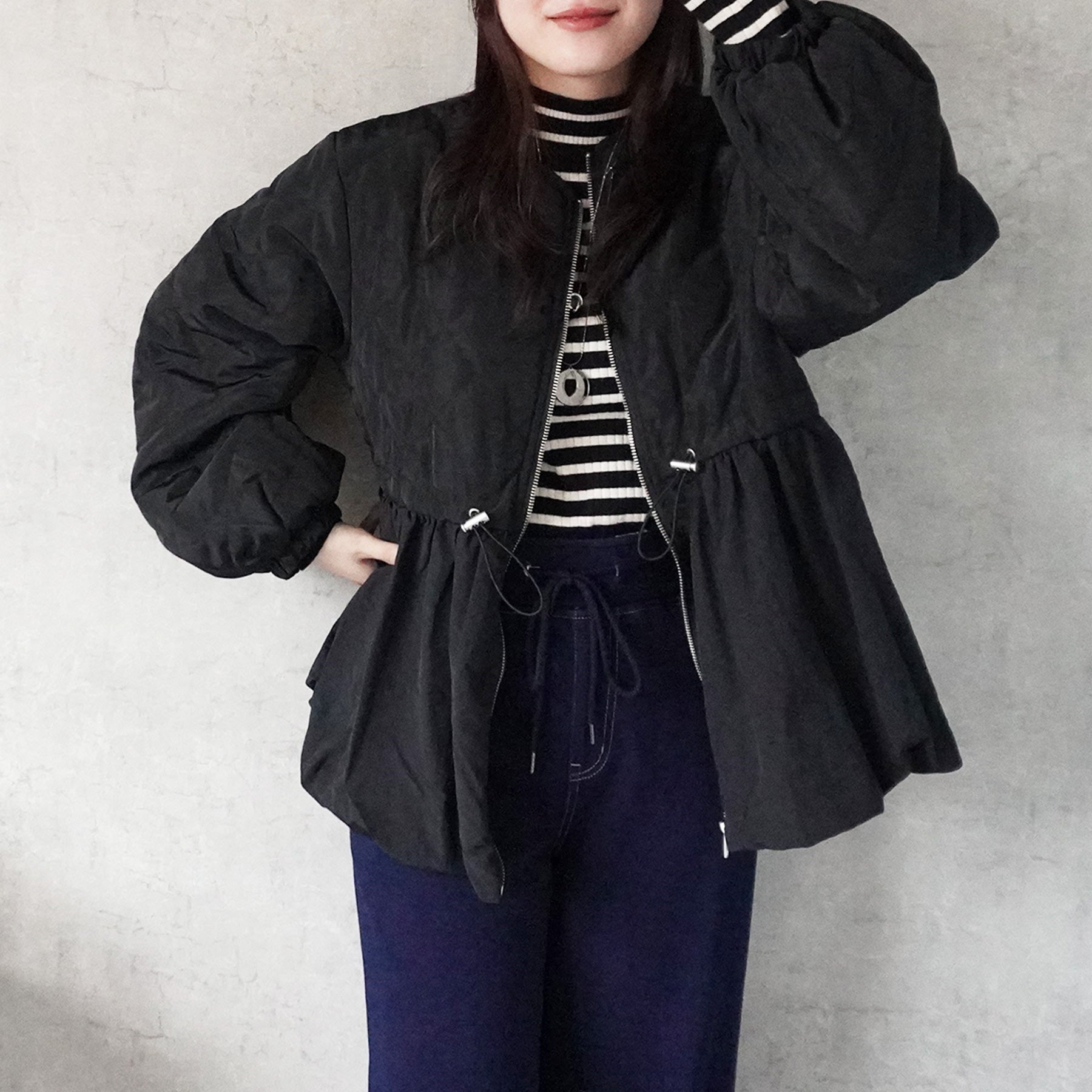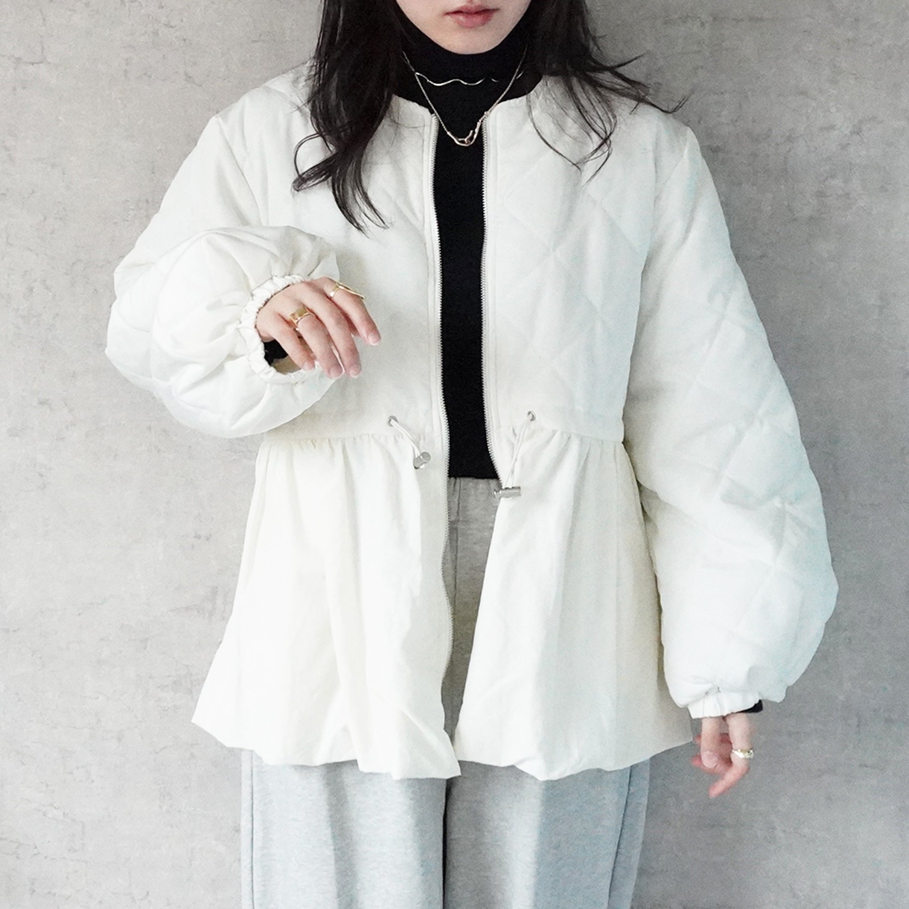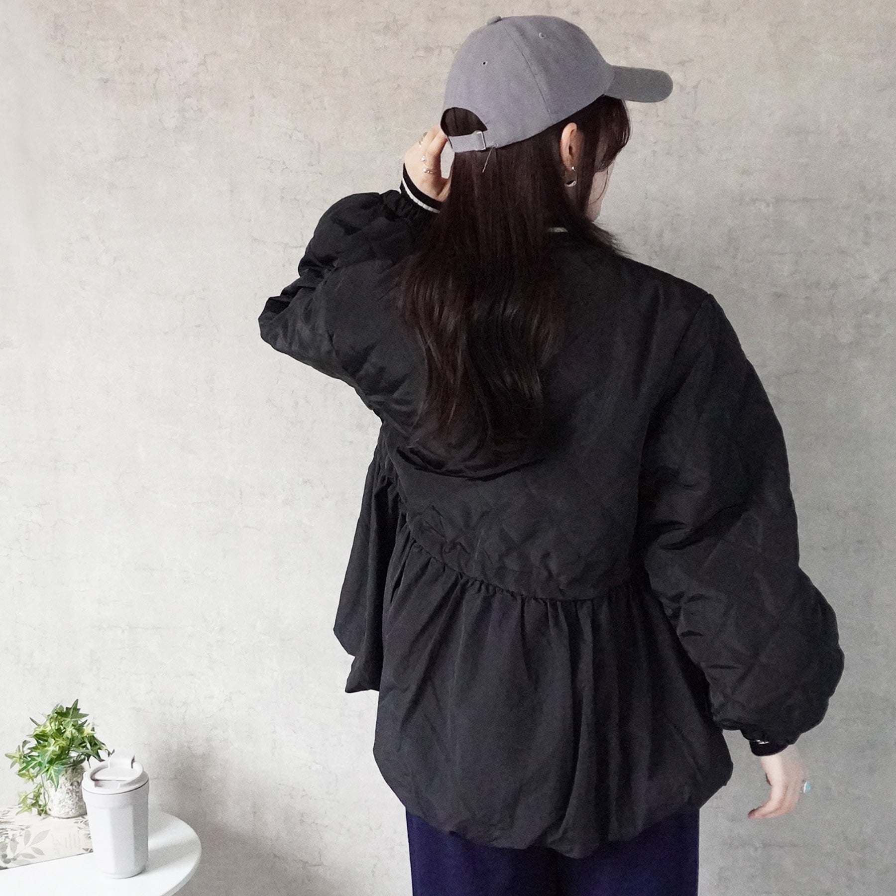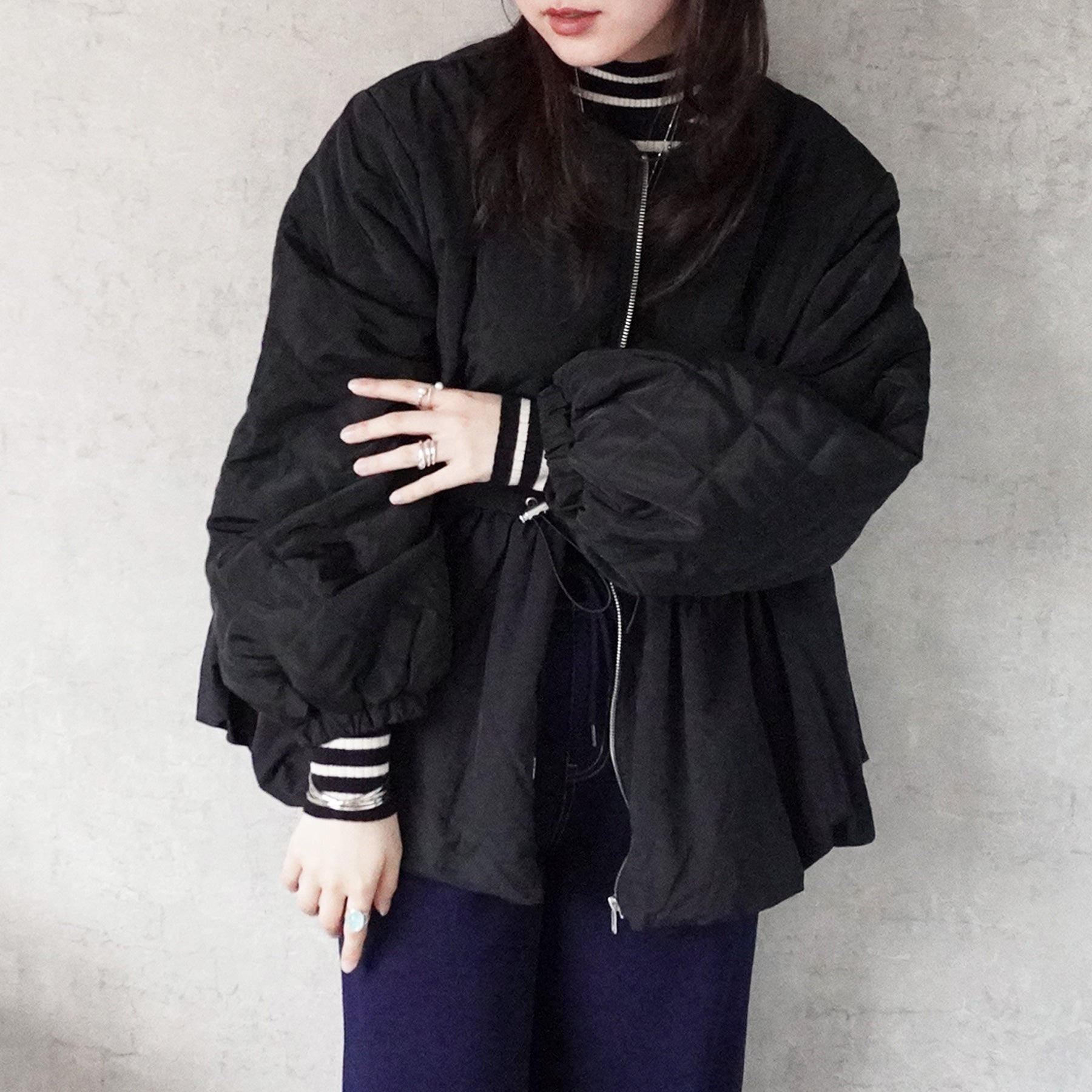 #キルティングペプラムジャケット #BIGスタンド袖コクーン #キルティング #ペプラムデザイン
