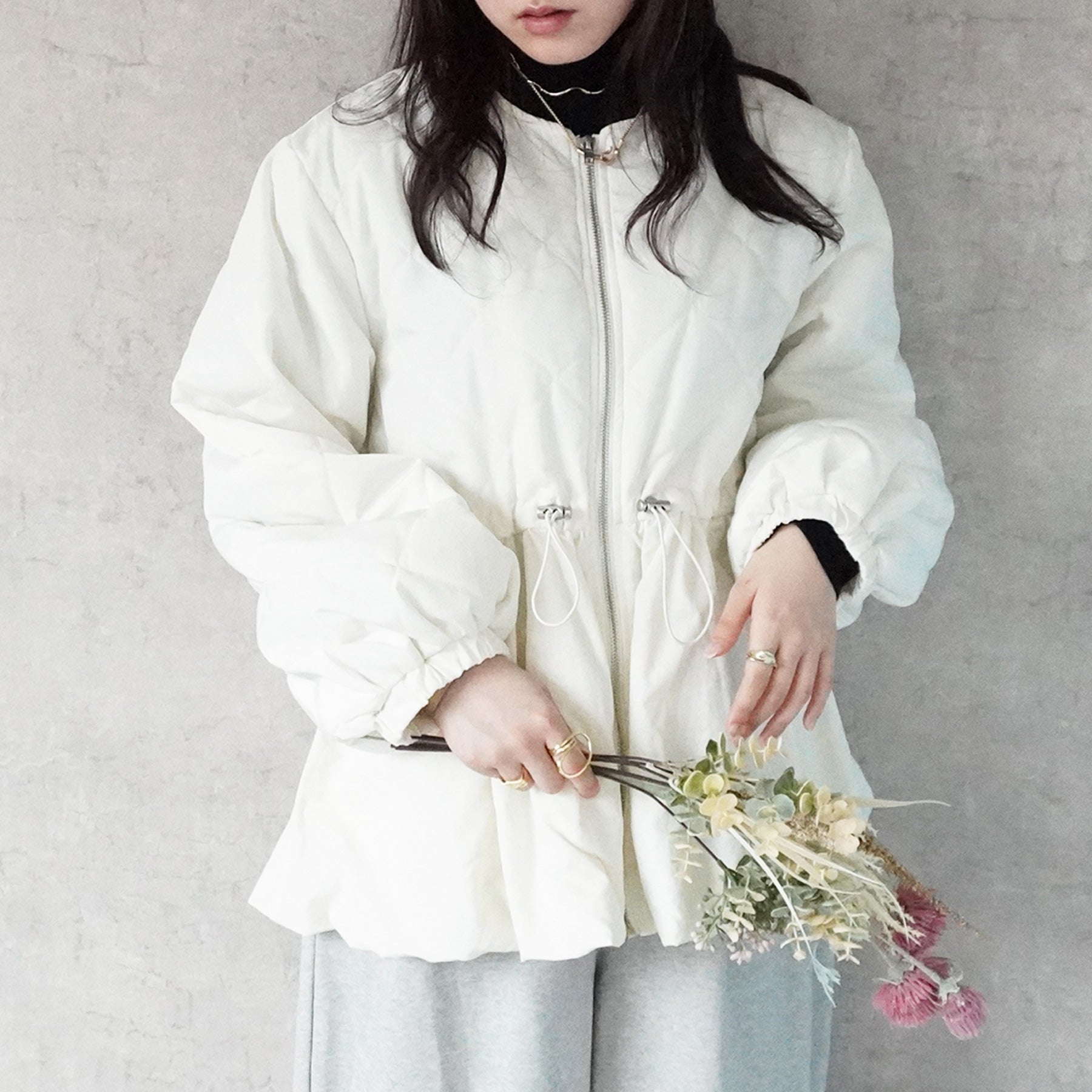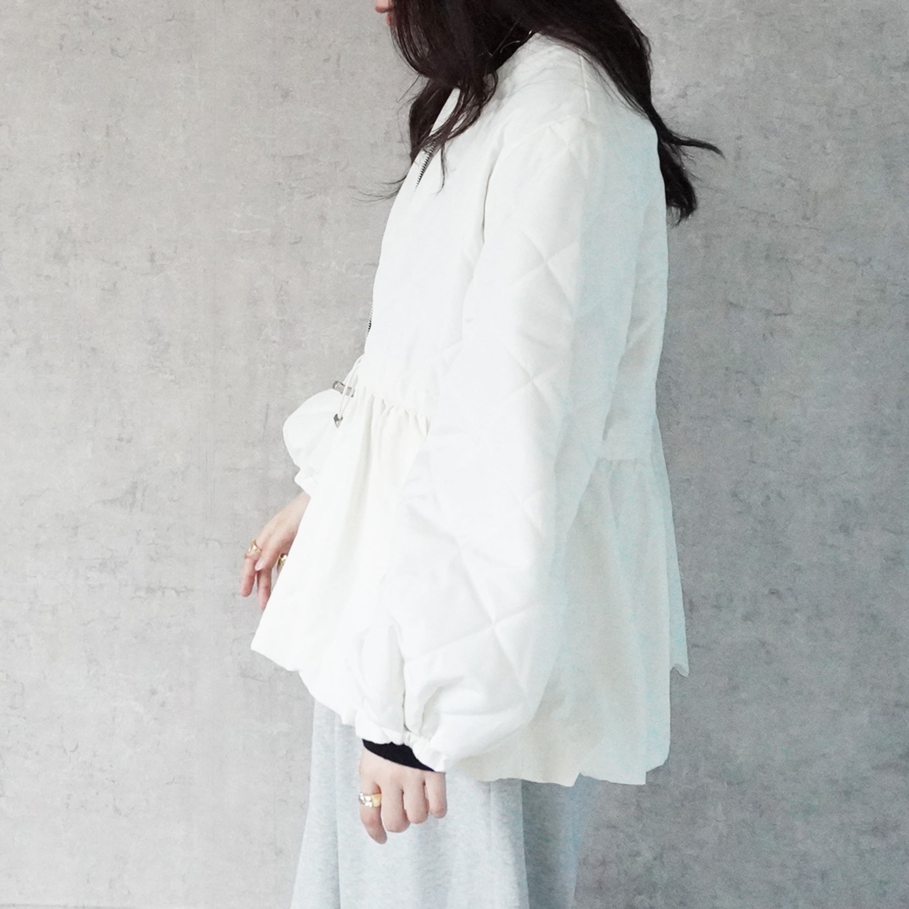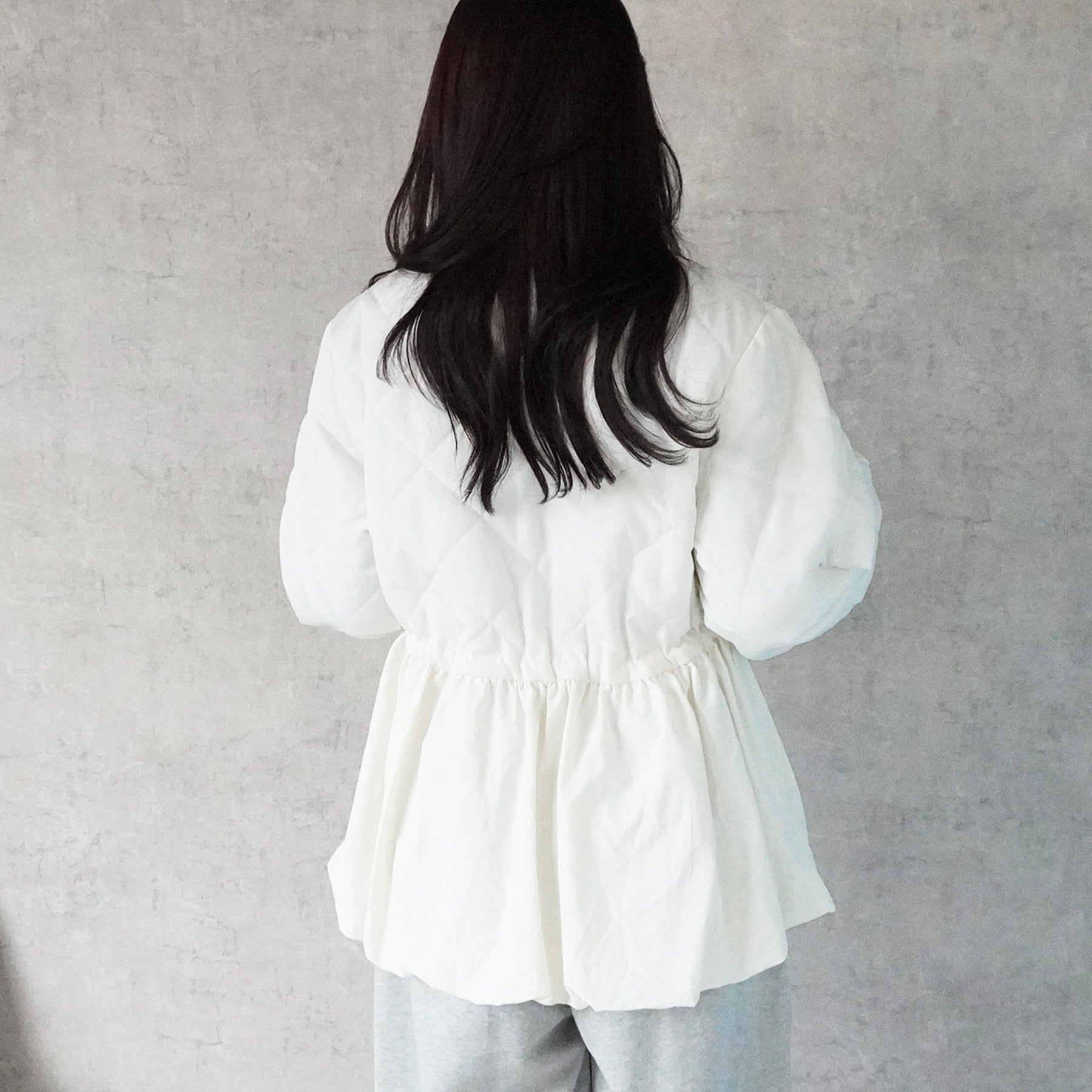 女性らしいシルエットが魅力のキルティングペプラムジャケット。
