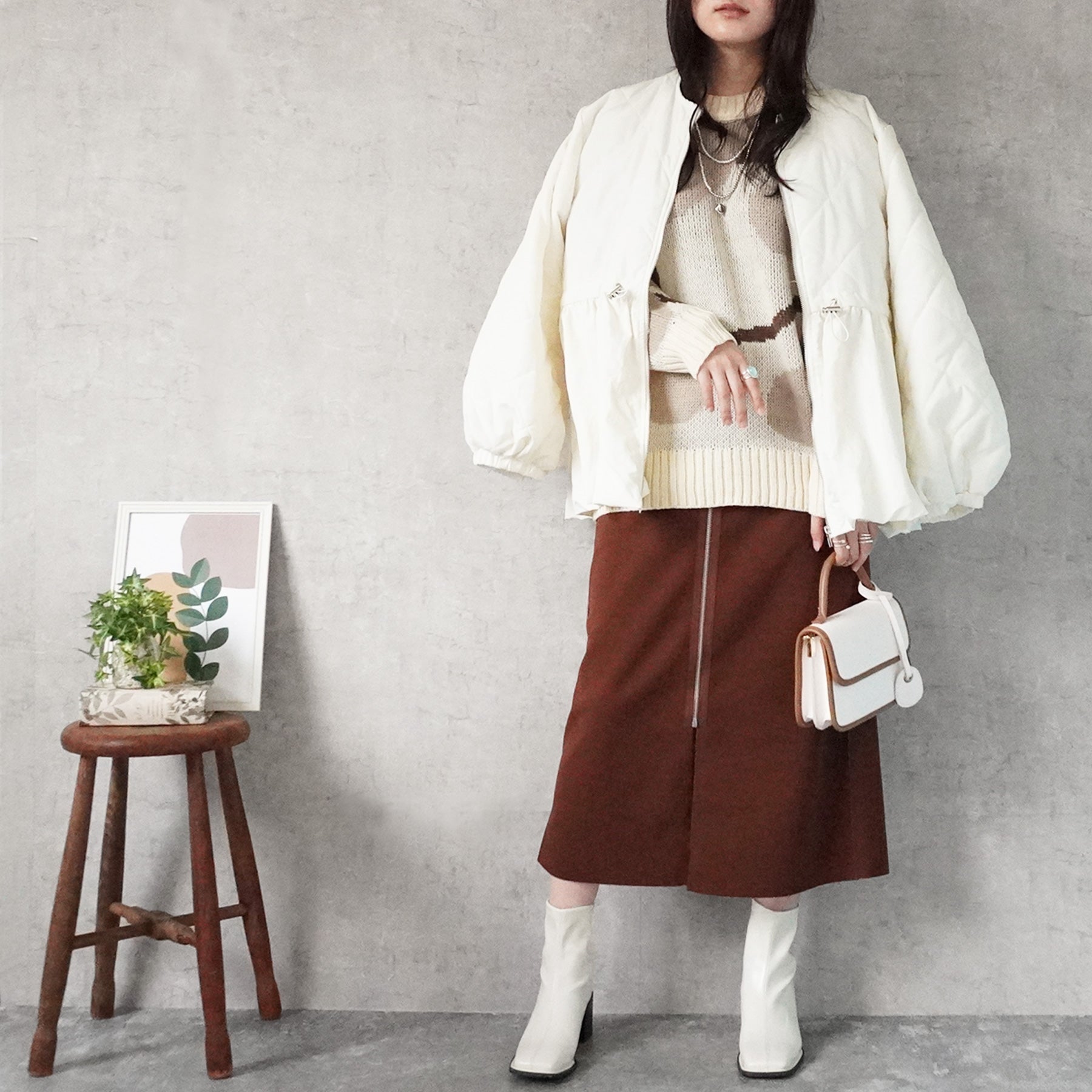 中綿入りでもゴワつかず、すっきりとしたシルエットをキープ。