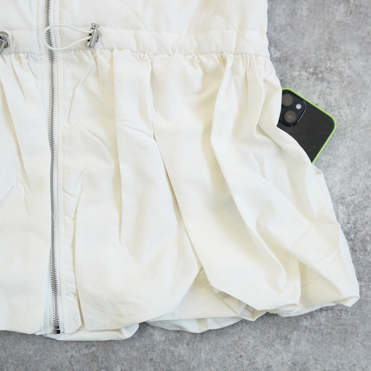 軽やかな中綿入りで暖かさをキープしながら、ドロスト付きで