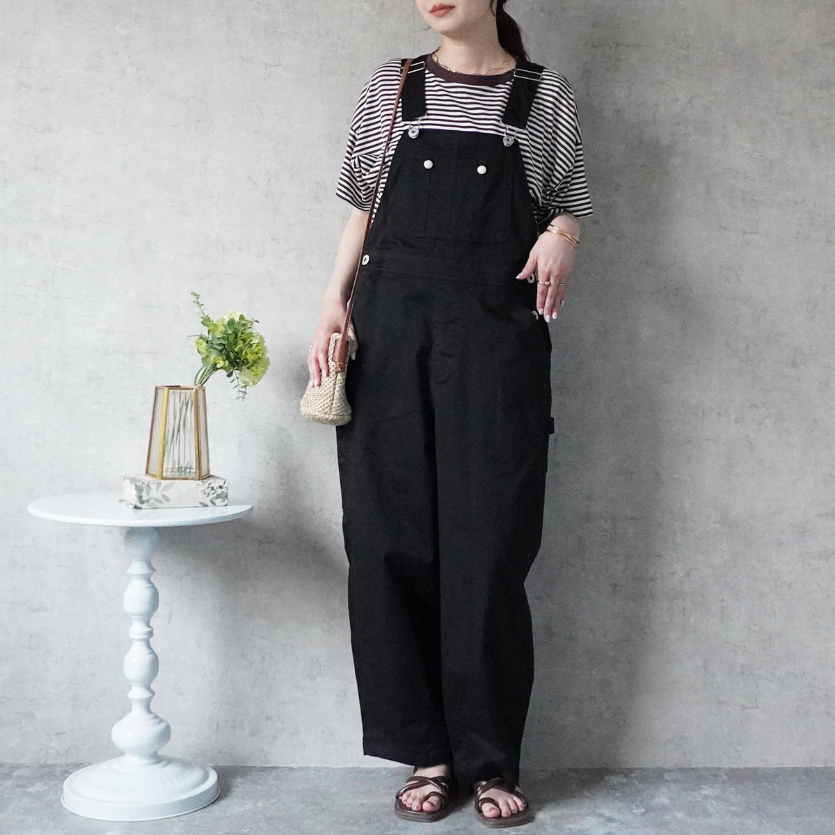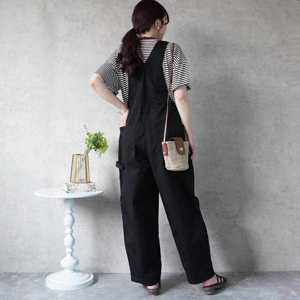 【S/M/L/LL】ウエスト【81/84/87/90】ヒップ【111/114/117/120】渡り幅【29/40/41/42】前股ぐり【35.5/36/36.5/37】後ろ股ぐり【45.5/46/46.5/47】胸当て(上幅)【20/21/22/23】胸当て(丈)【25.5/26.5/27.5/28】背当て(丈)【24/25/25/26】裾幅【50.3/51/51.7/52.7】肩紐最長丈【46.5/46.5/46.5/46.5】股下【63/63/63/63/63/63