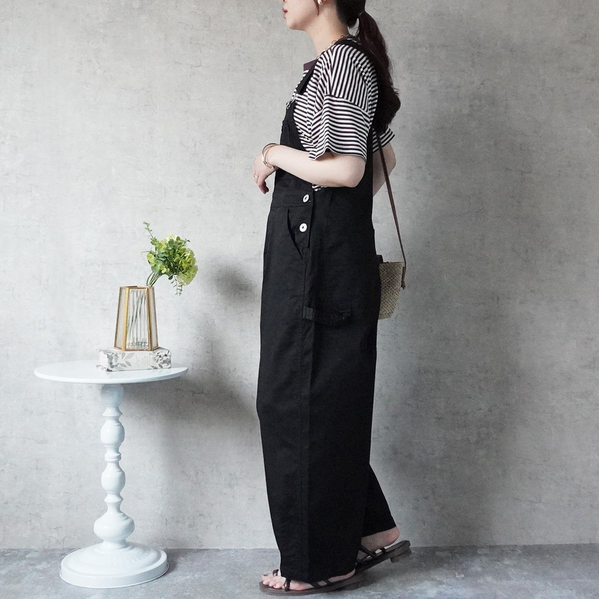 ■仕様:調節可能肩紐、フロントポケット、脇ボタン2個×2個、脇ポケット×2個、後ろポケット×2個、左ひざサイドポケット有