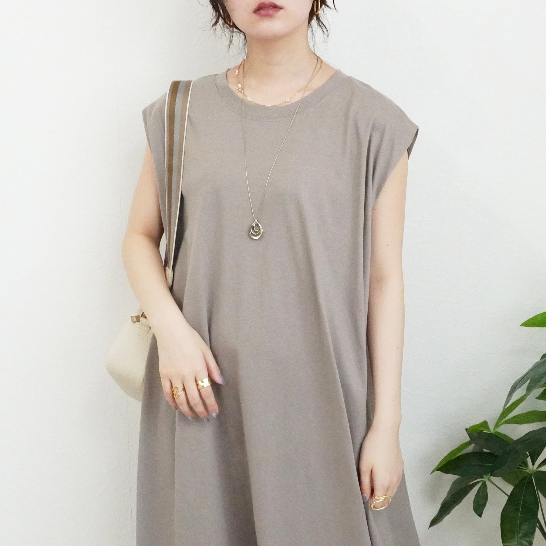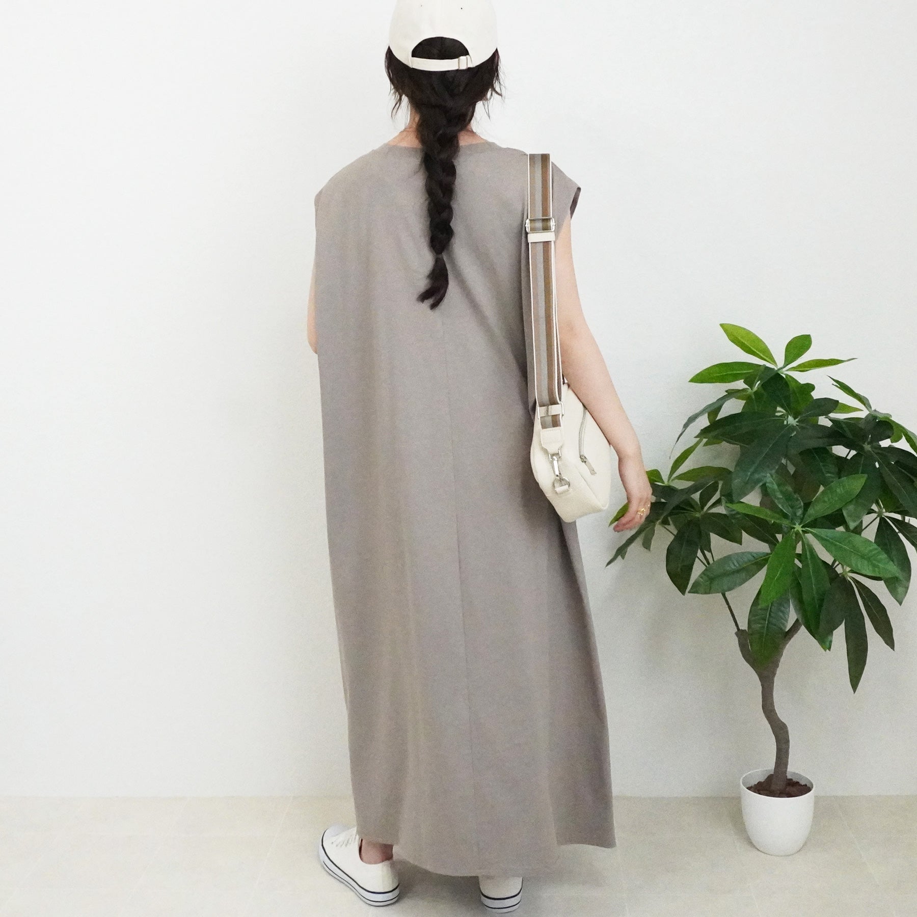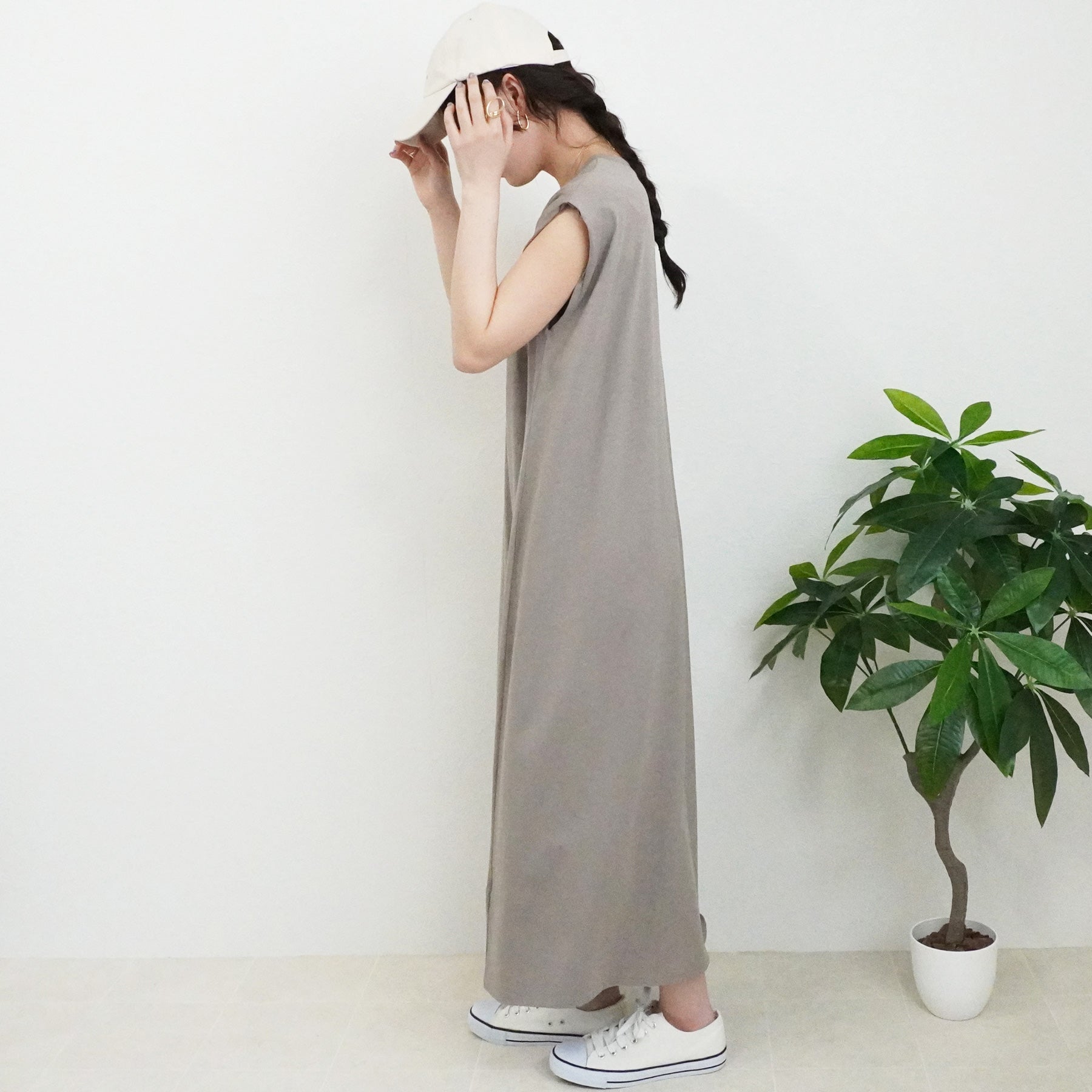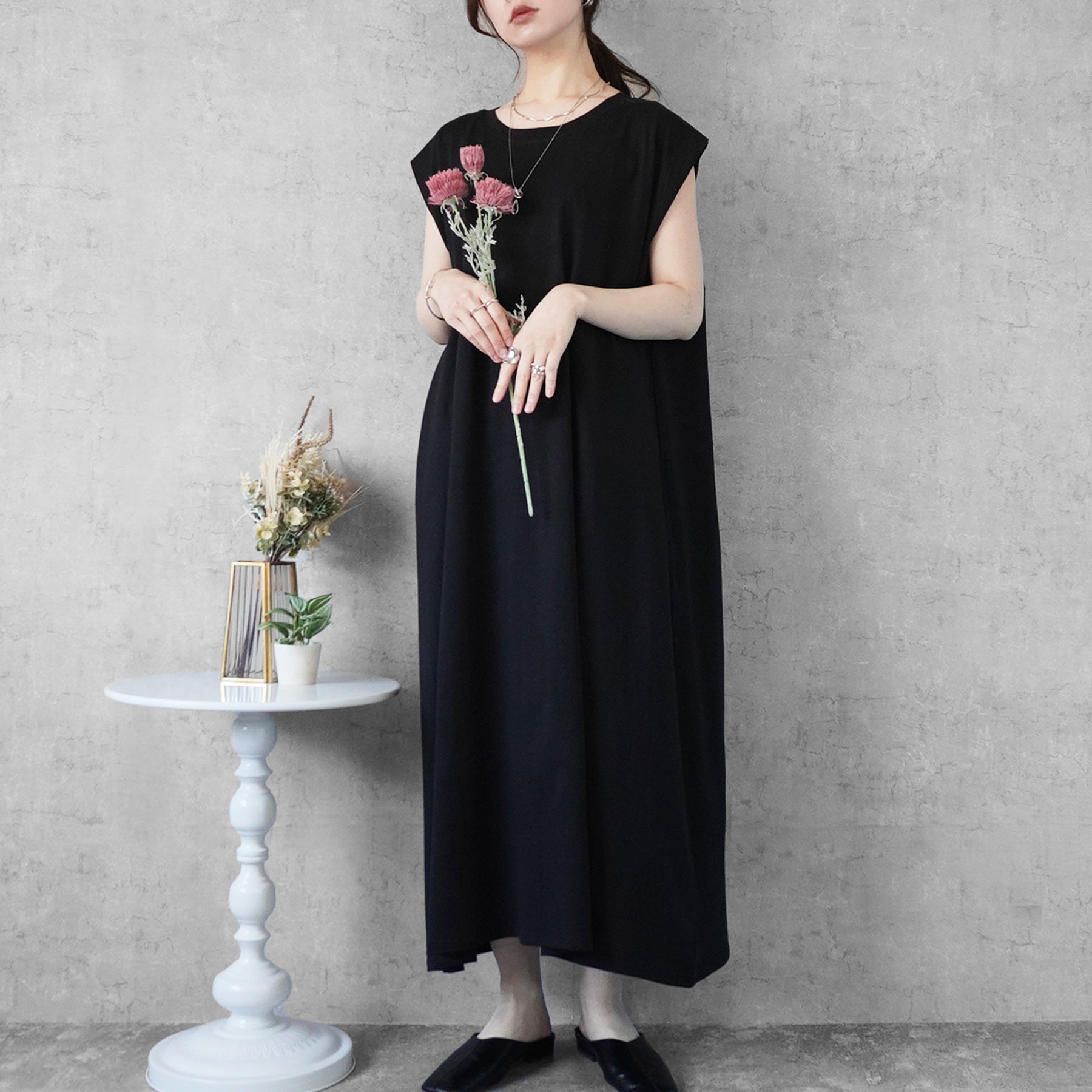 天竺ノースリーブロングワンピース