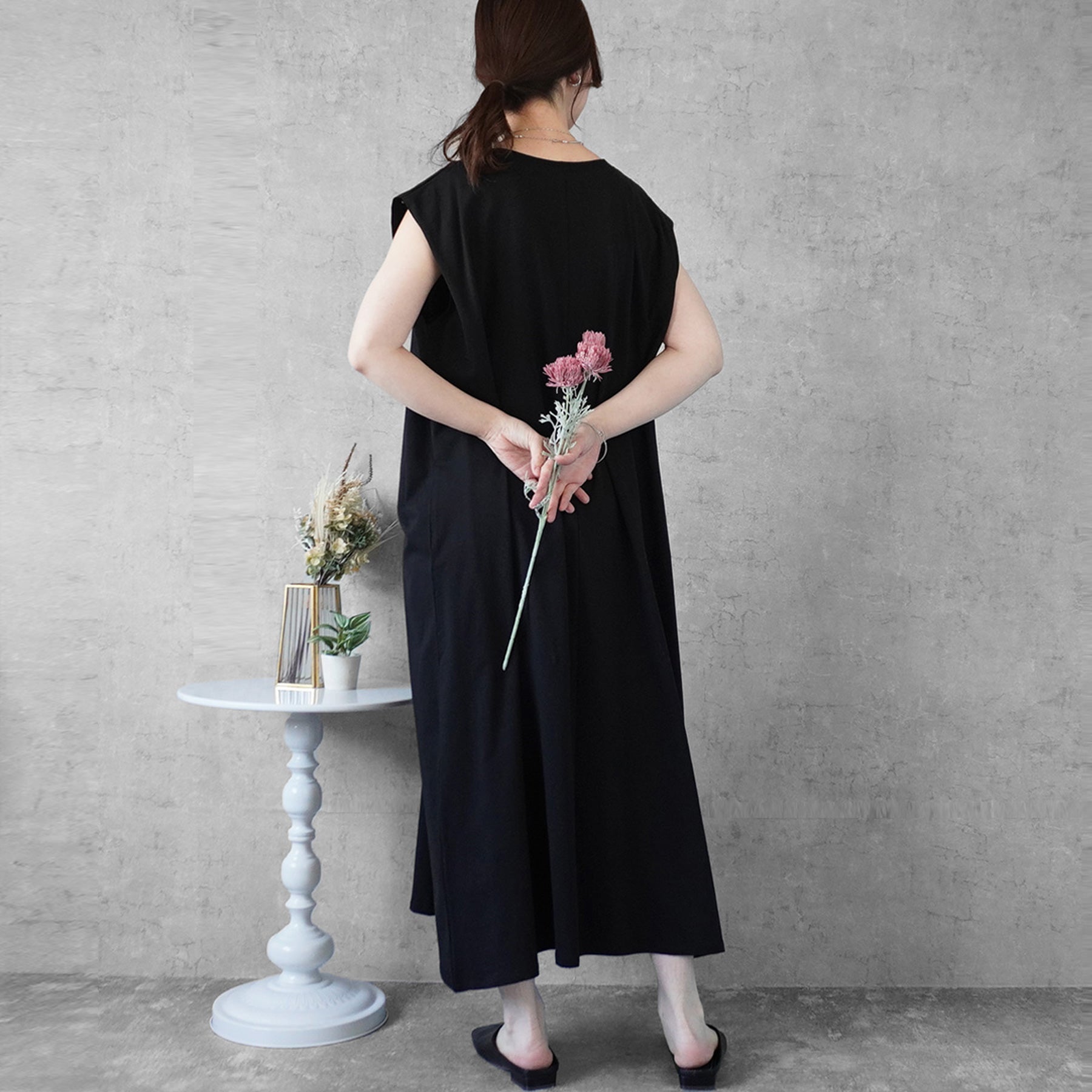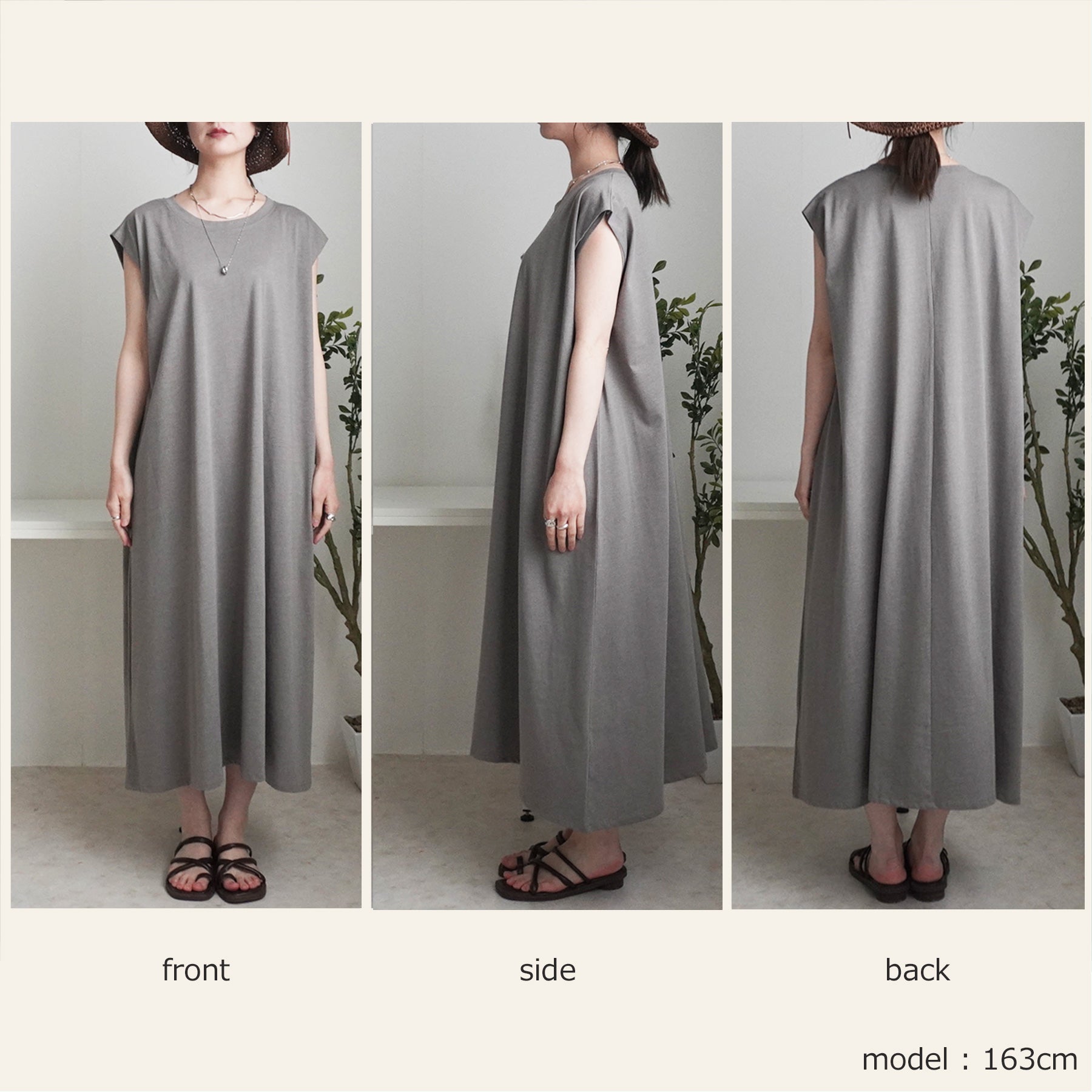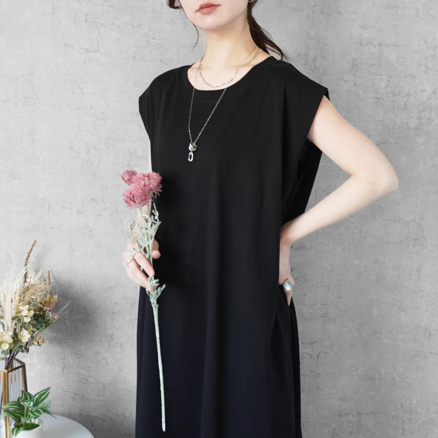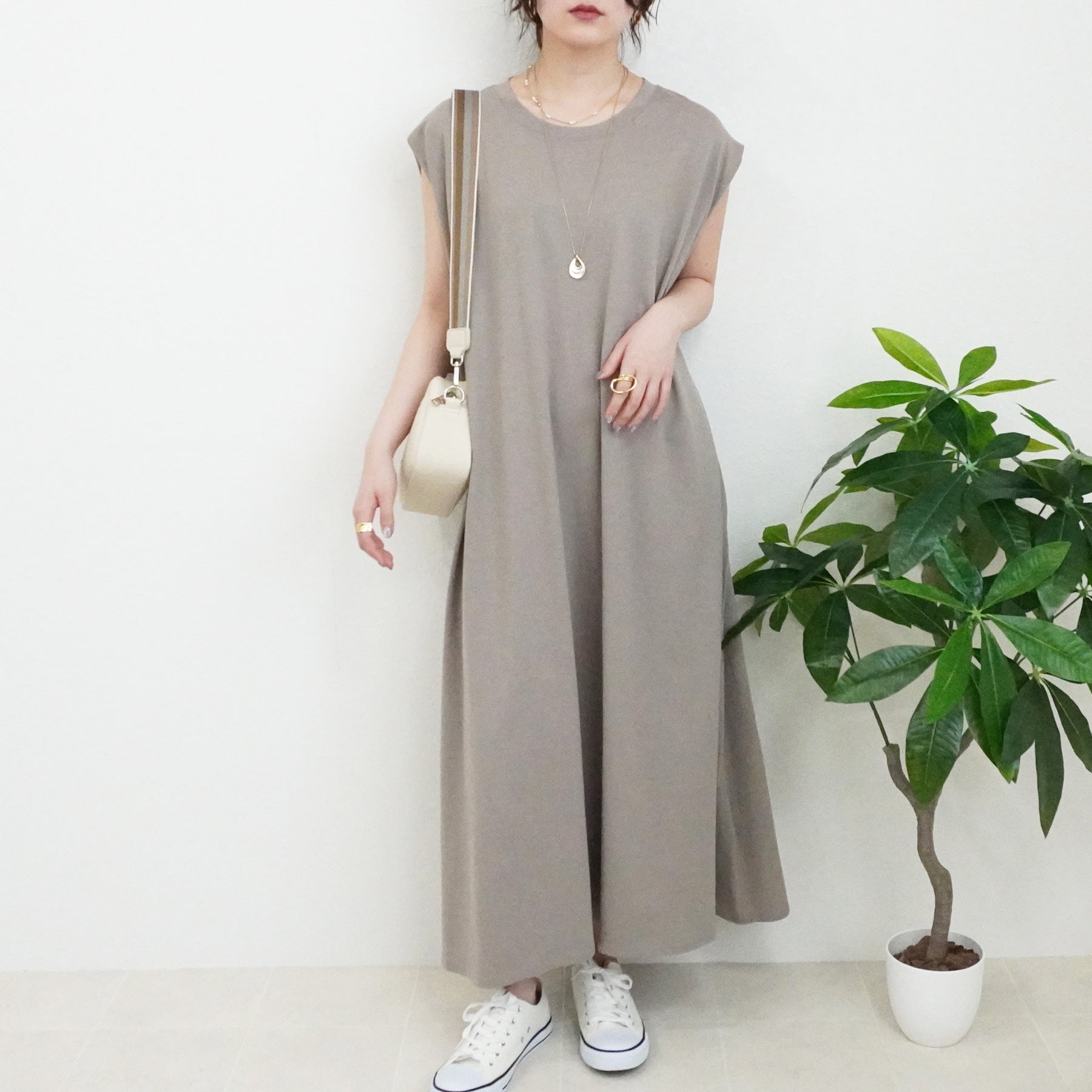 天竺ノースリーブロングワンピース