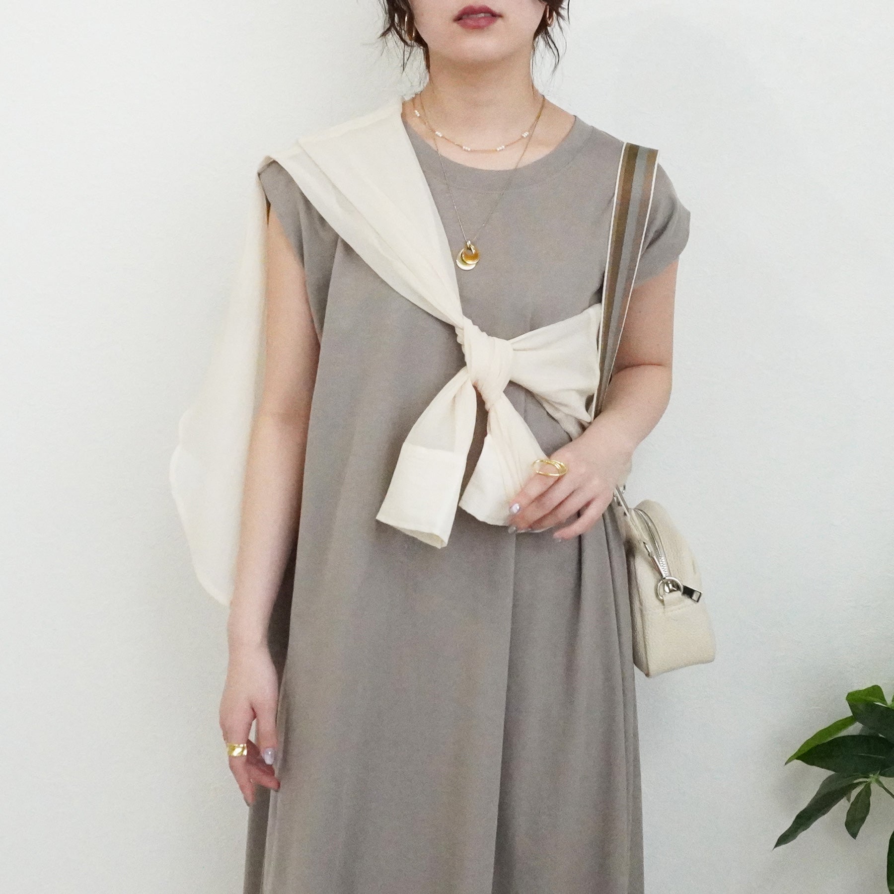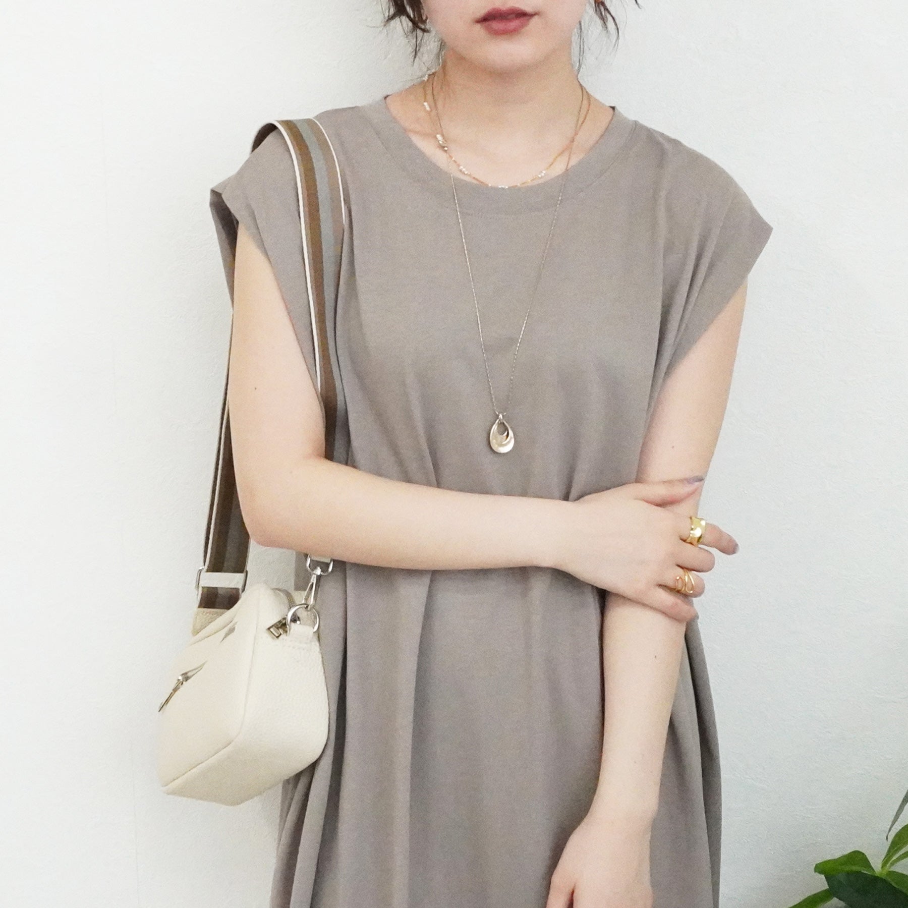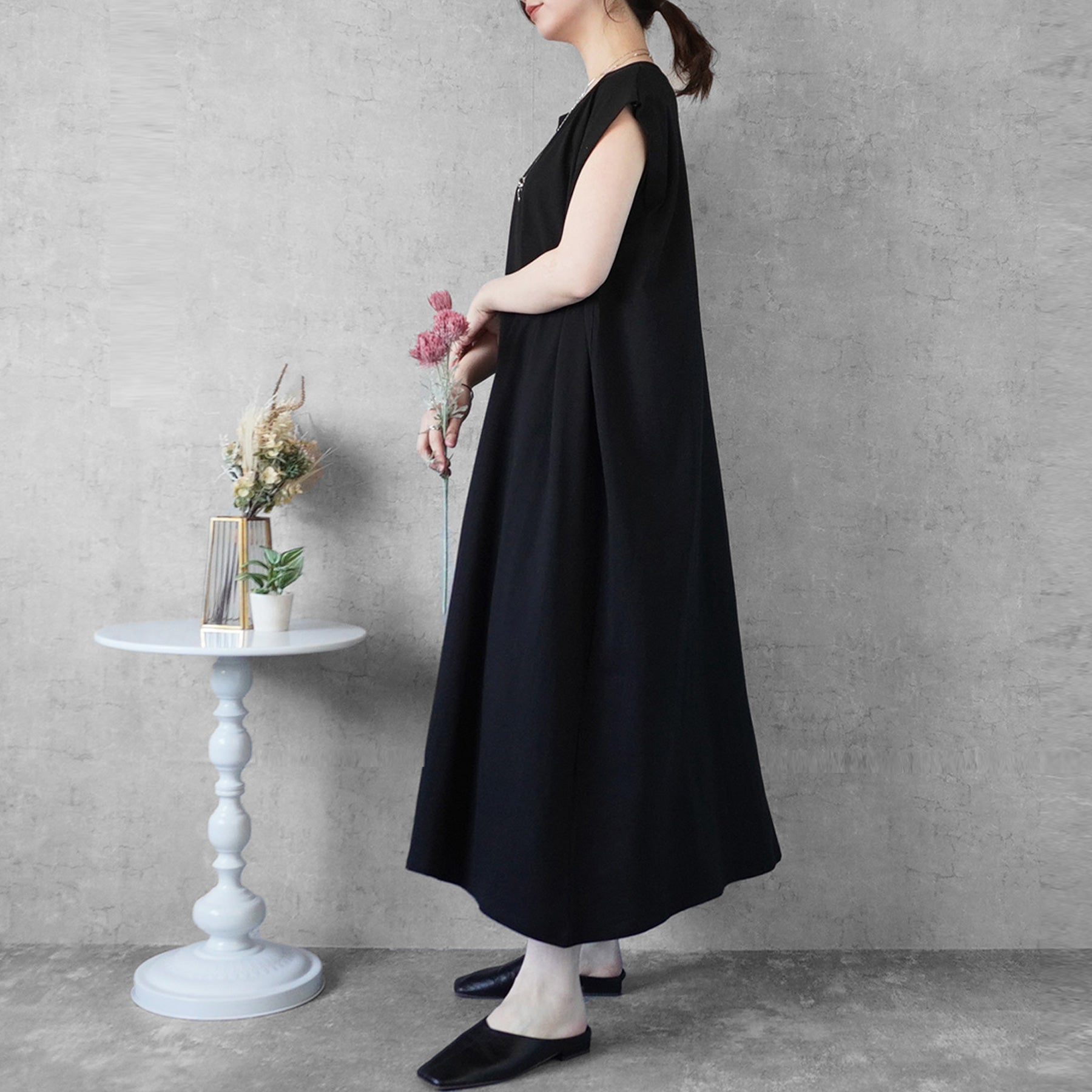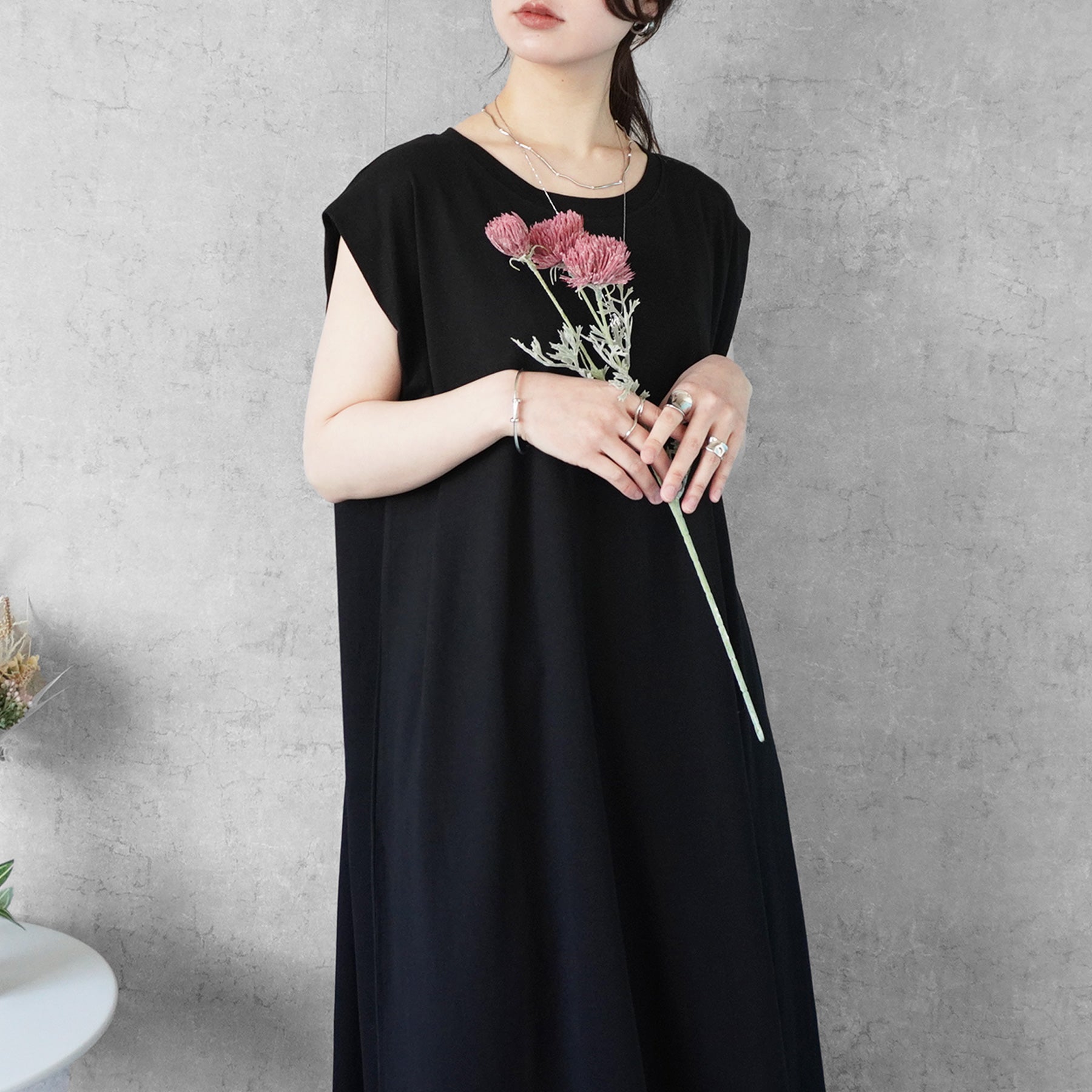 天竺ノースリーブロングワンピース