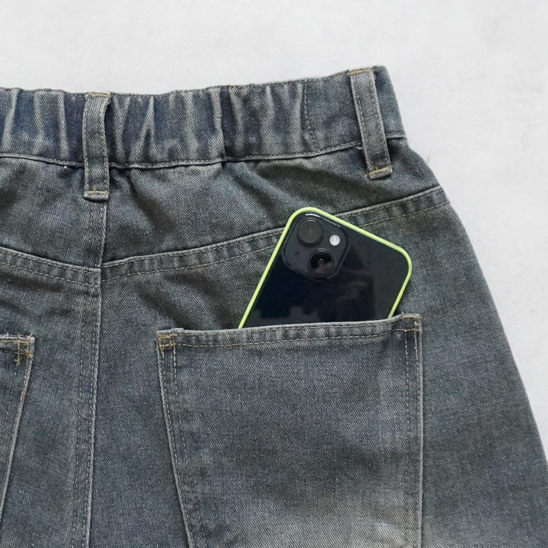 ウエスト後ろゴム仕様、ベルトループ有り