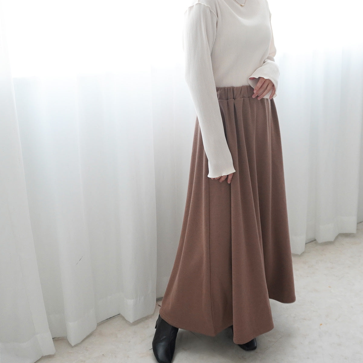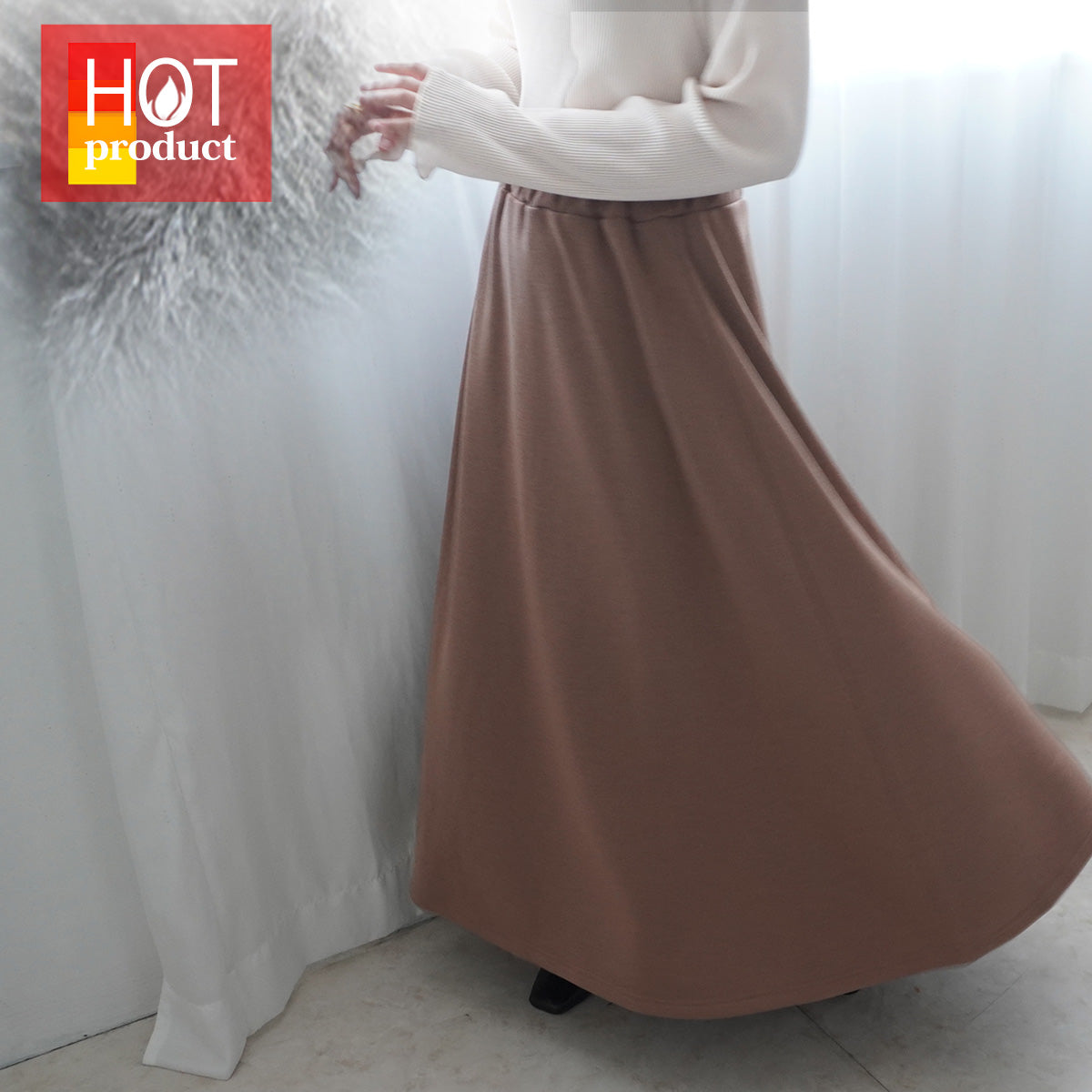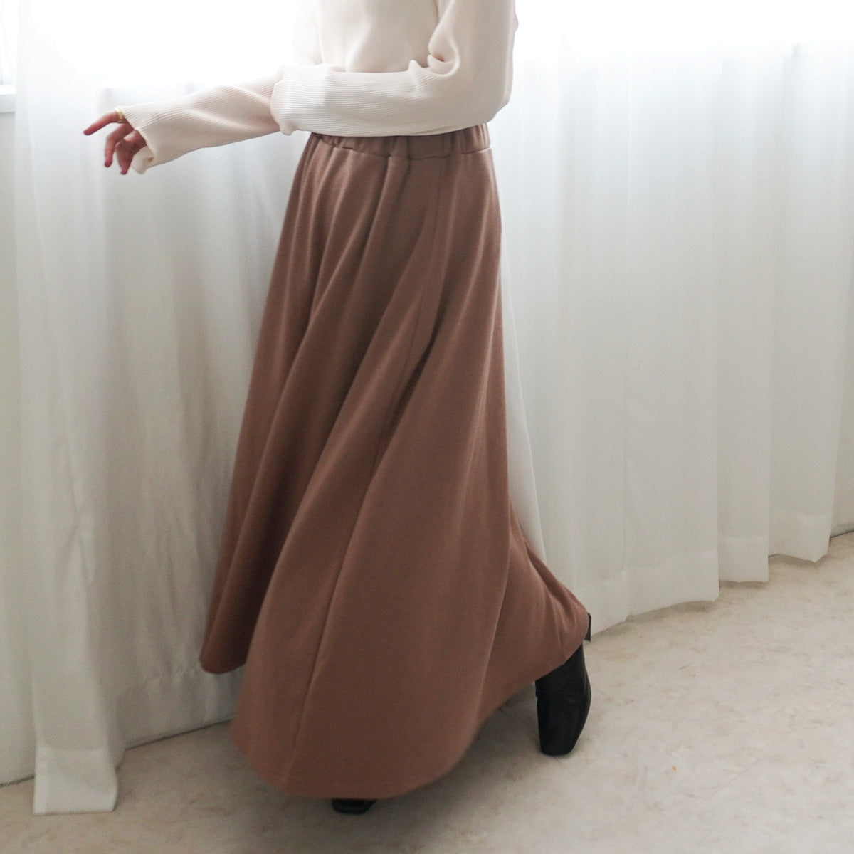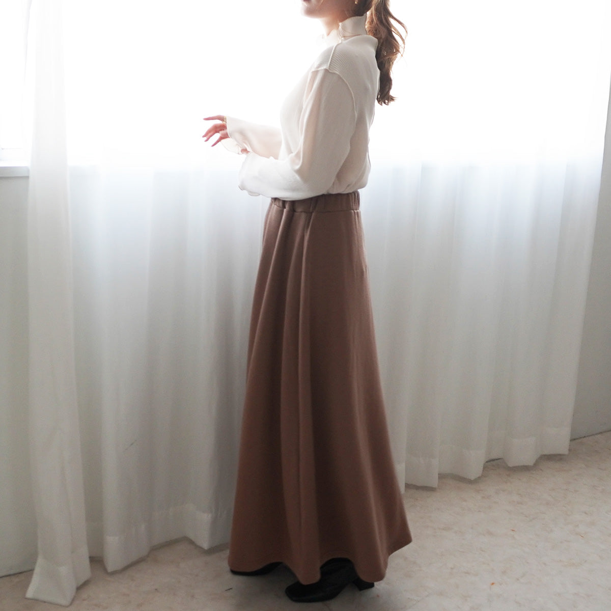 裏シャギーアルガンオイル加工スカート総丈90cm