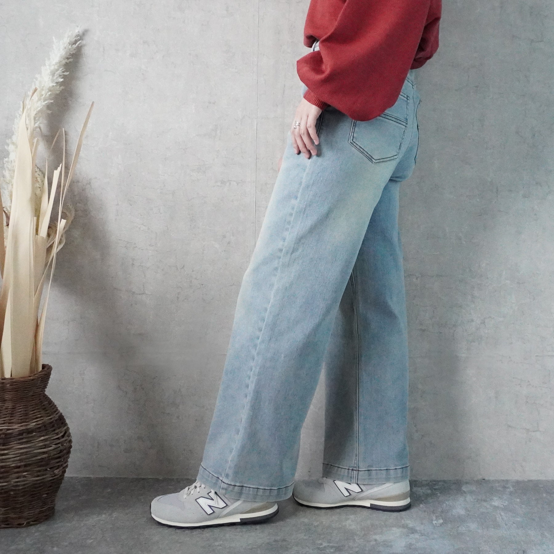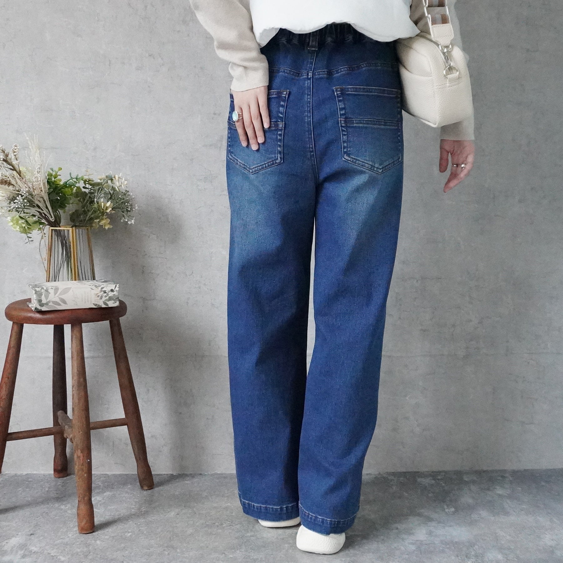 ■仕様:ウエスト後ろゴム、前開きファスナー(ボタン×1個)、脇ポケット×2個、後ろポケット×2個、ベルトループ有