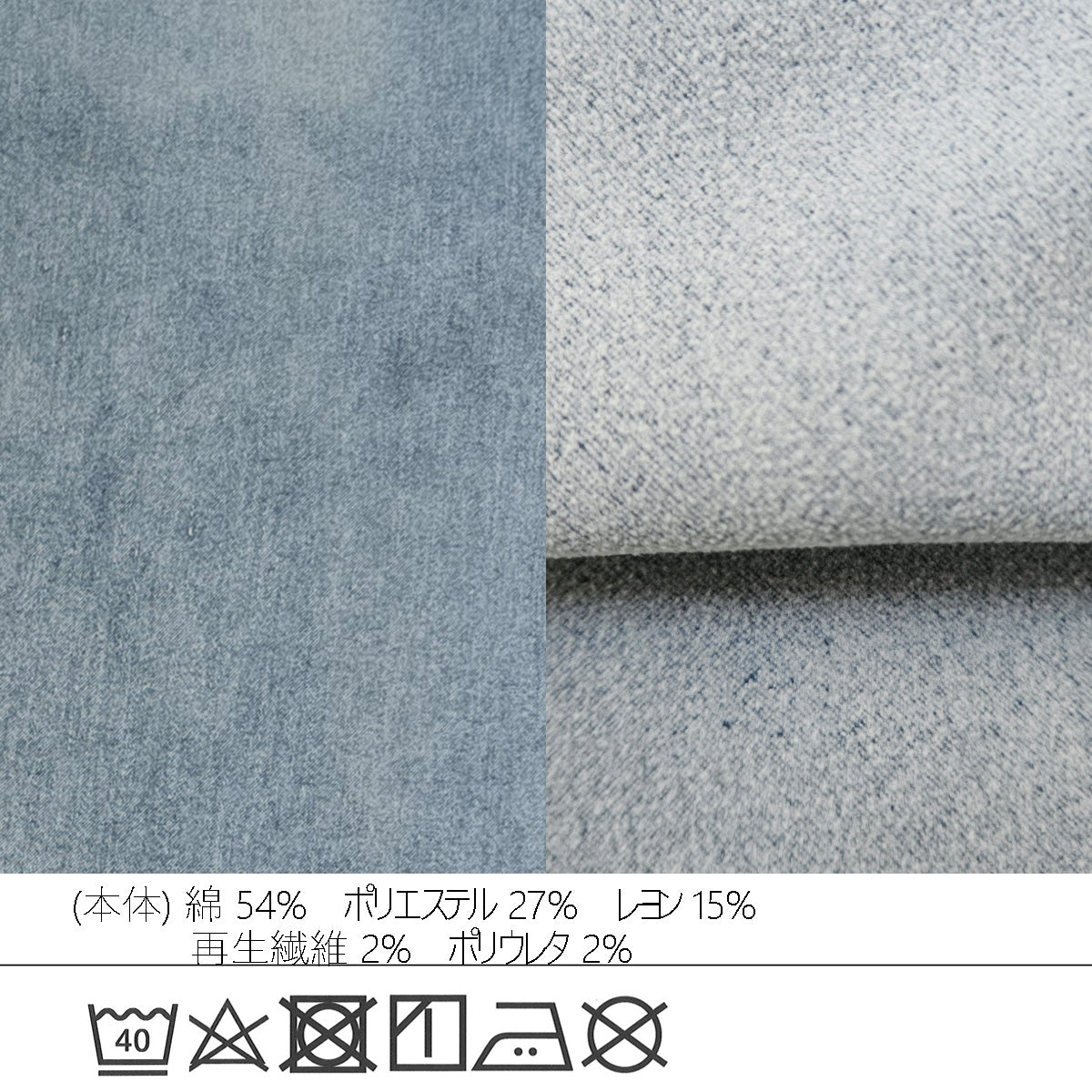 ■素材・成分:(本体)綿 54% ポリエステル 27% レーヨン 15% 再生繊維 2% ポリウレタン 2%