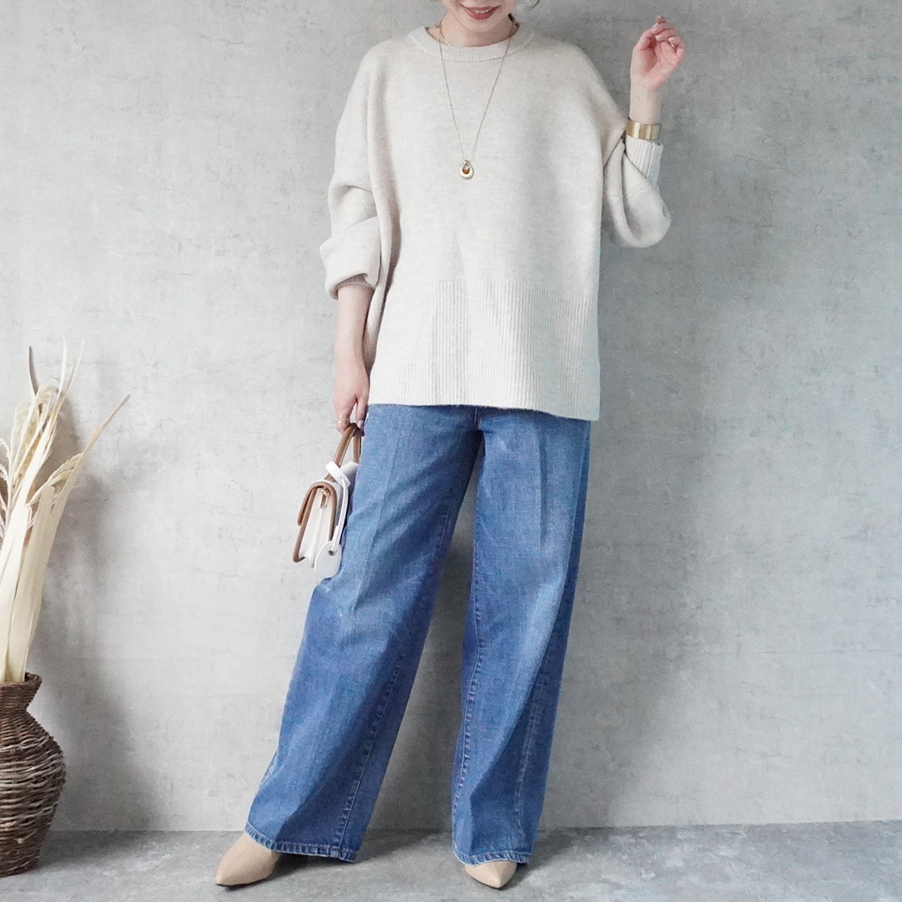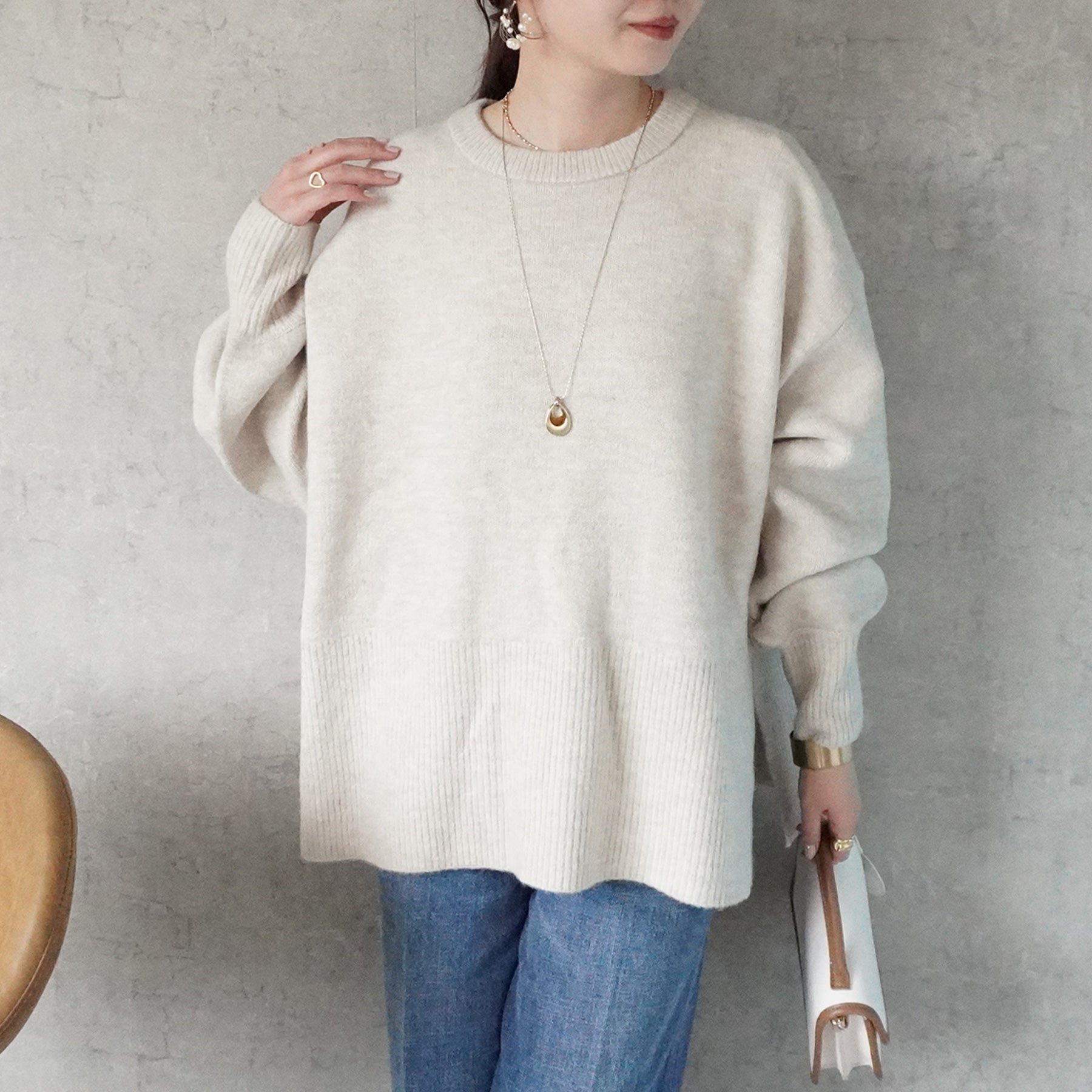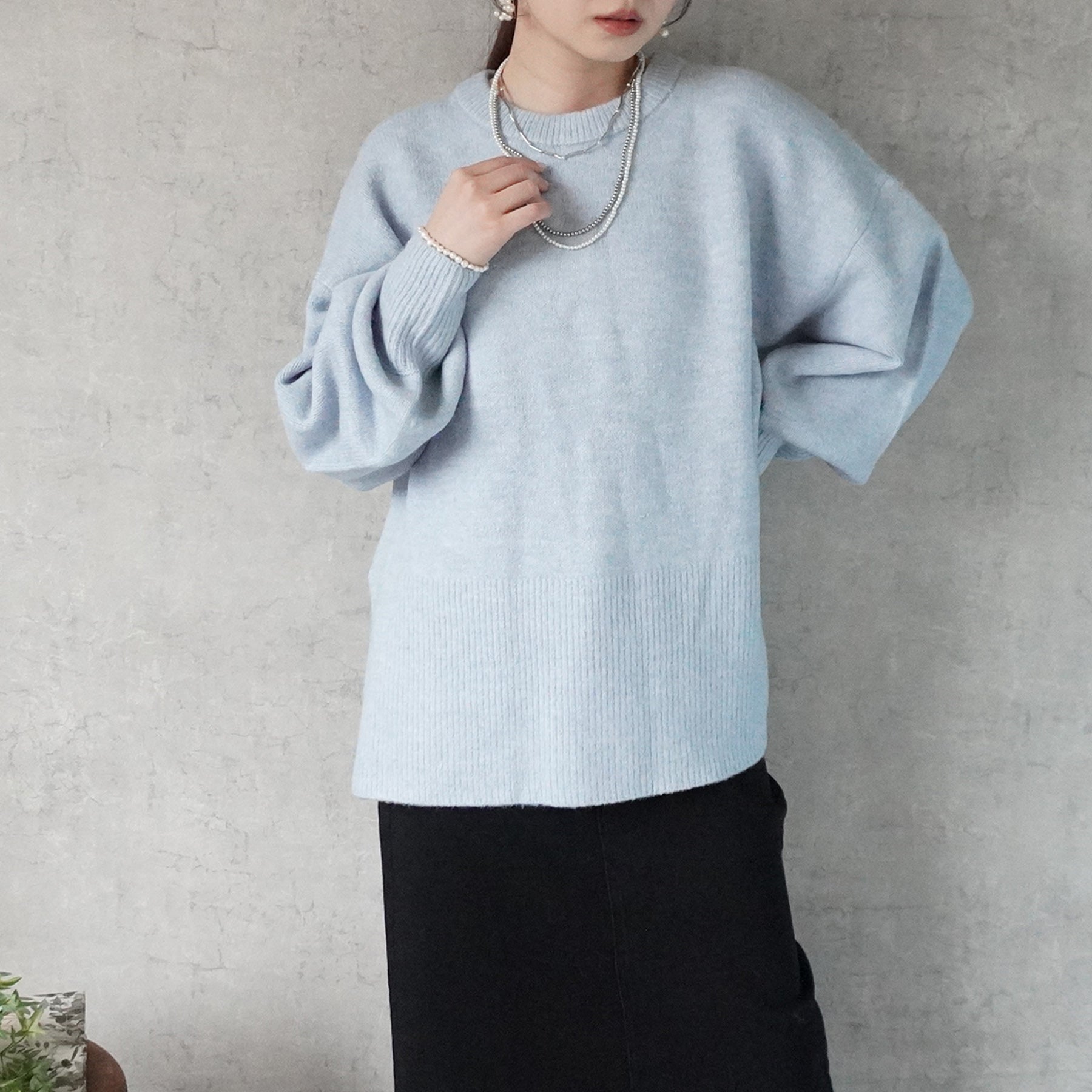 #裾リブスリット入り天竺ニット #ぽわん袖 #セーター #オーバーサイズ #長袖