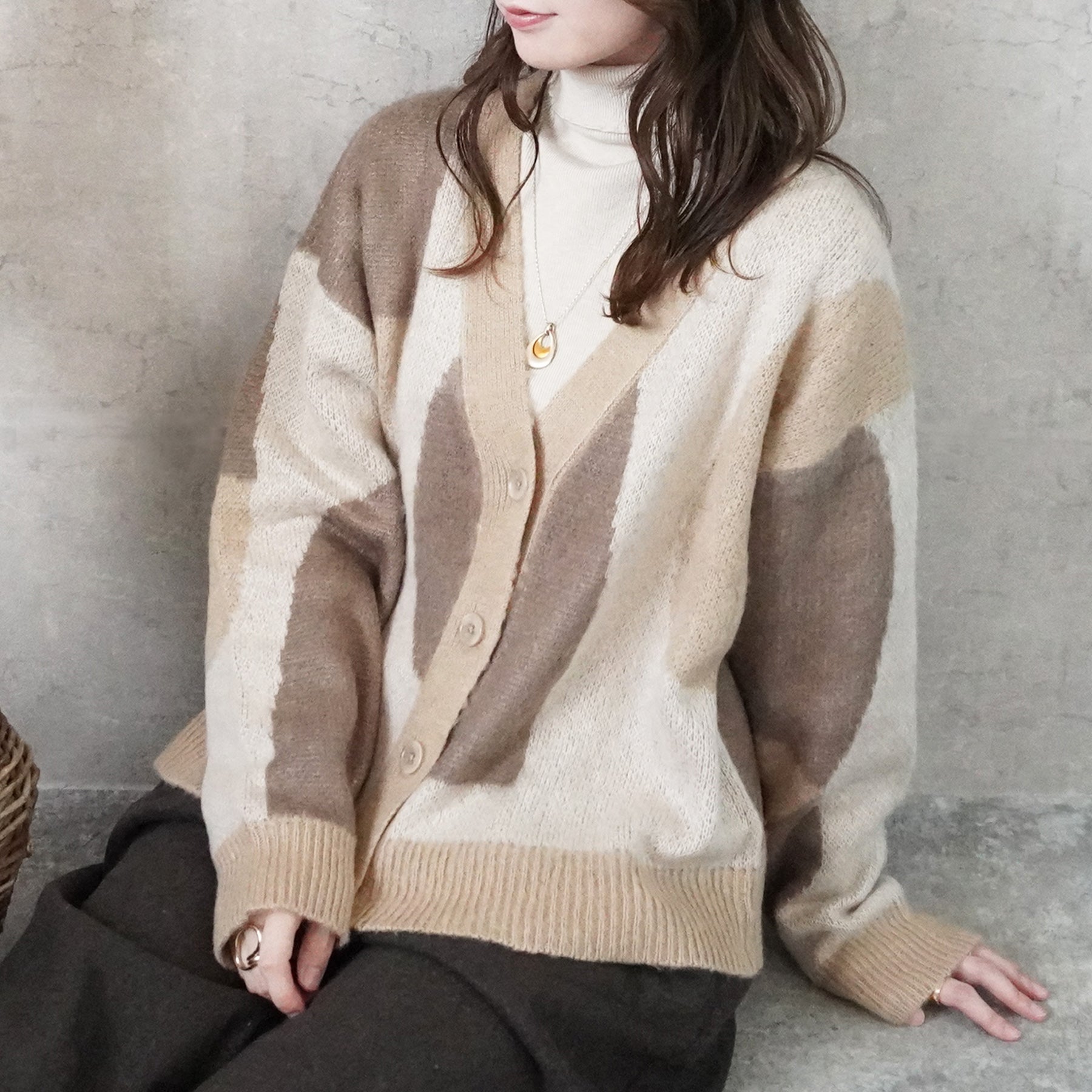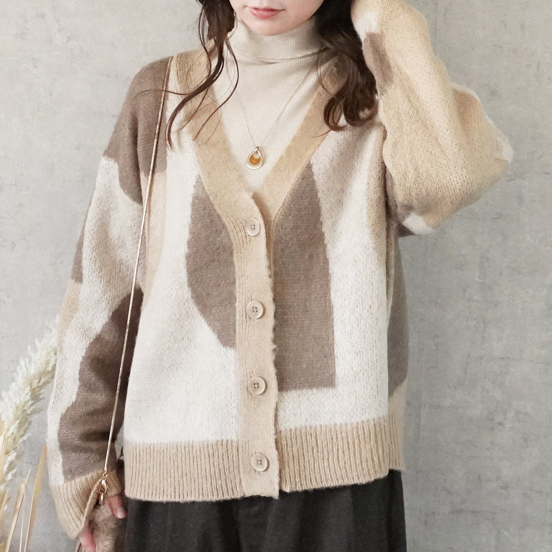配色ニュアンス柄カーディガン