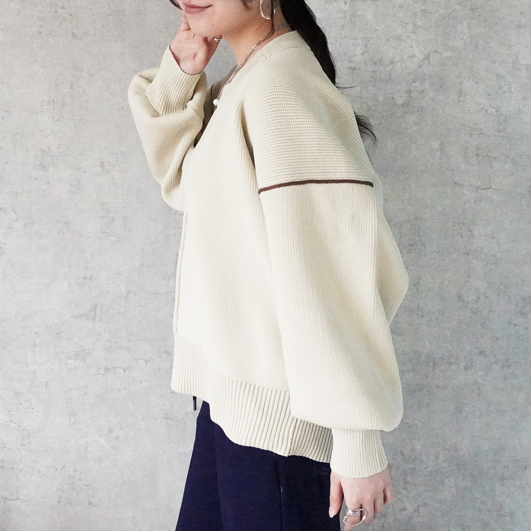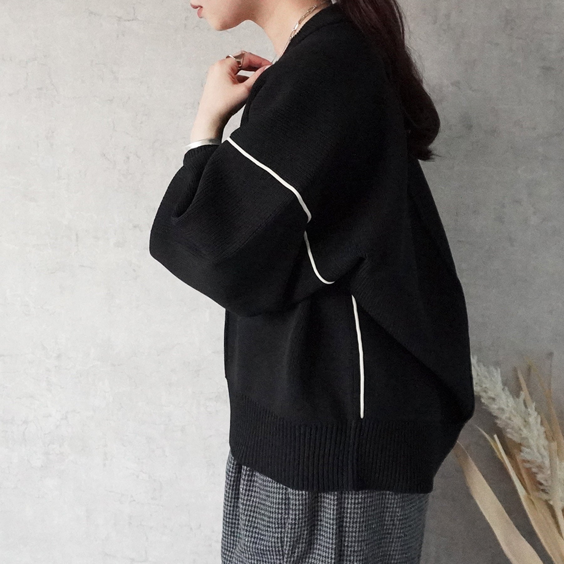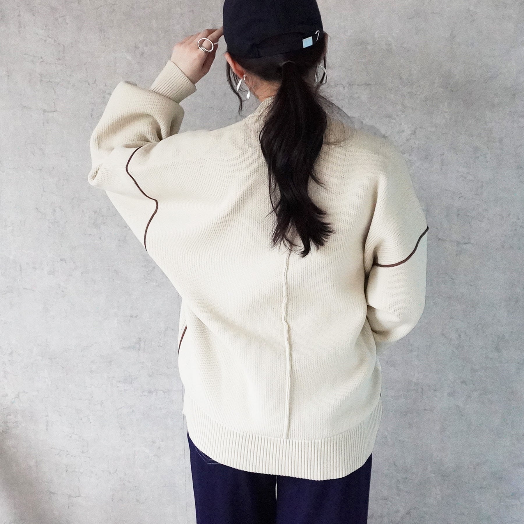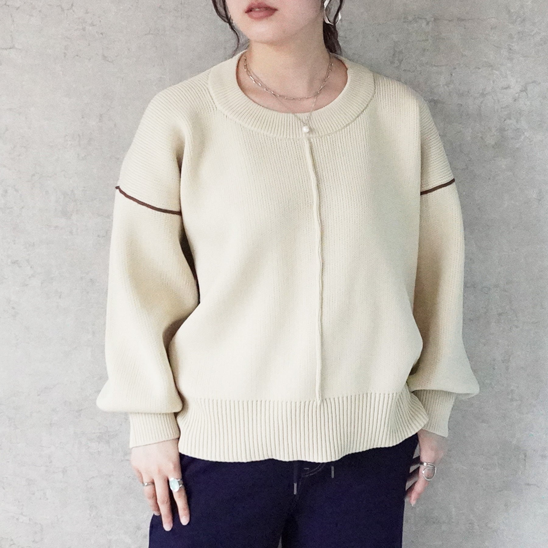 配色パイピングダンボールニット