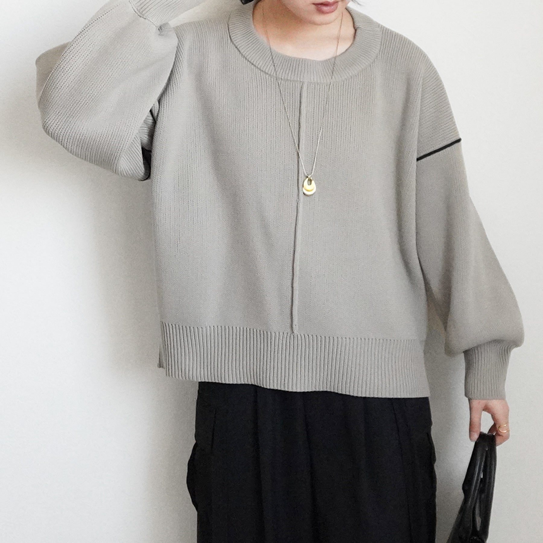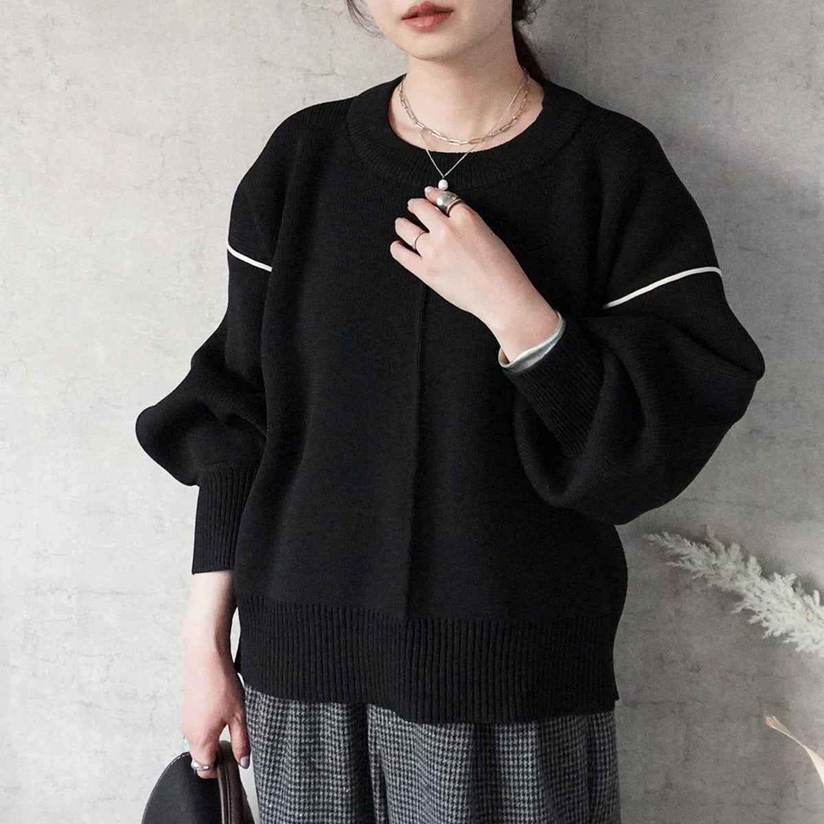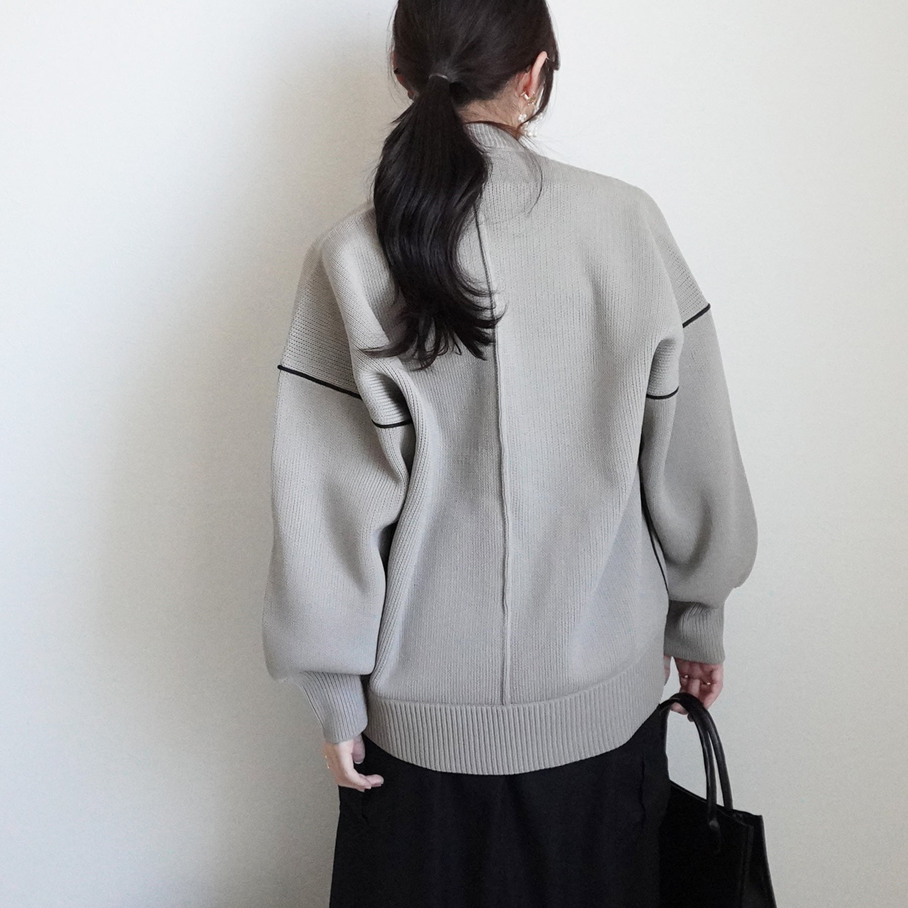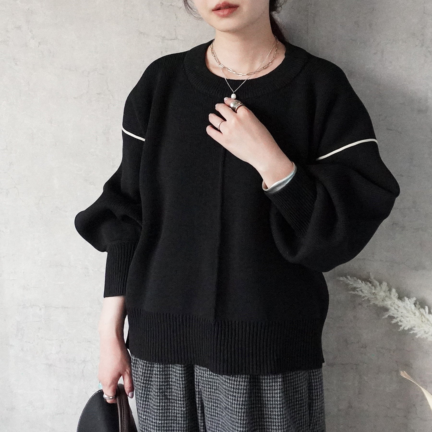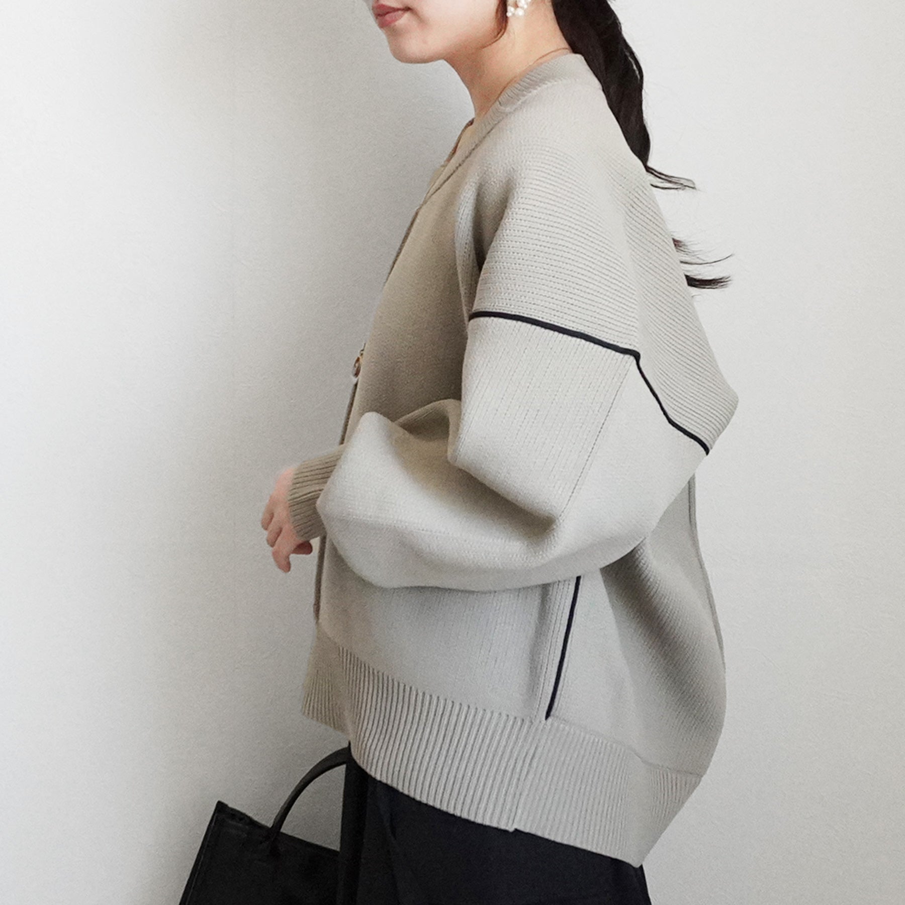 配色パイピングダンボールニット