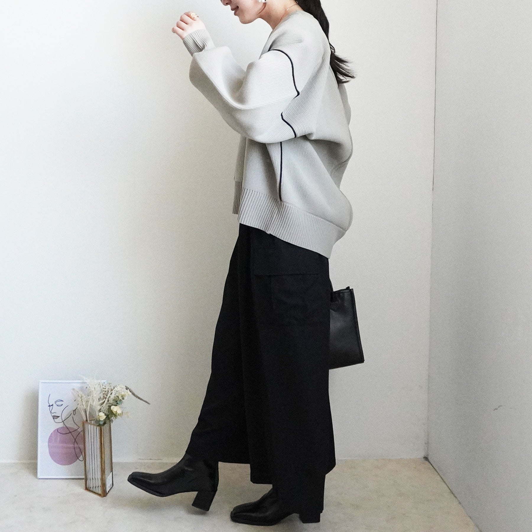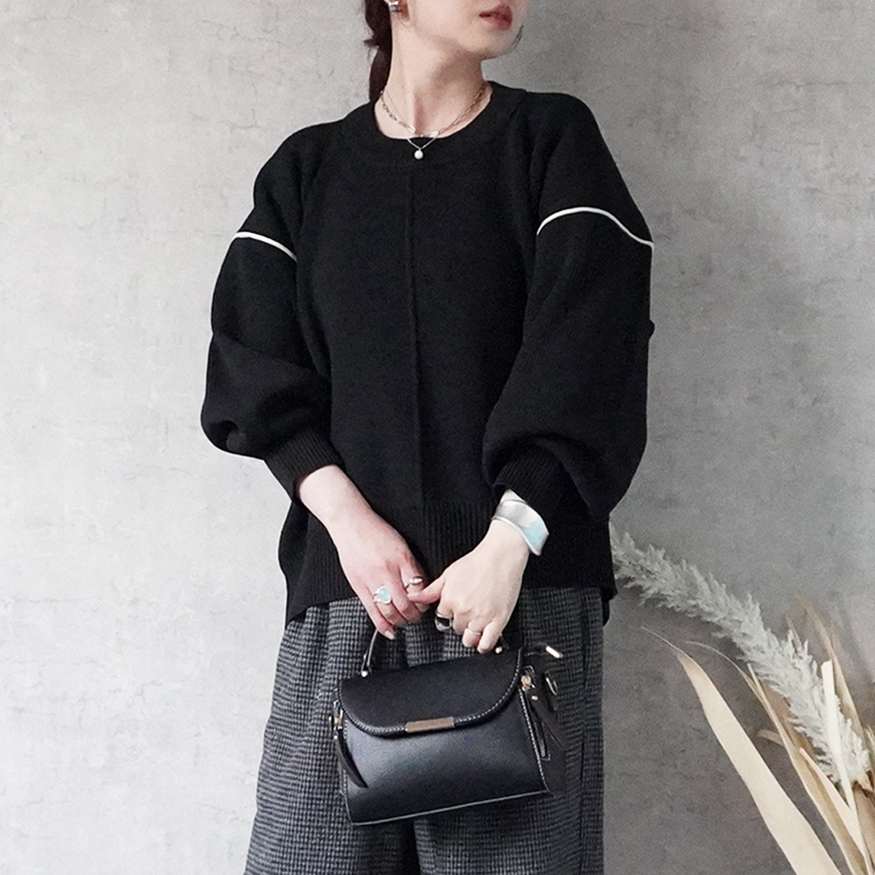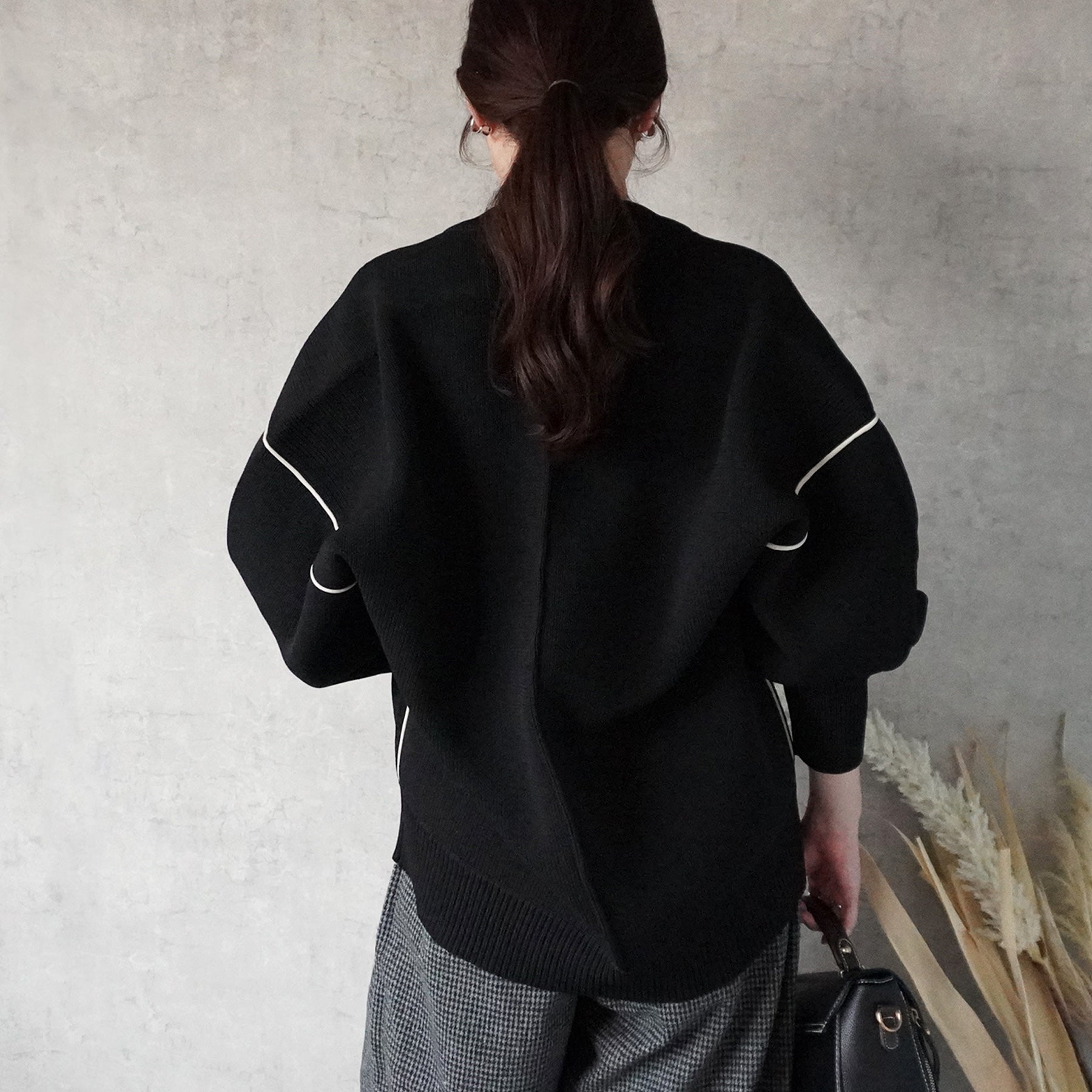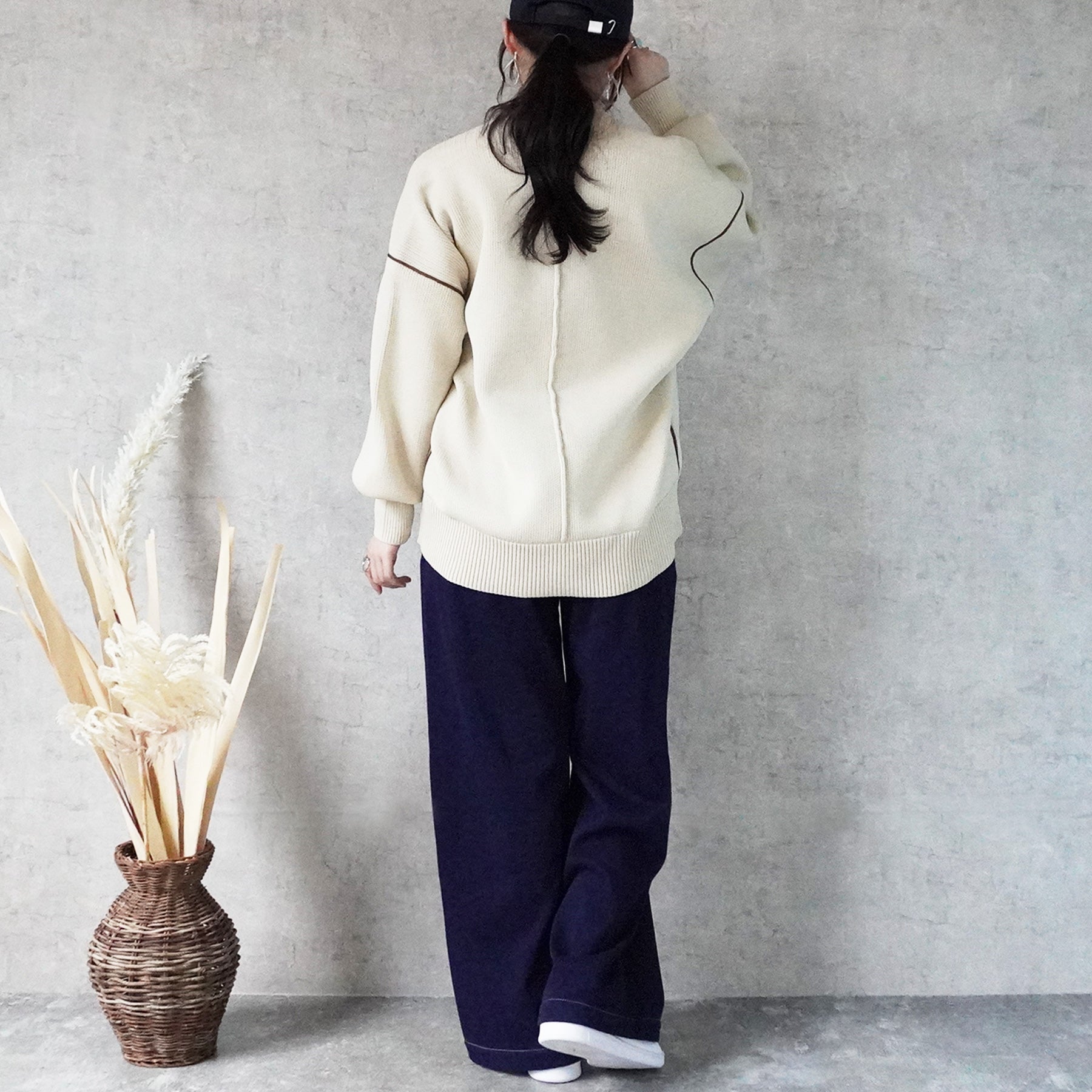 配色パイピングダンボールニット