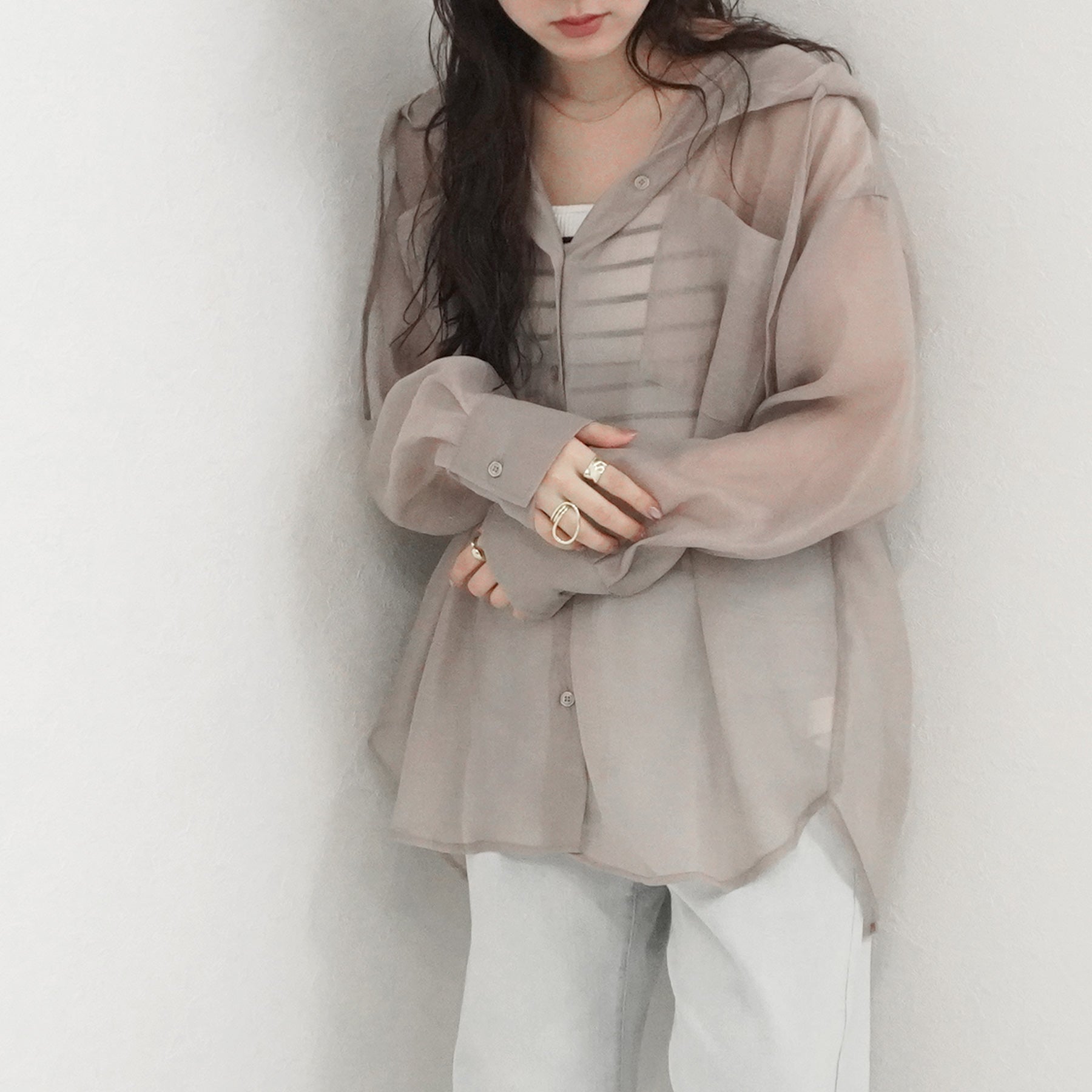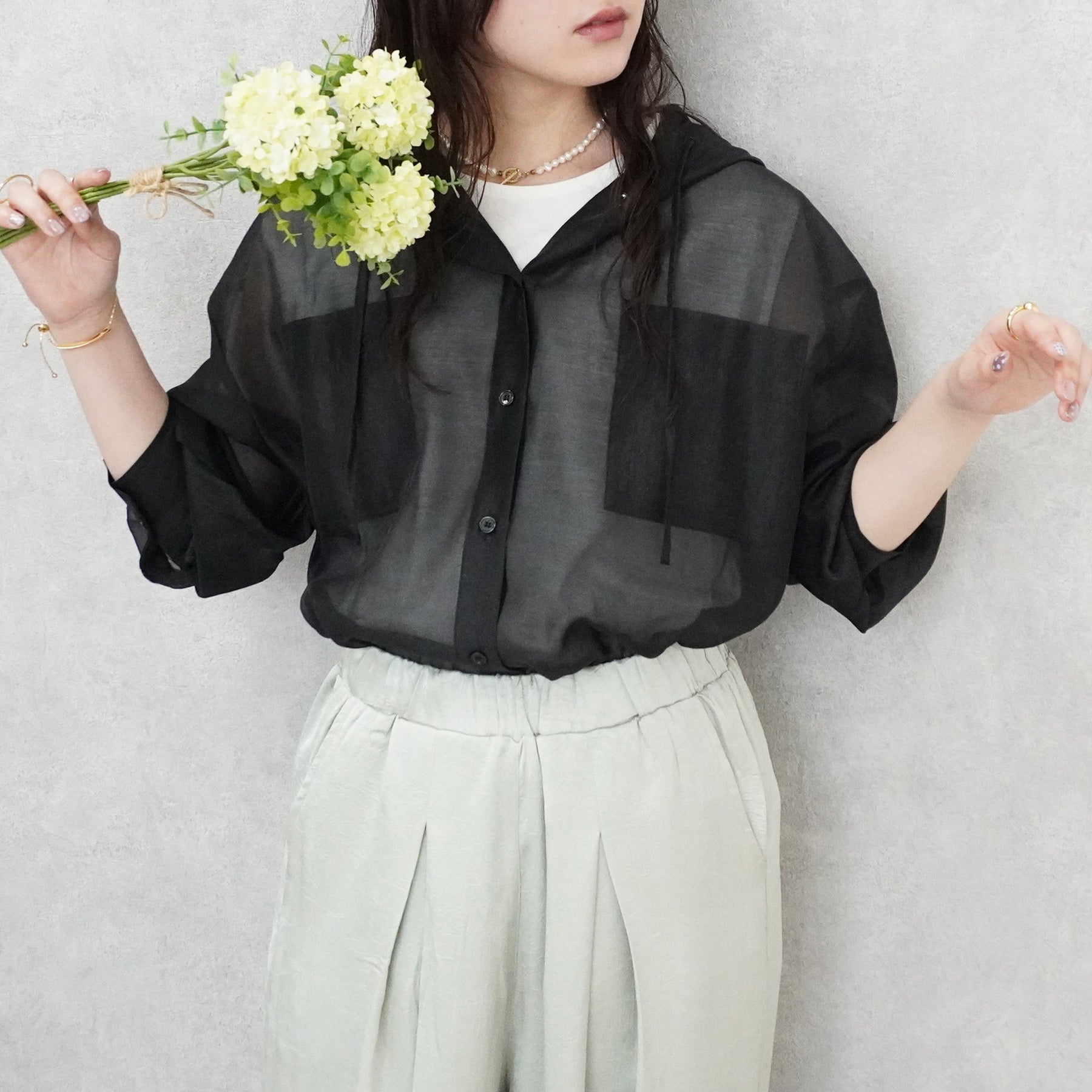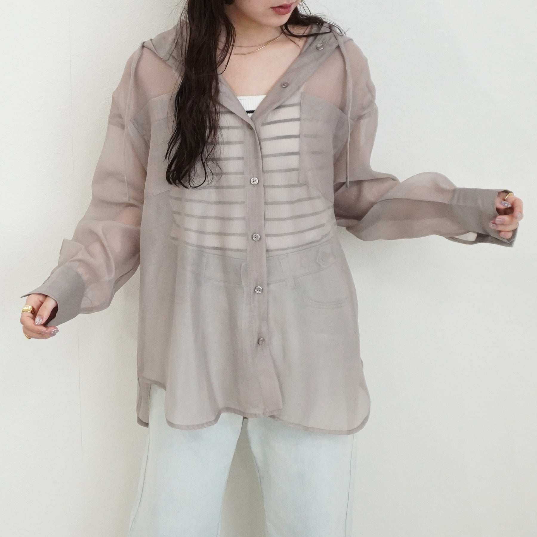 長袖シアーフードシャツ【予約】