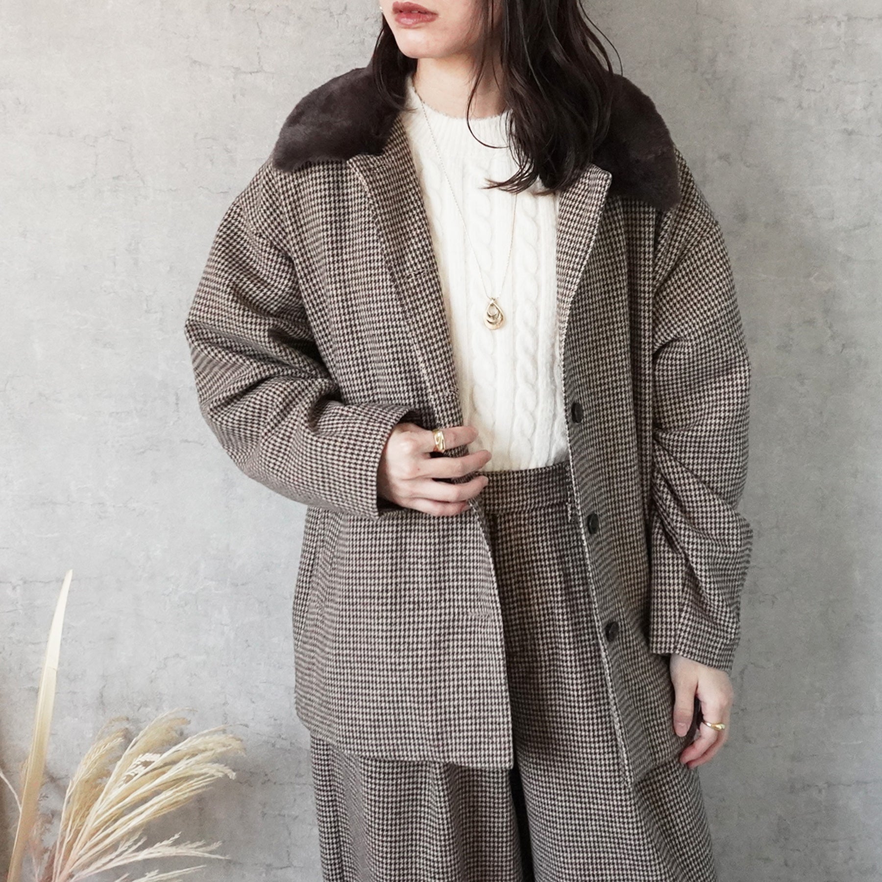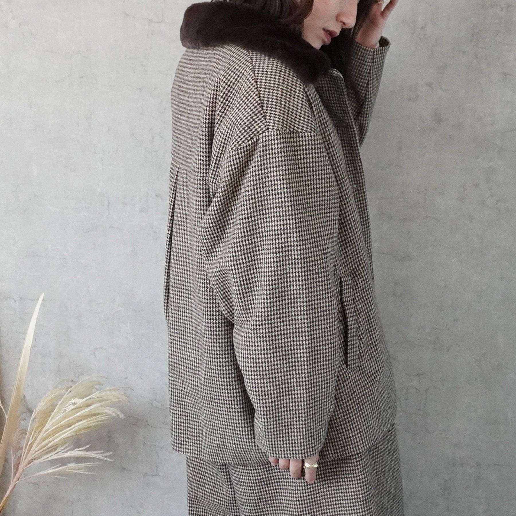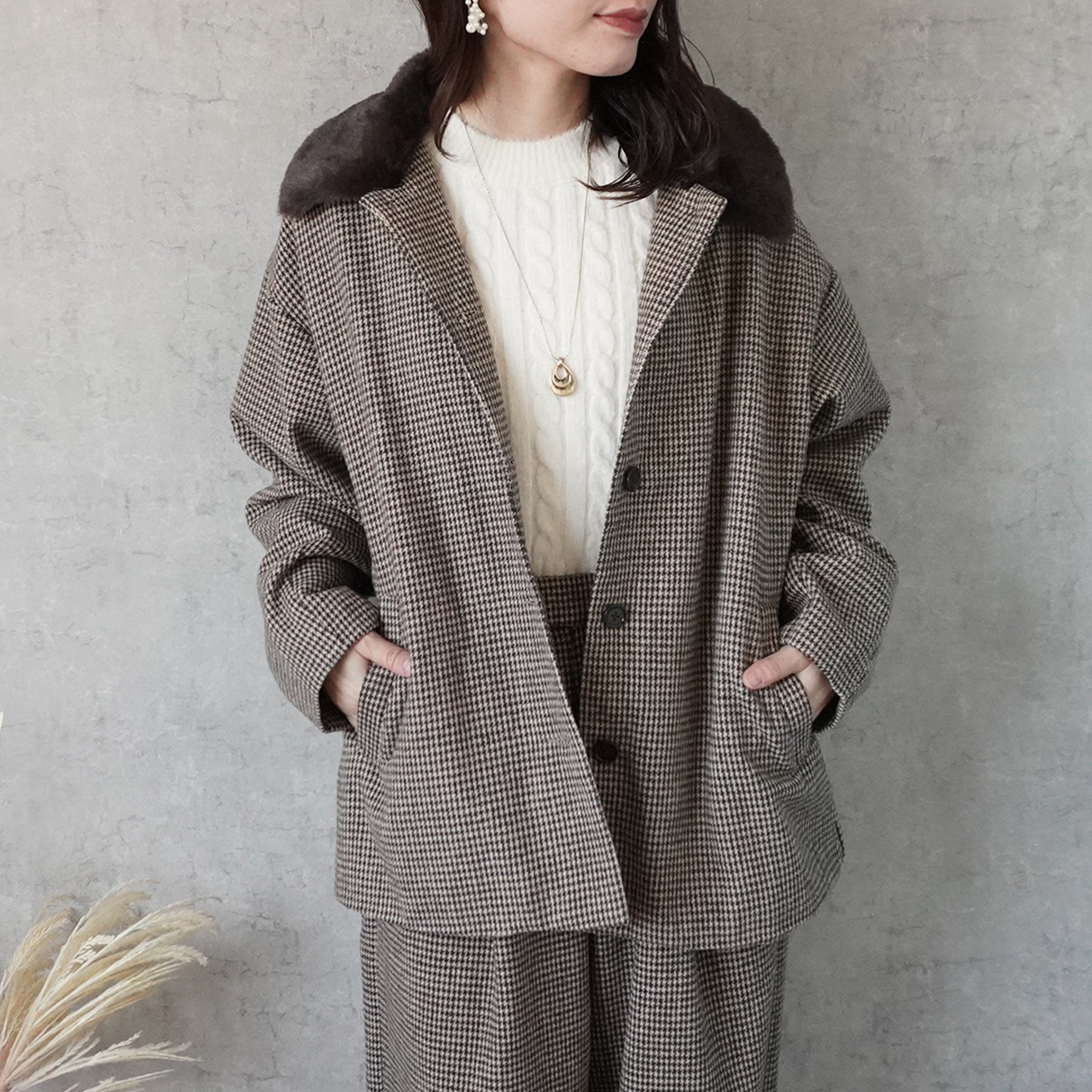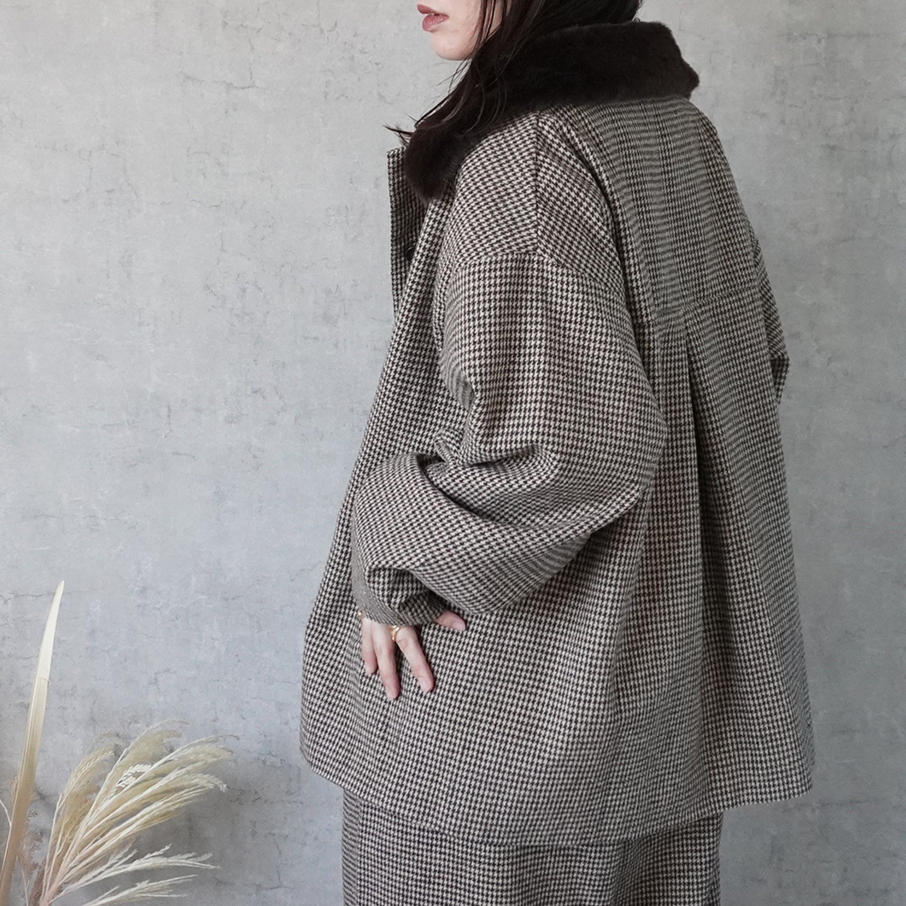 2wayカラーファー千鳥格子柄ジャケット
