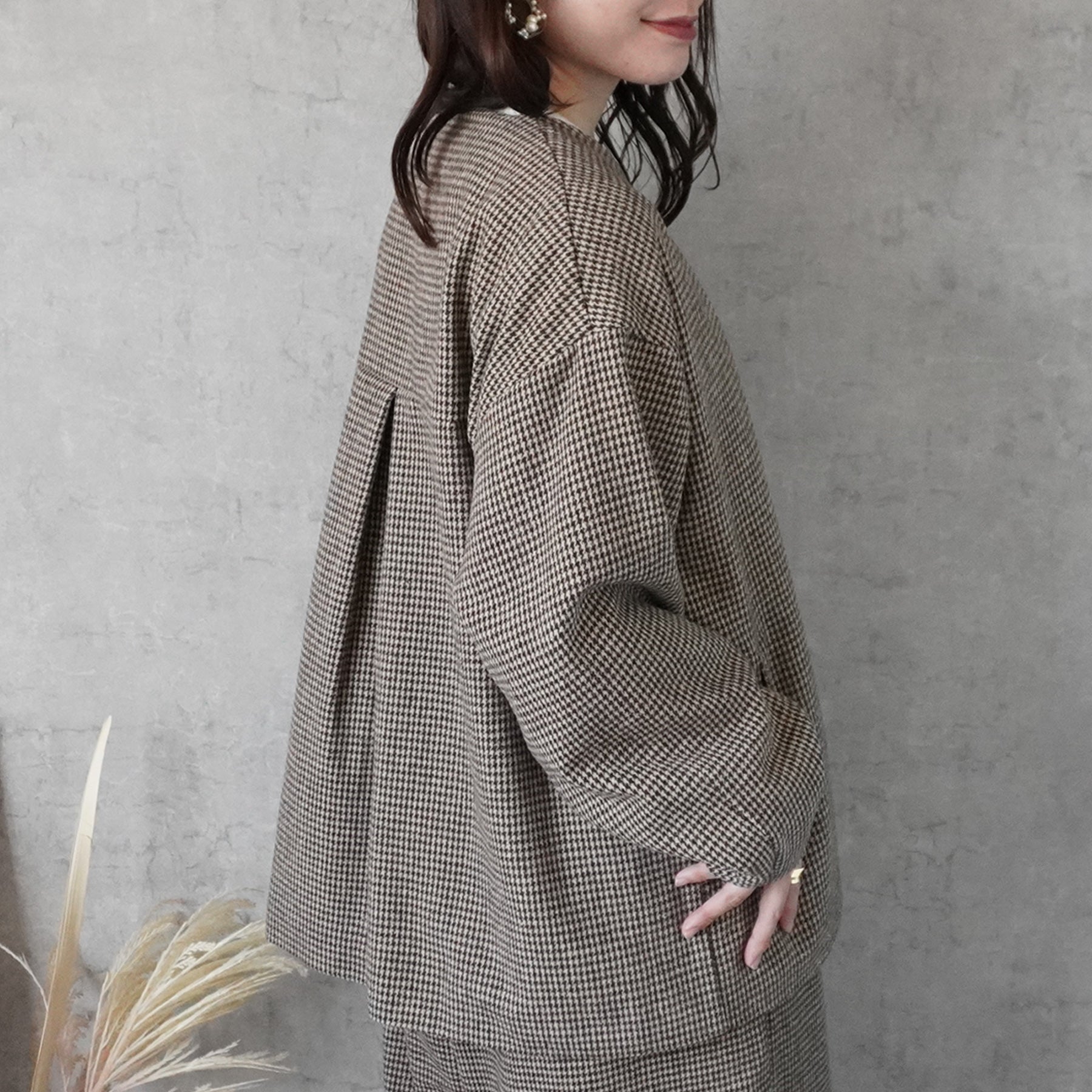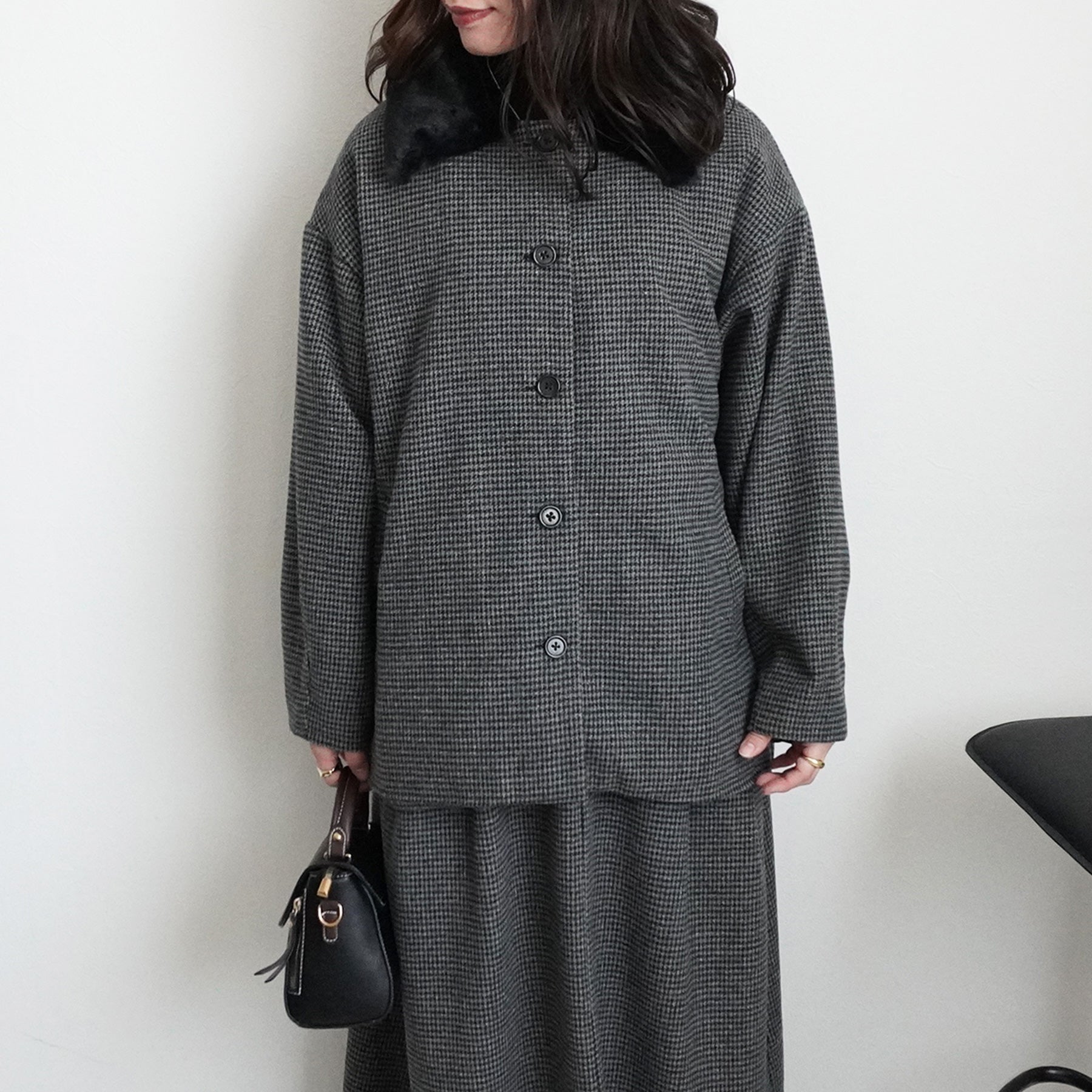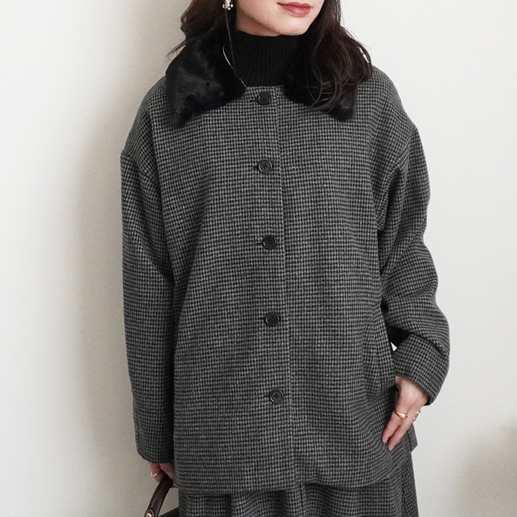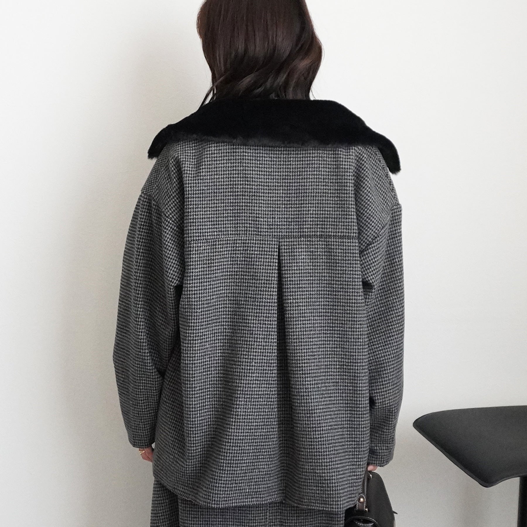 2wayカラーファー千鳥格子柄ジャケット