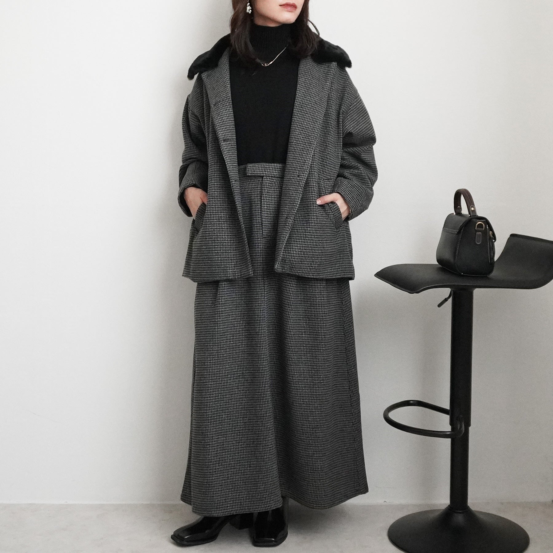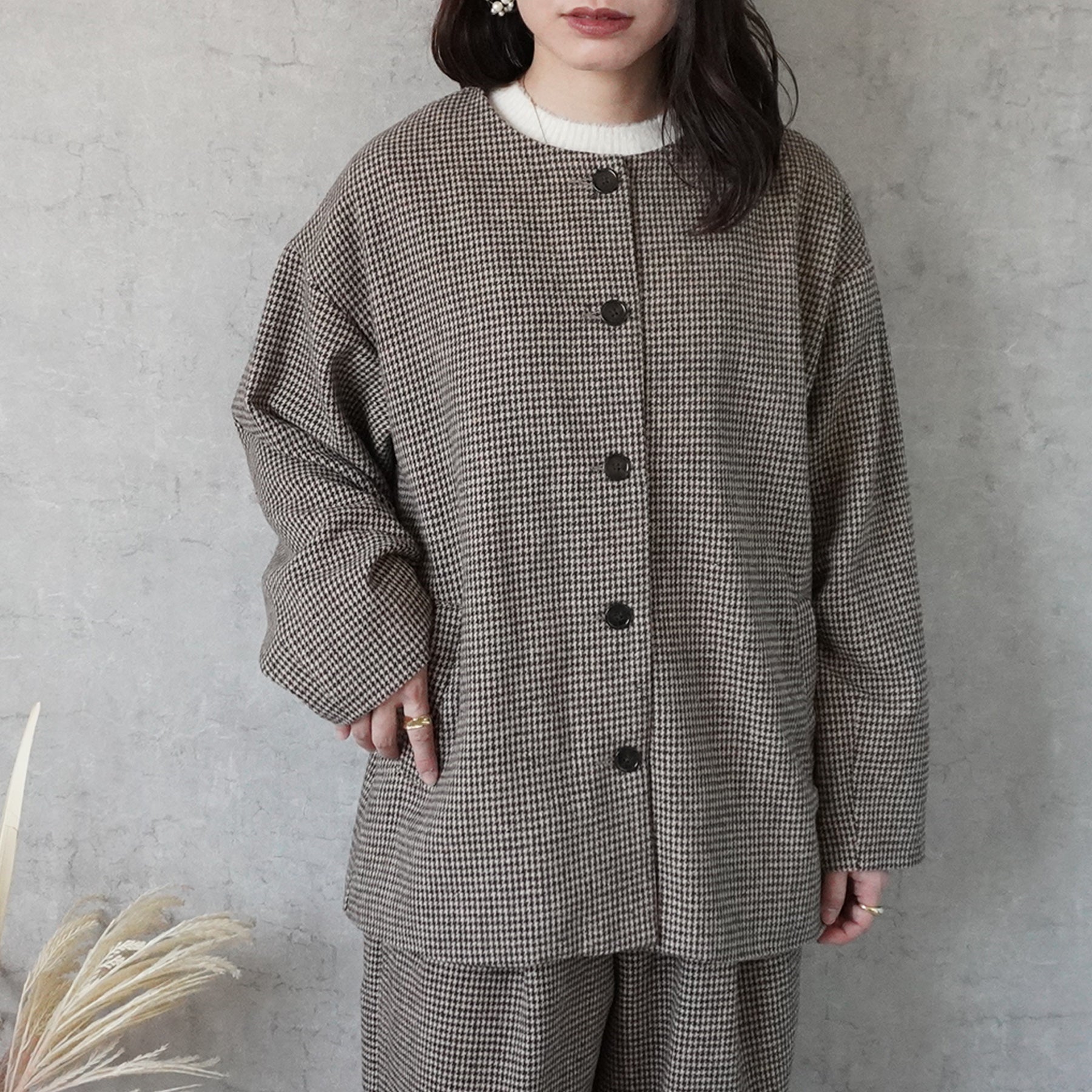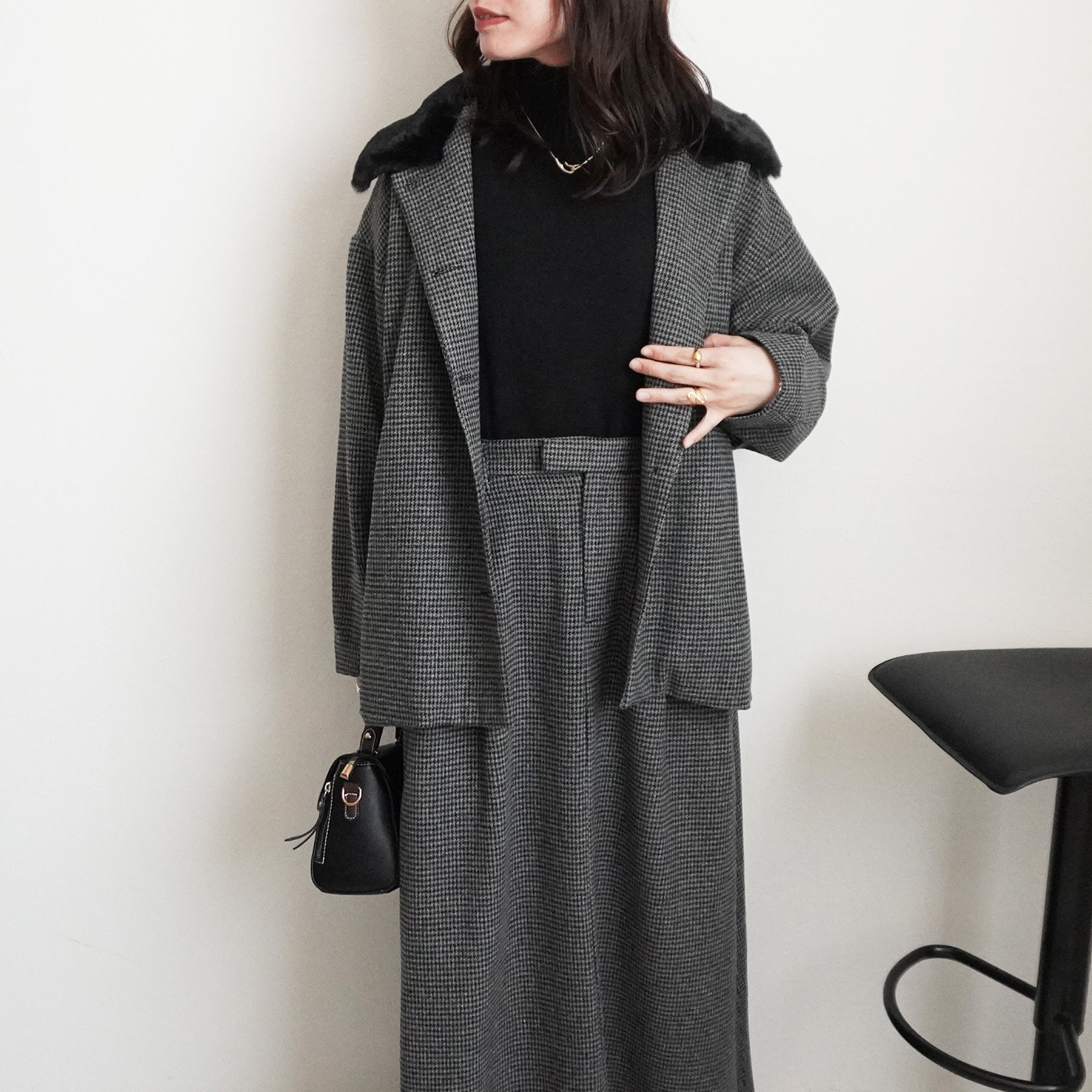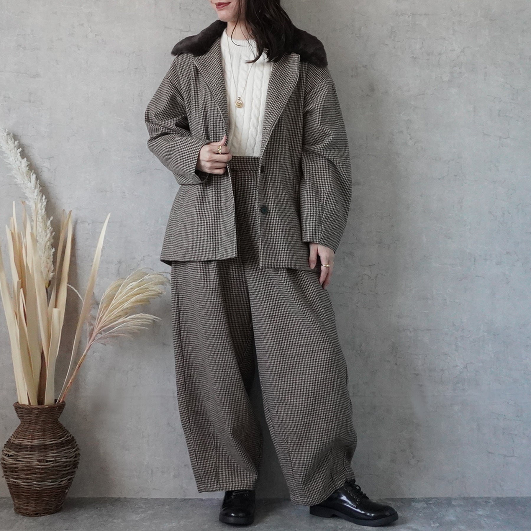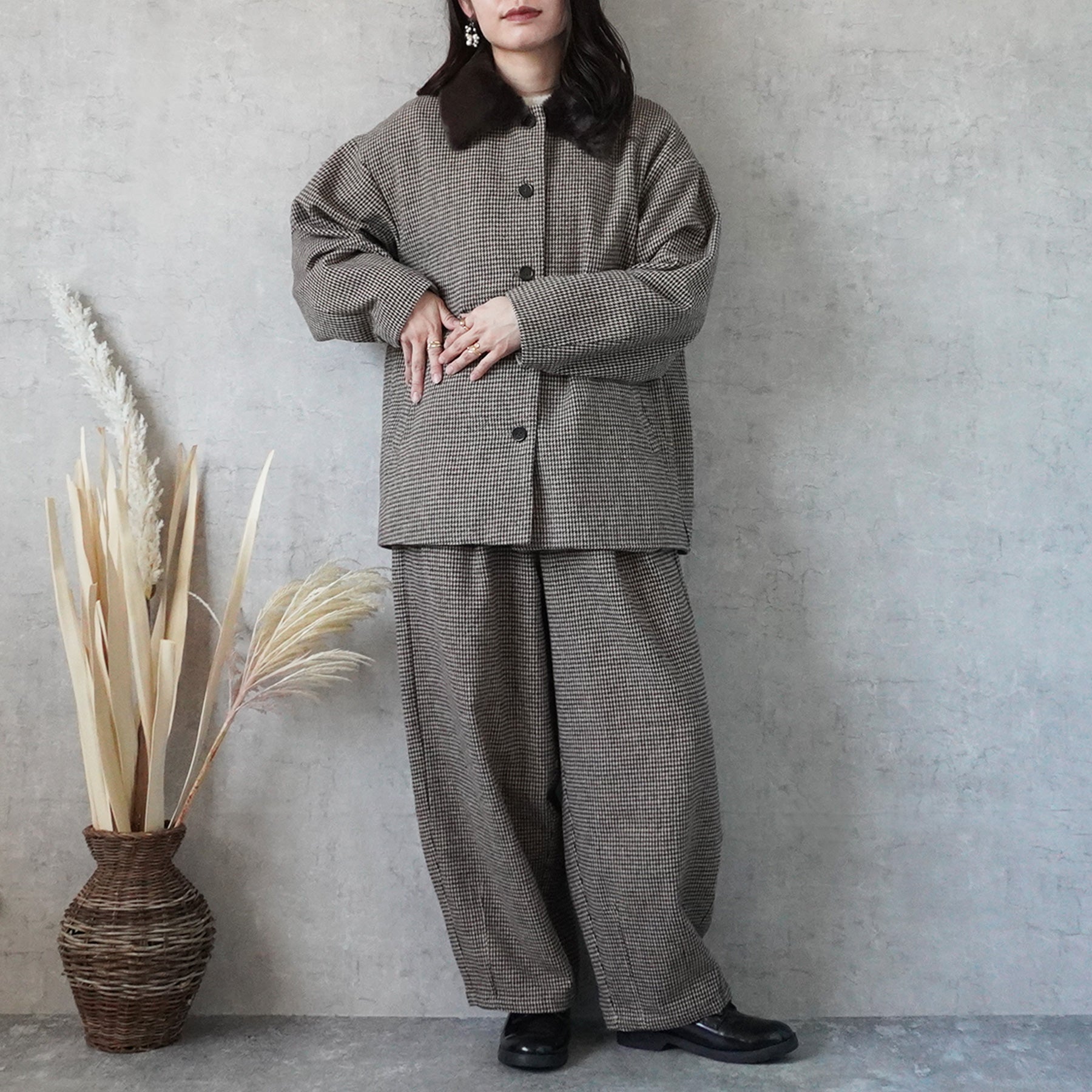 2wayカラーファー千鳥格子柄ジャケット