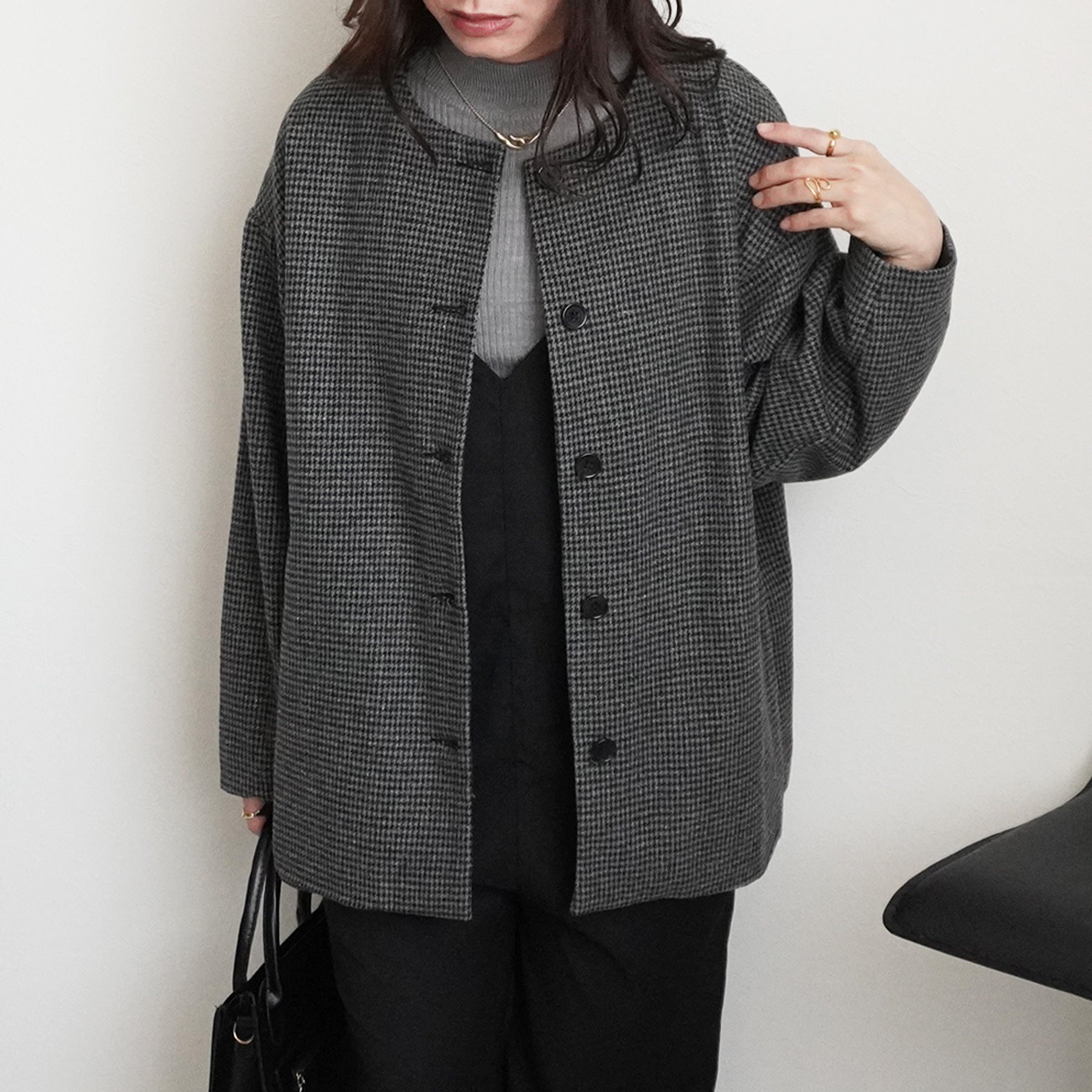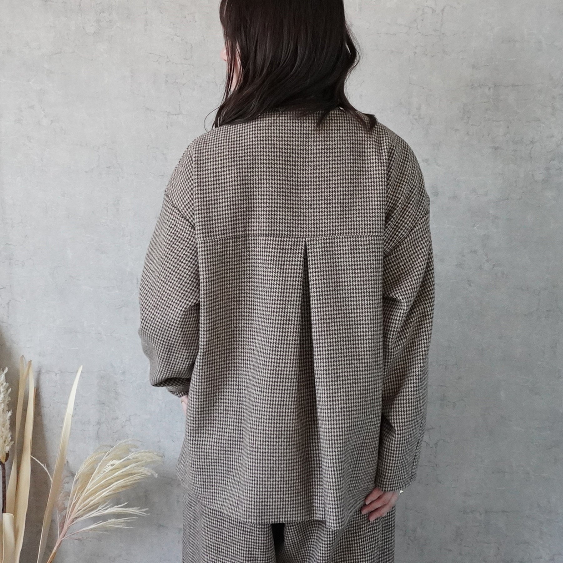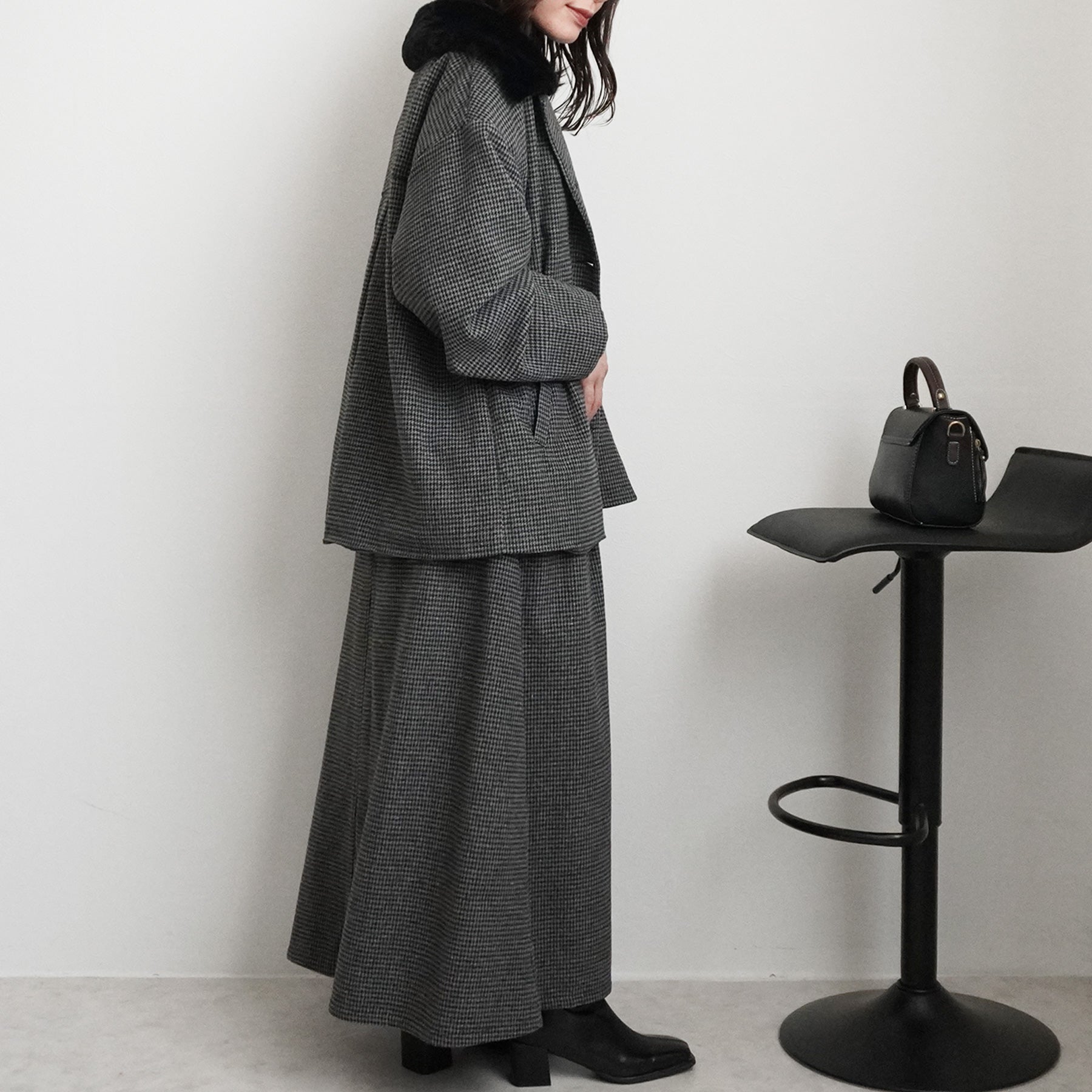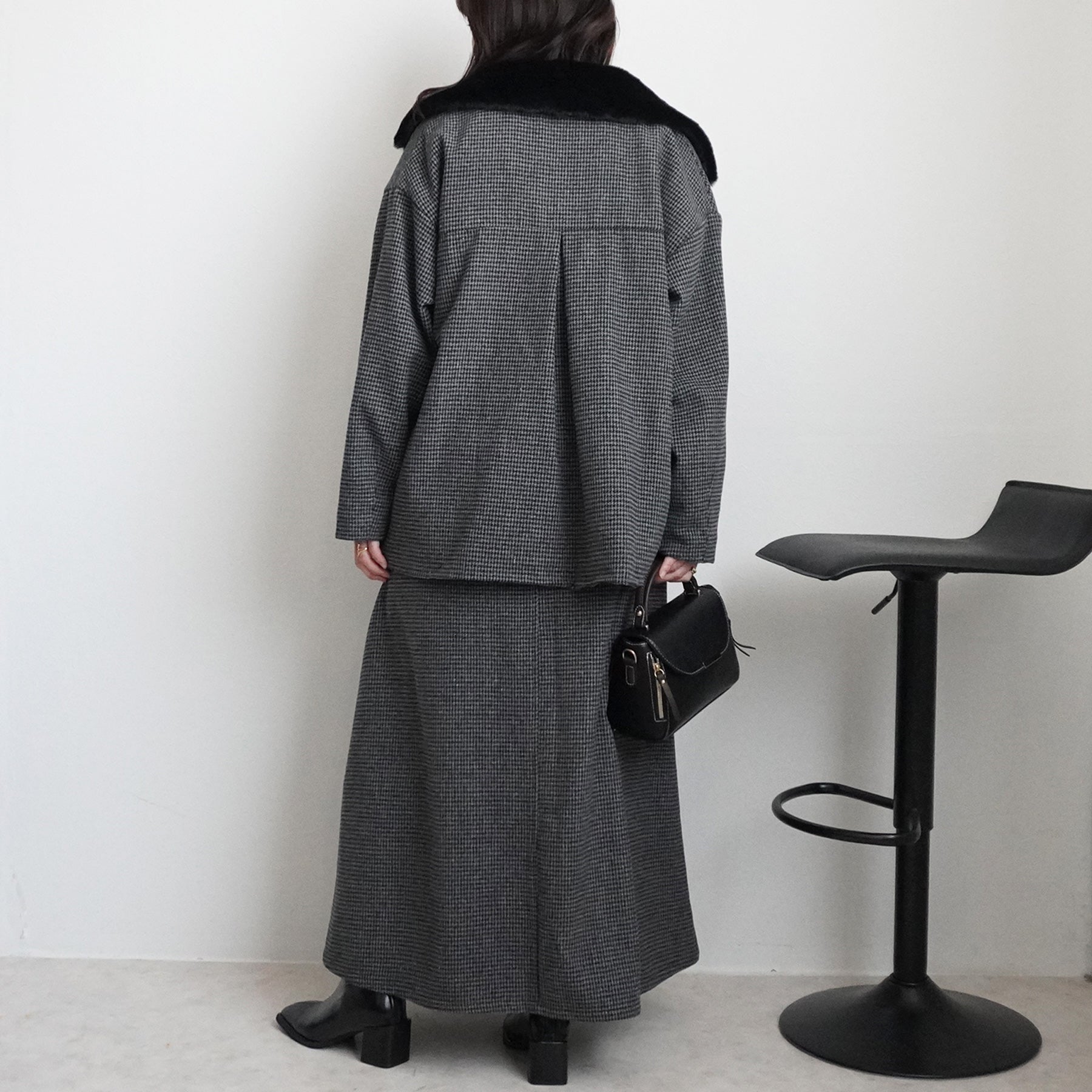 2wayカラーファー千鳥格子柄ジャケット