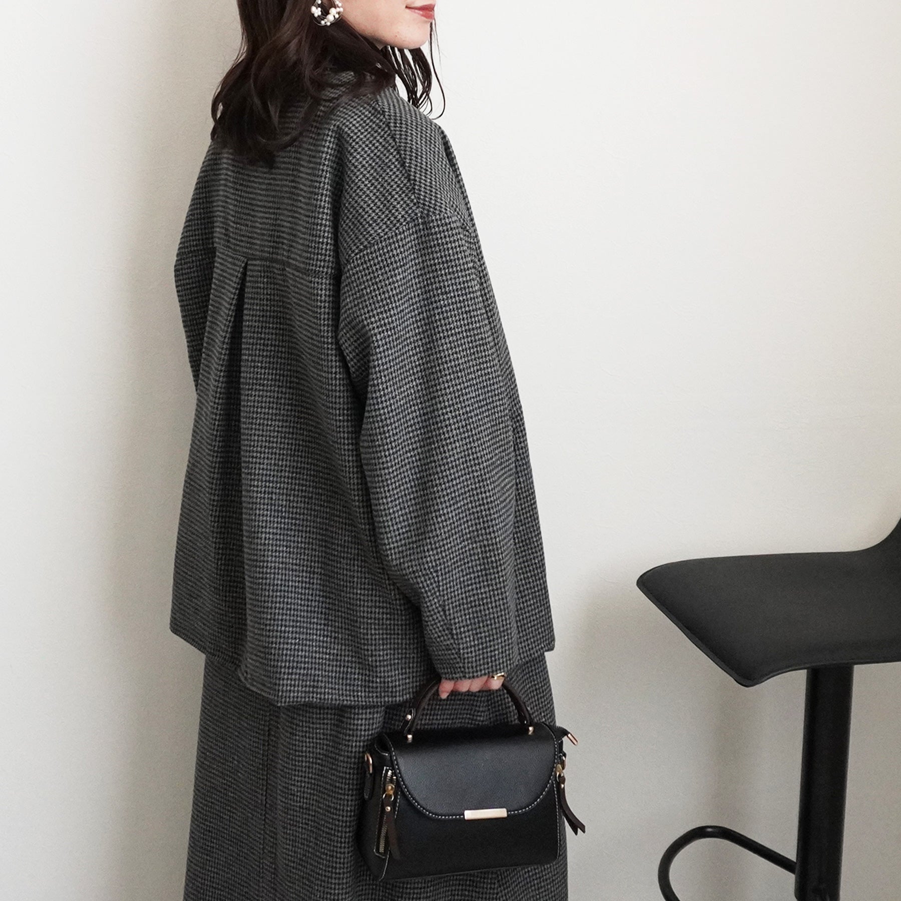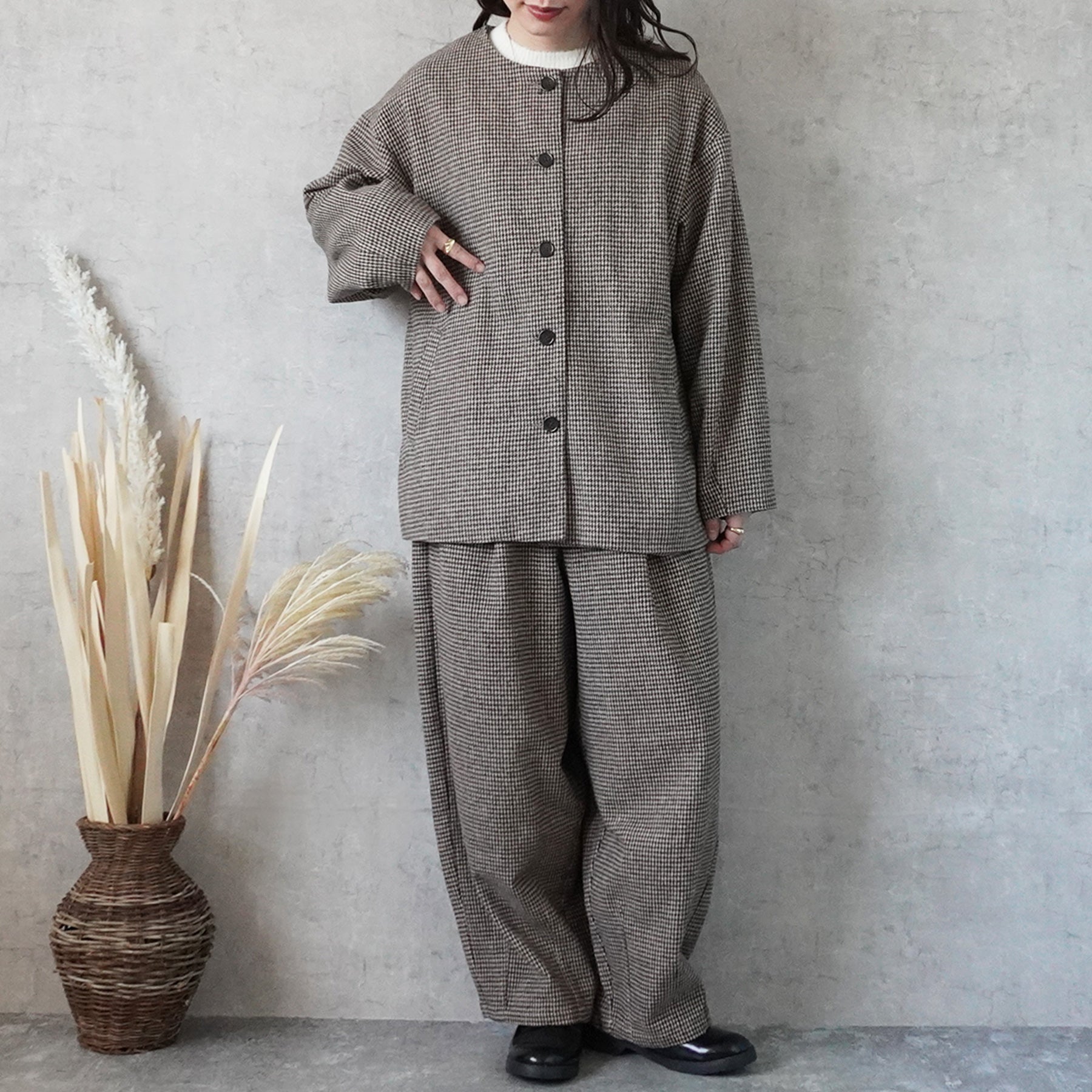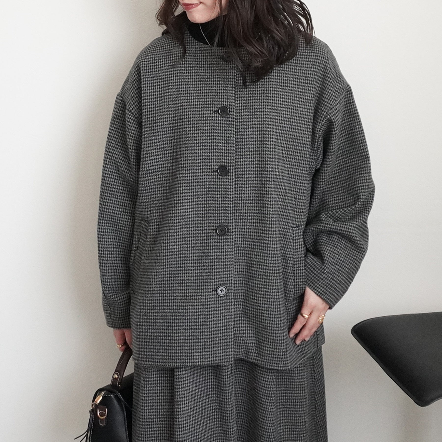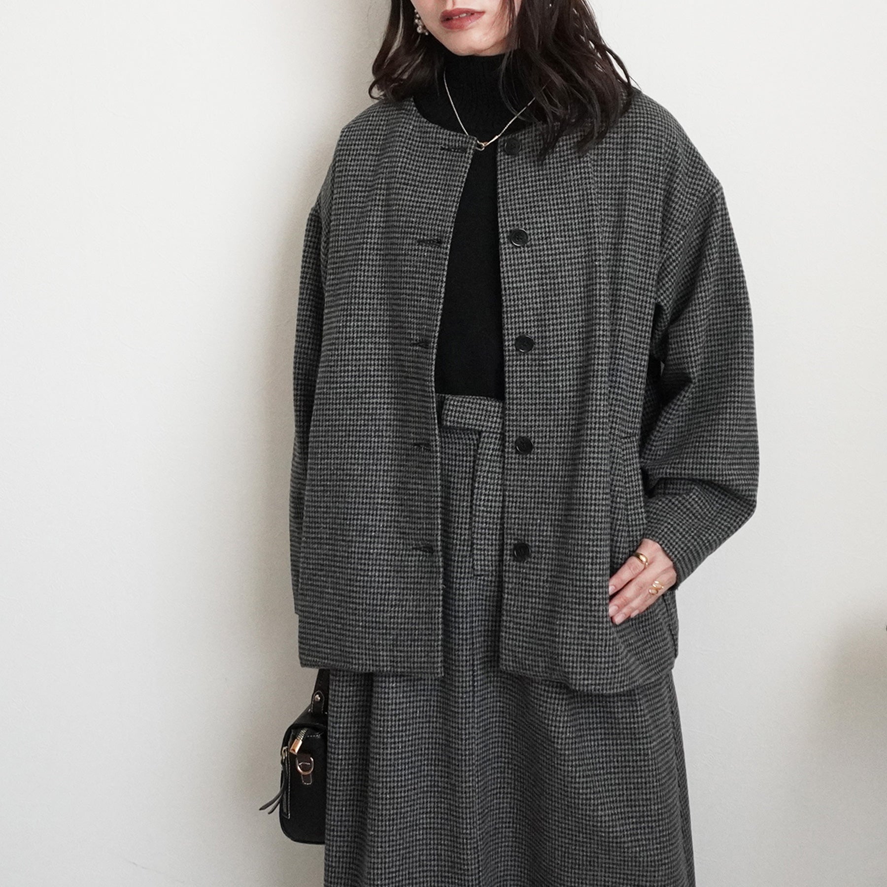 2wayカラーファー千鳥格子柄ジャケット